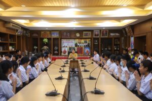 พร้อมด้วยคณะครูและสภานักเรียน ณ ห้องประชุมมิตรอุปถัมภ์ โรงเรียนระยองวิทยาคม