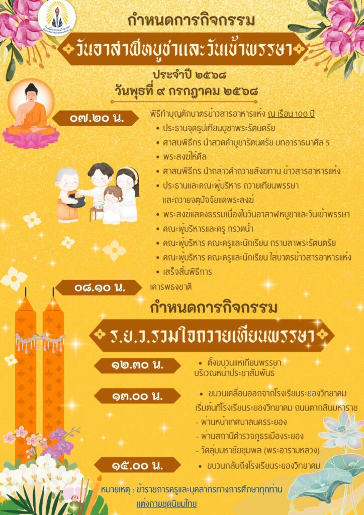 กำหนดการกิจกรรมวันอาสาฬหบูชาและวันเข้าพรรษา