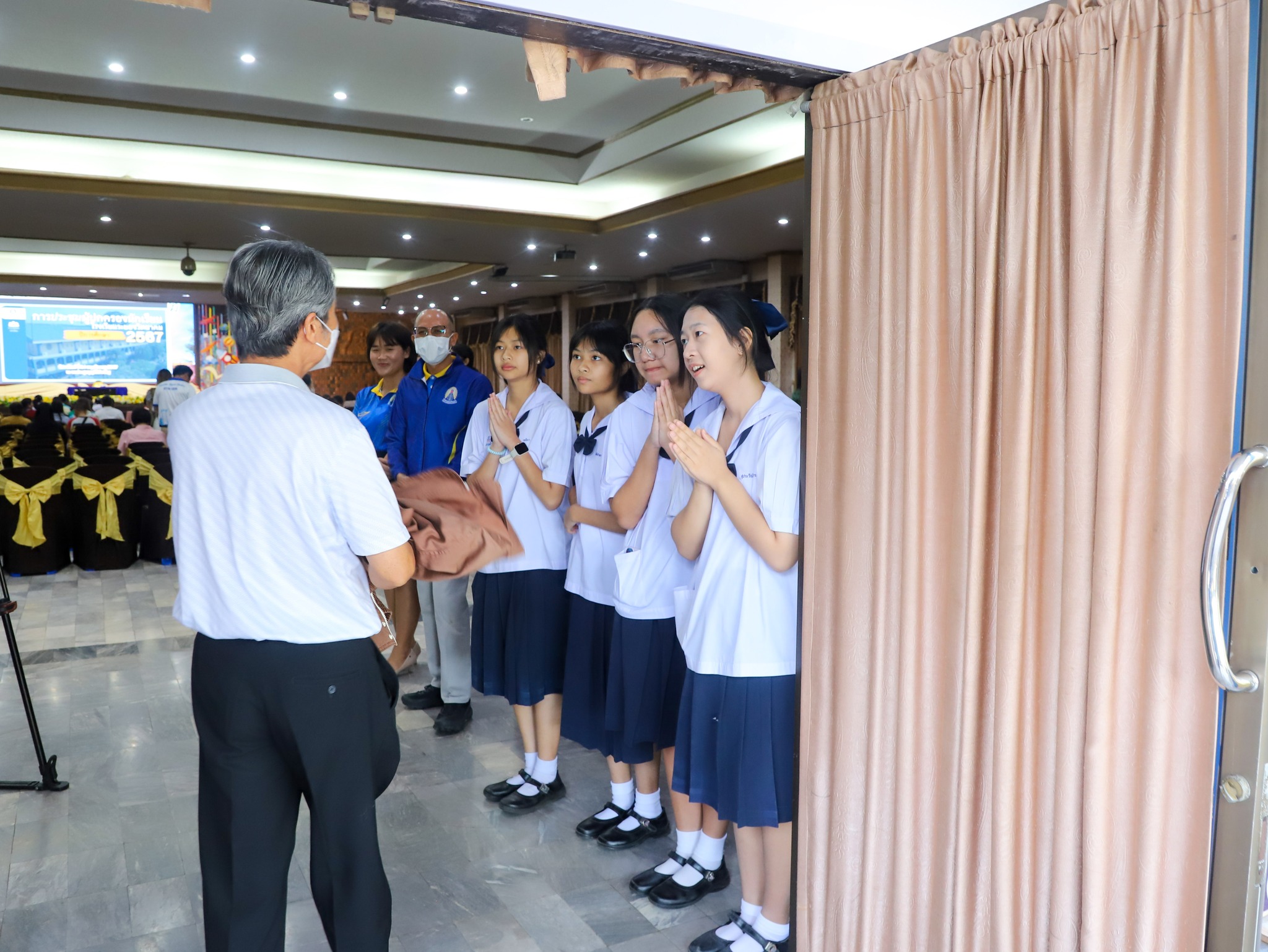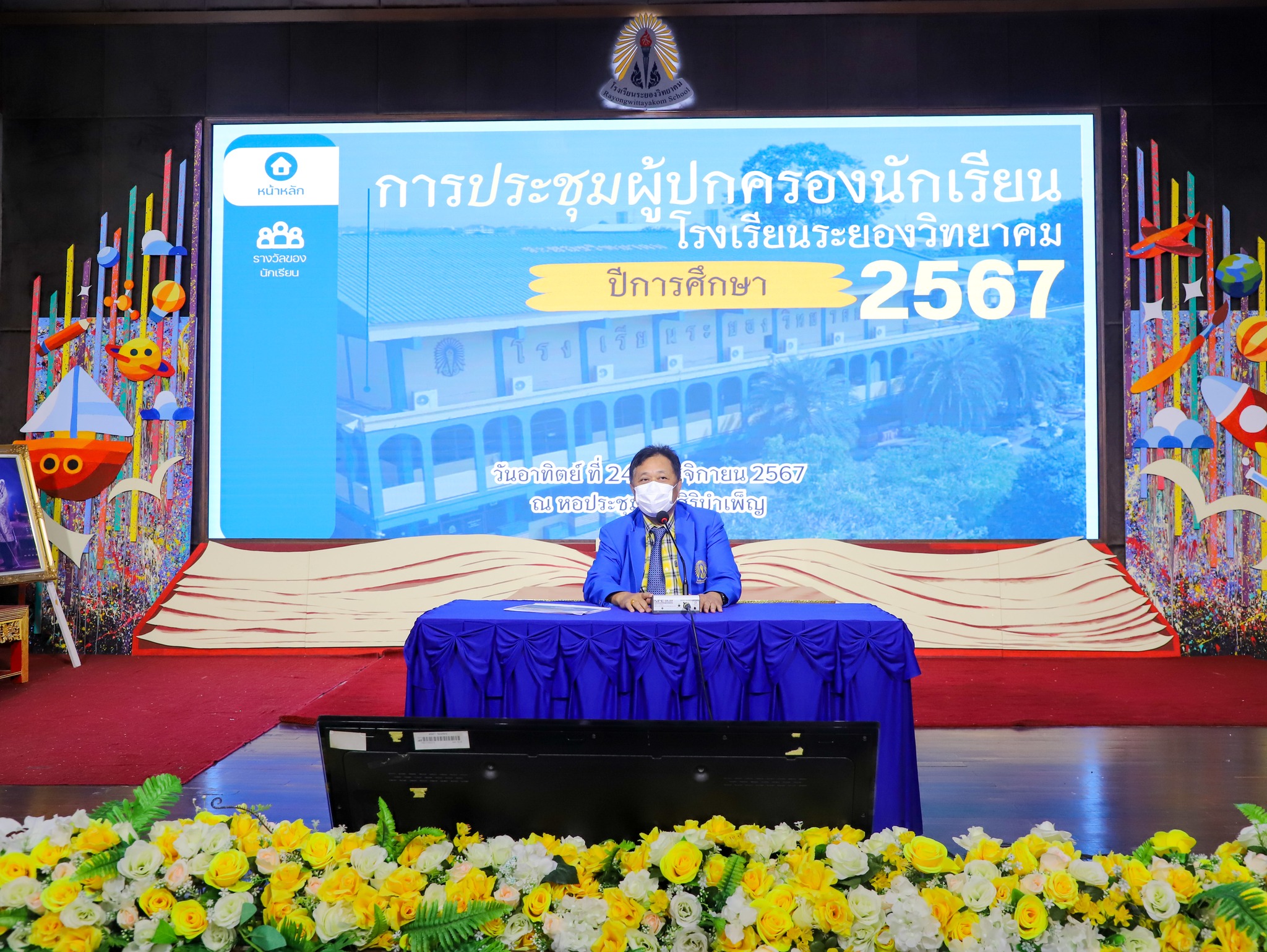 พร้อมด้วยคณะครู นักเรียนโรงเรียนระยองวิทยาคม และผู้ปกครอง ณ หอประชุมบุญศิริบำเพ็ญ โรงเรียนระยองวิทยาคม
