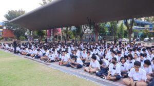พร้อมด้วยคณะครูและนักเรียนเข้าร่วมกิจกรรมอย่างพร้อมเพรียงกัน