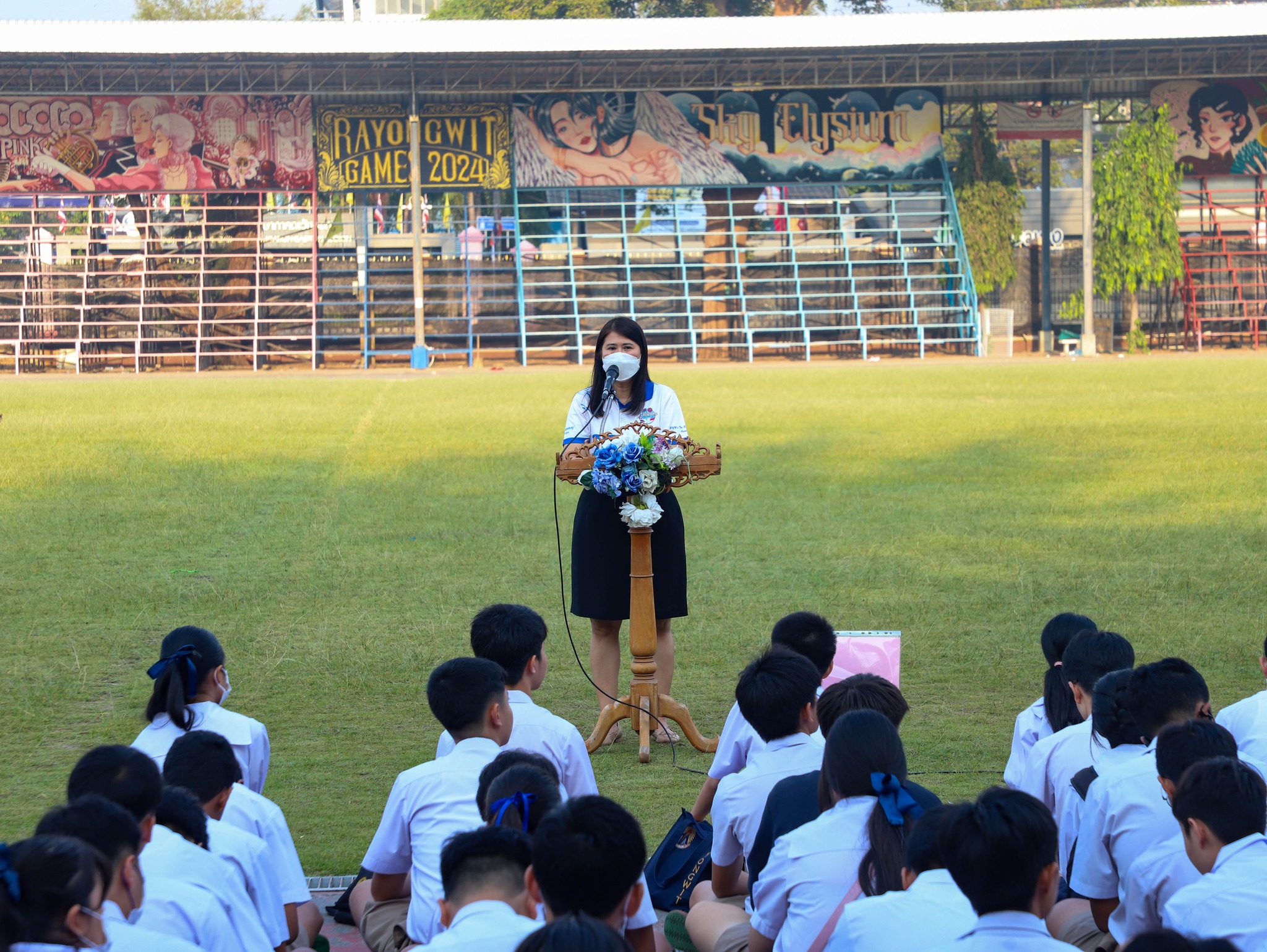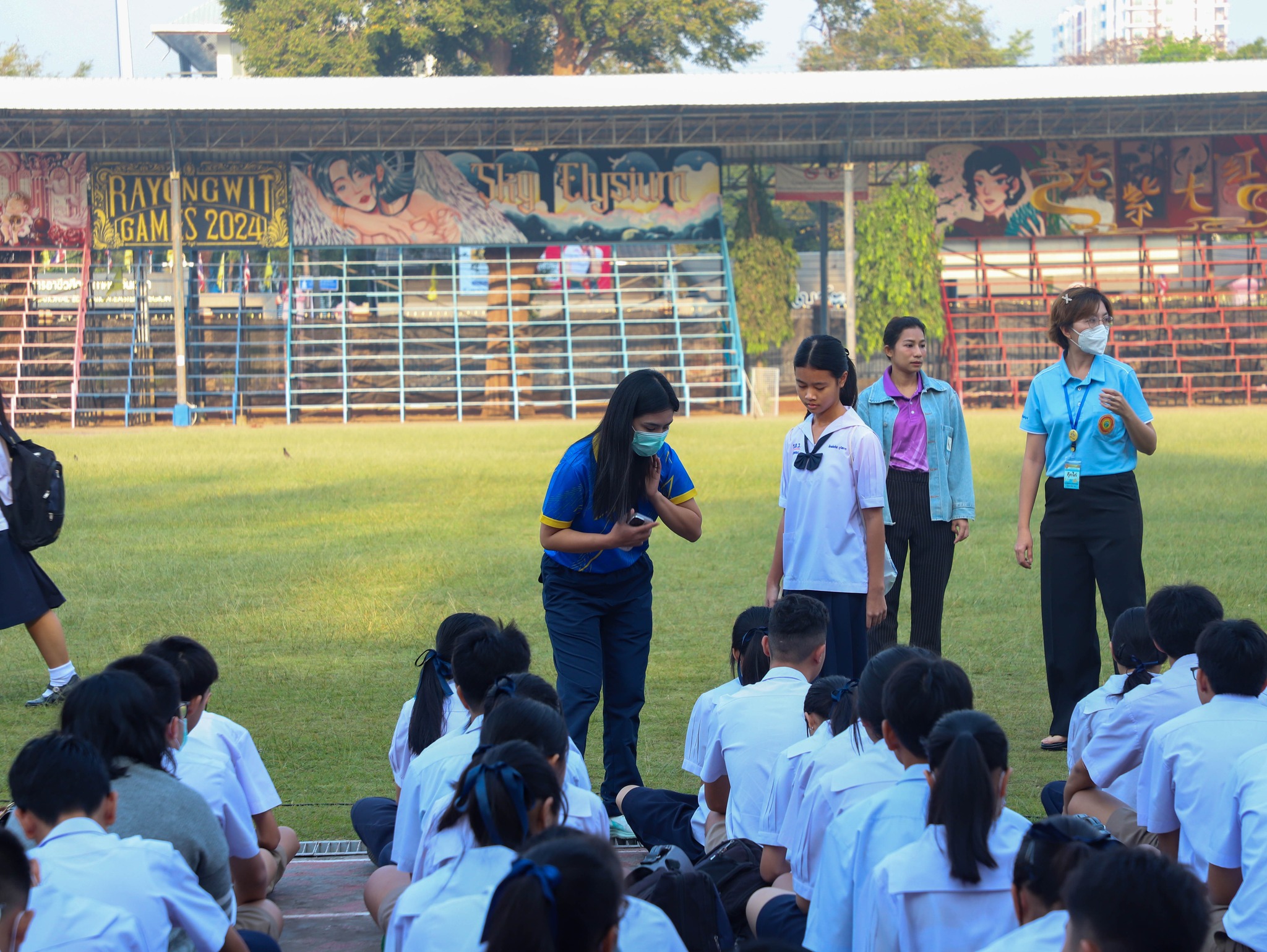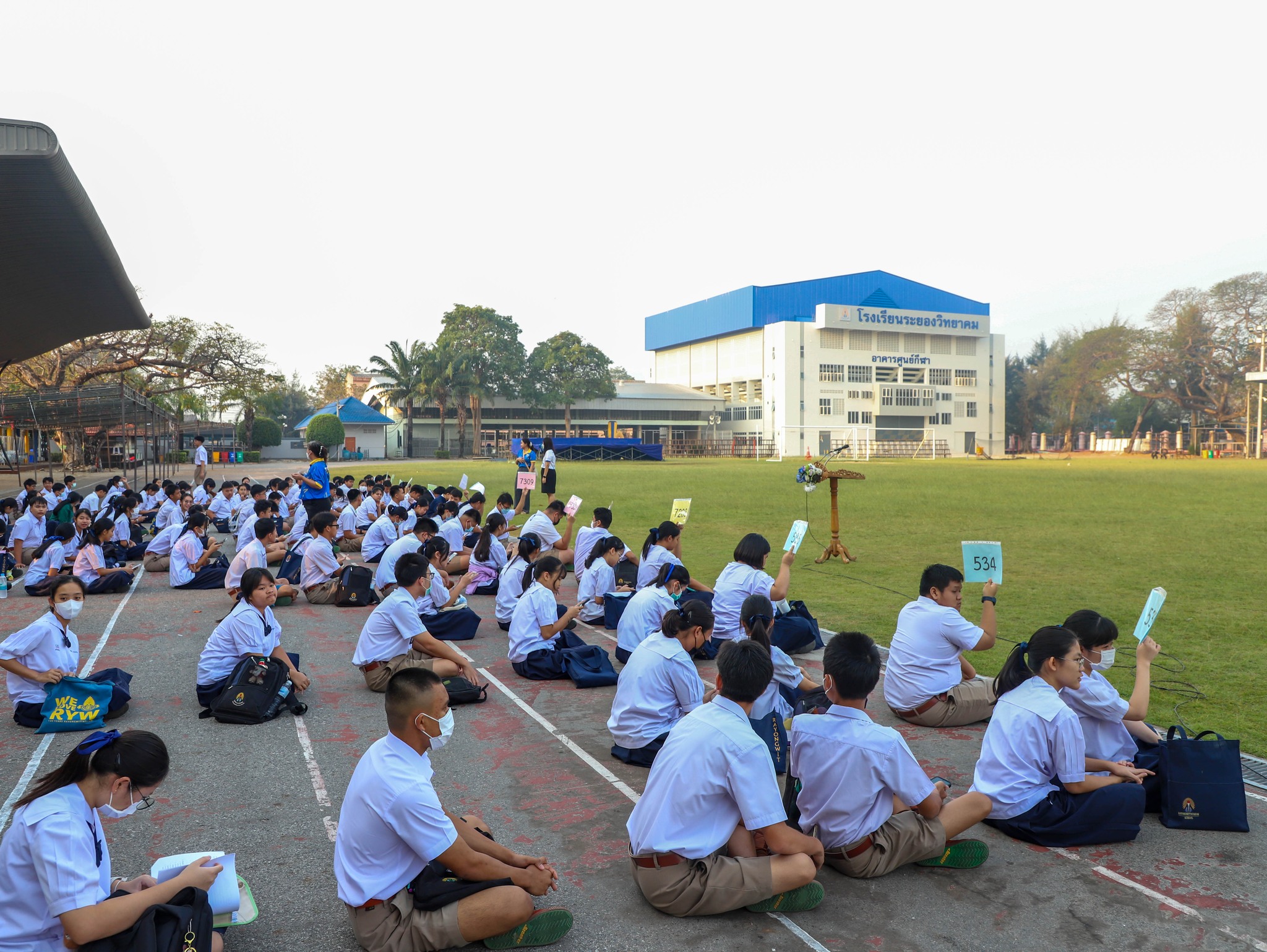 คณะครู และนักเรียนระดับชั้นมัธยมศึกษาปีที่ 3 ณ สนามกีฬา โรงเรียนระยองวิทยาคม