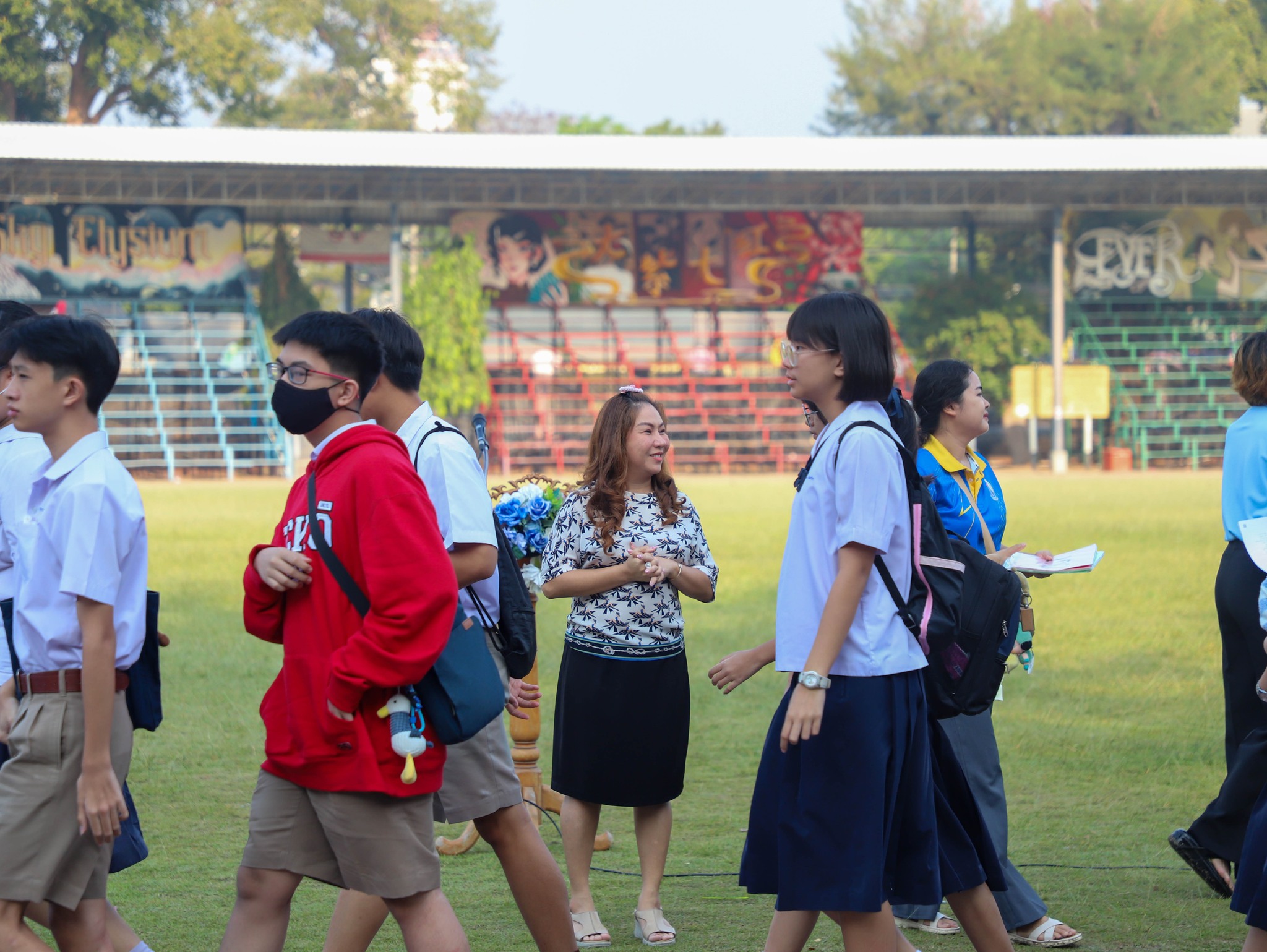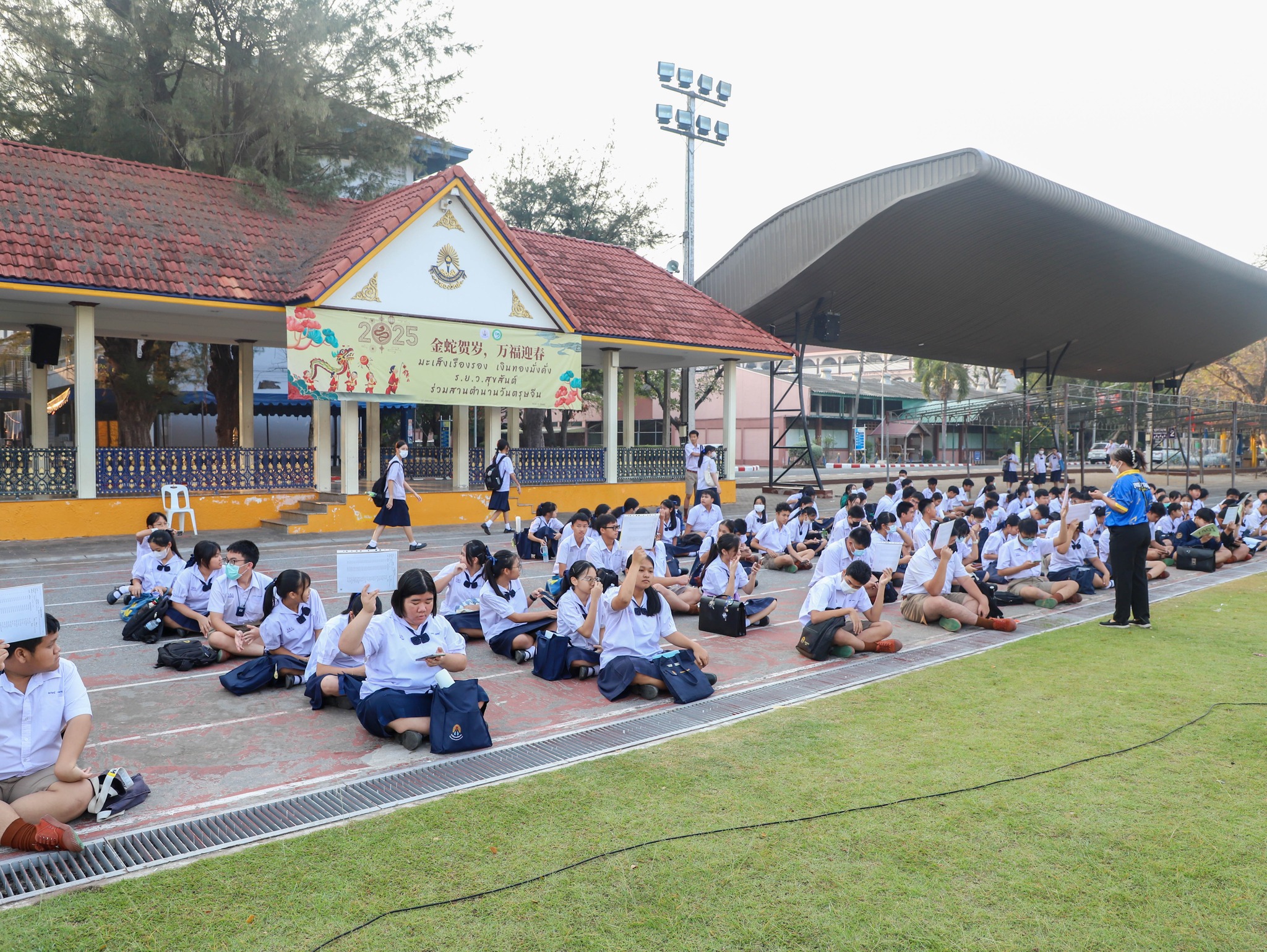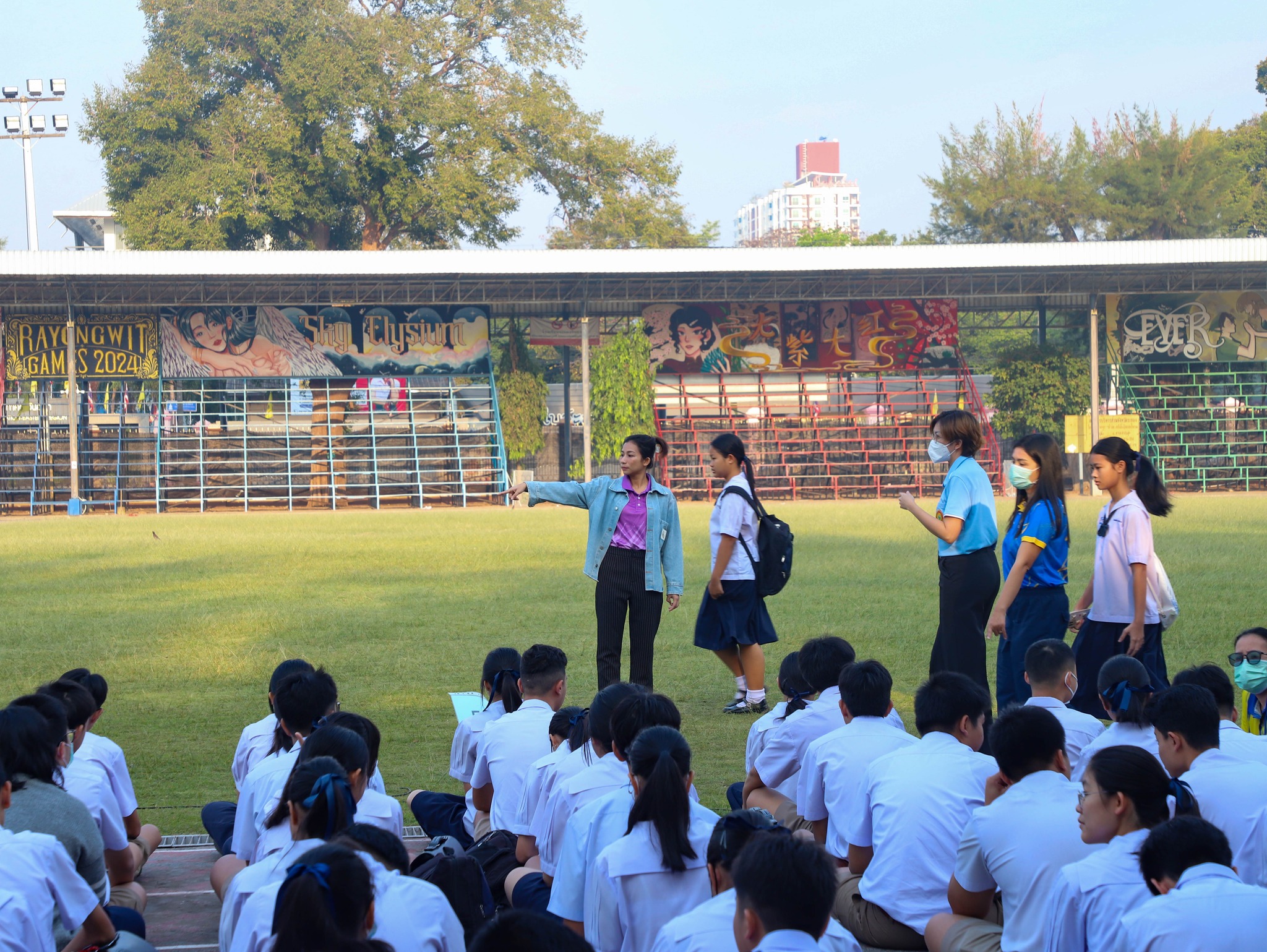 คณะครู และนักเรียนระดับชั้นมัธยมศึกษาปีที่ 3 ณ สนามกีฬา โรงเรียนระยองวิทยาคม