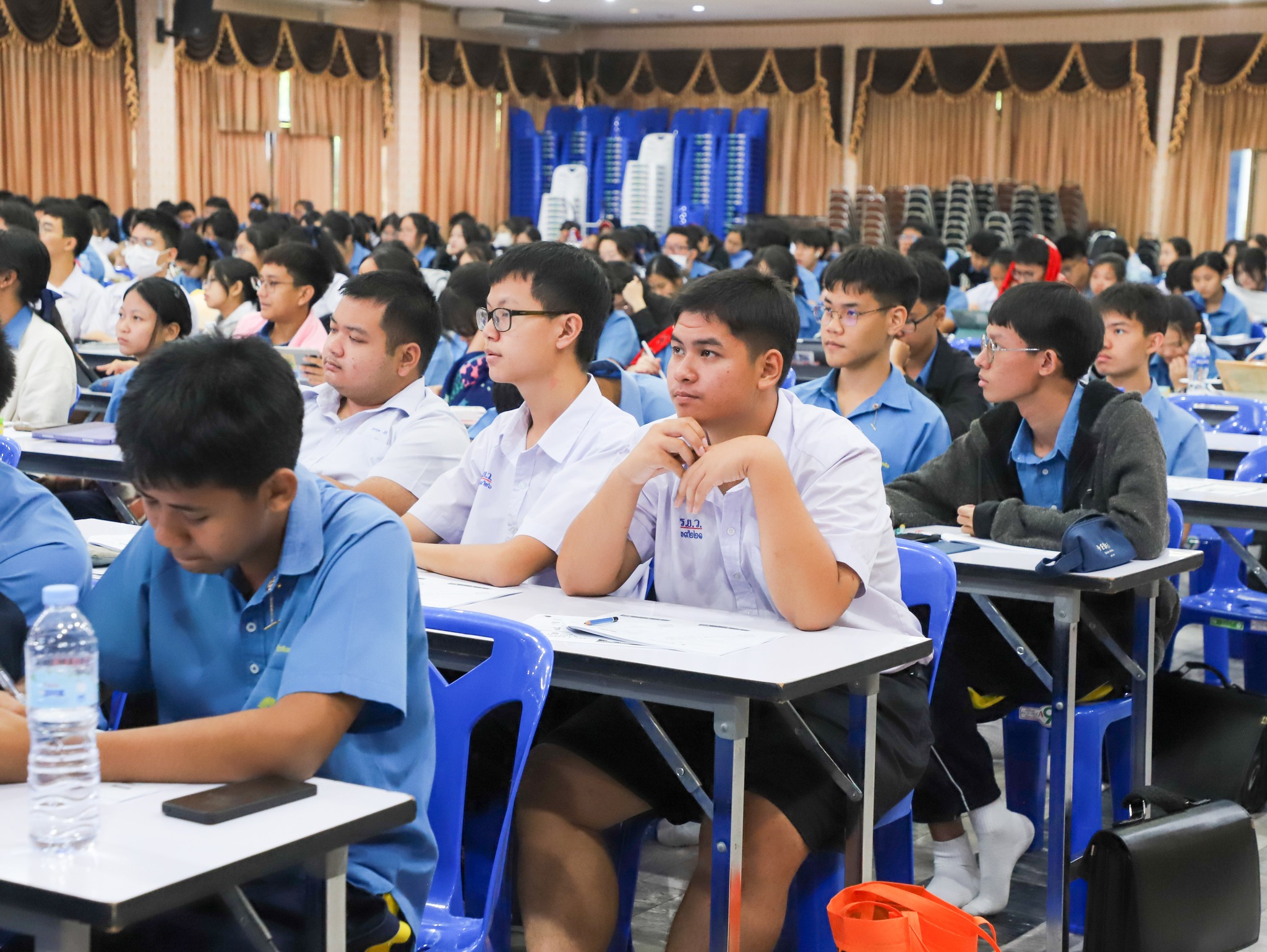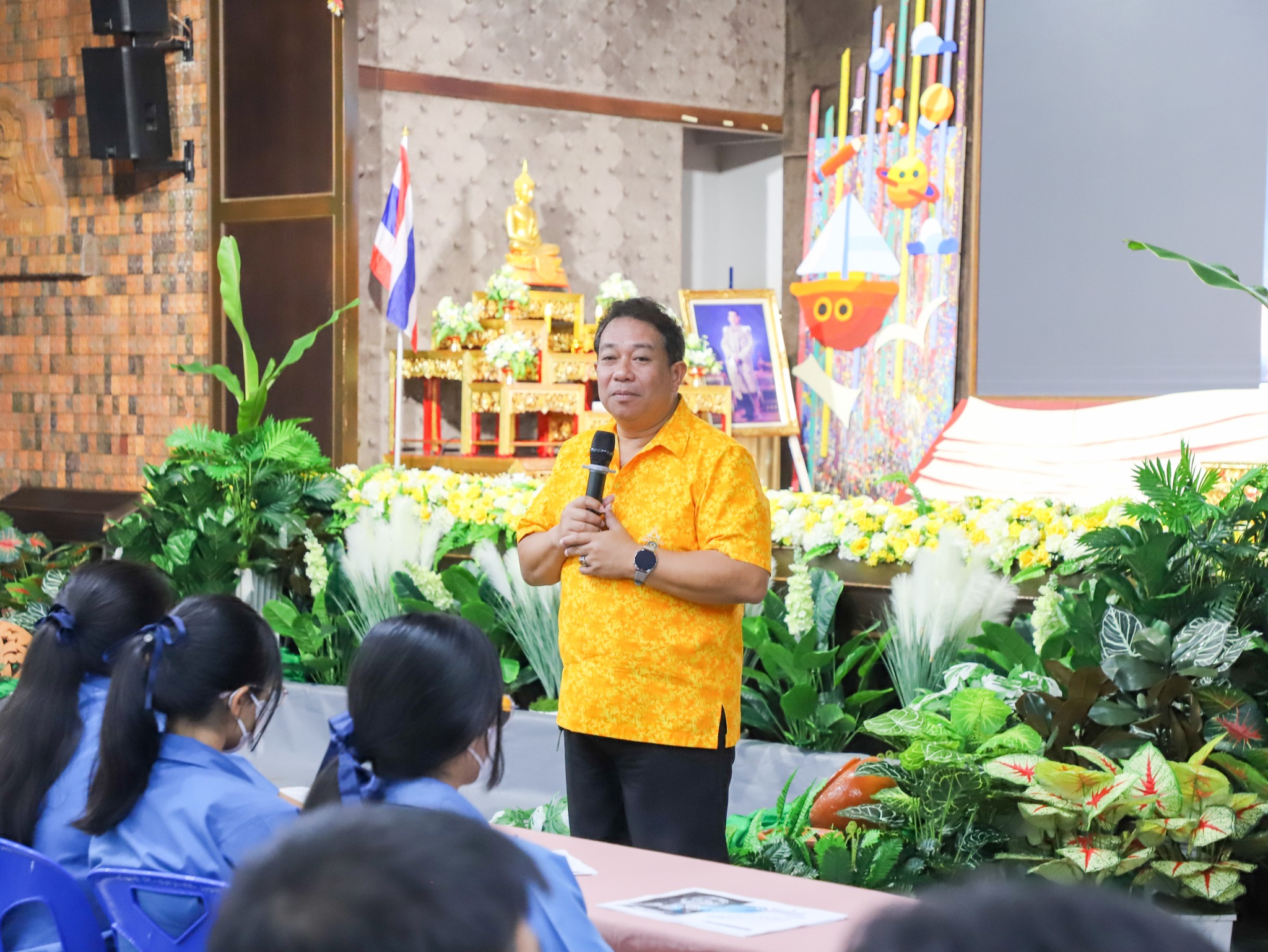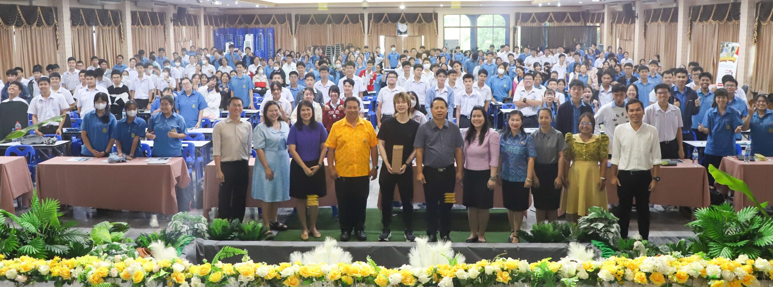 คณะครู บุคลากร และนักเรียนระดับชั้นมัธยมศึกษาปีที่ 6 โรงเรียนวิทยาคม ณ หอประชุมบุญศิริบำเพ็ญ โรงเรียนระยองวิทยาคม