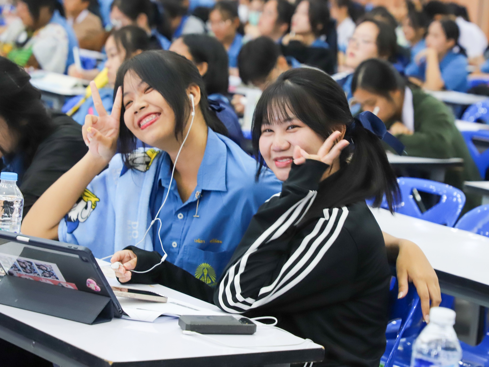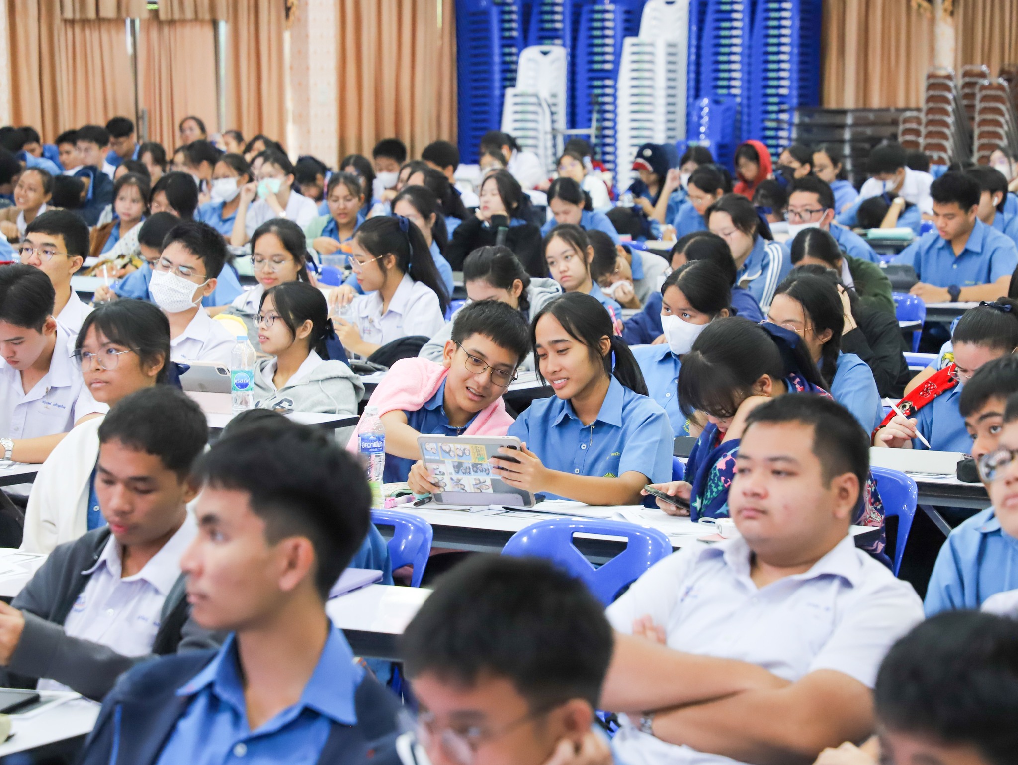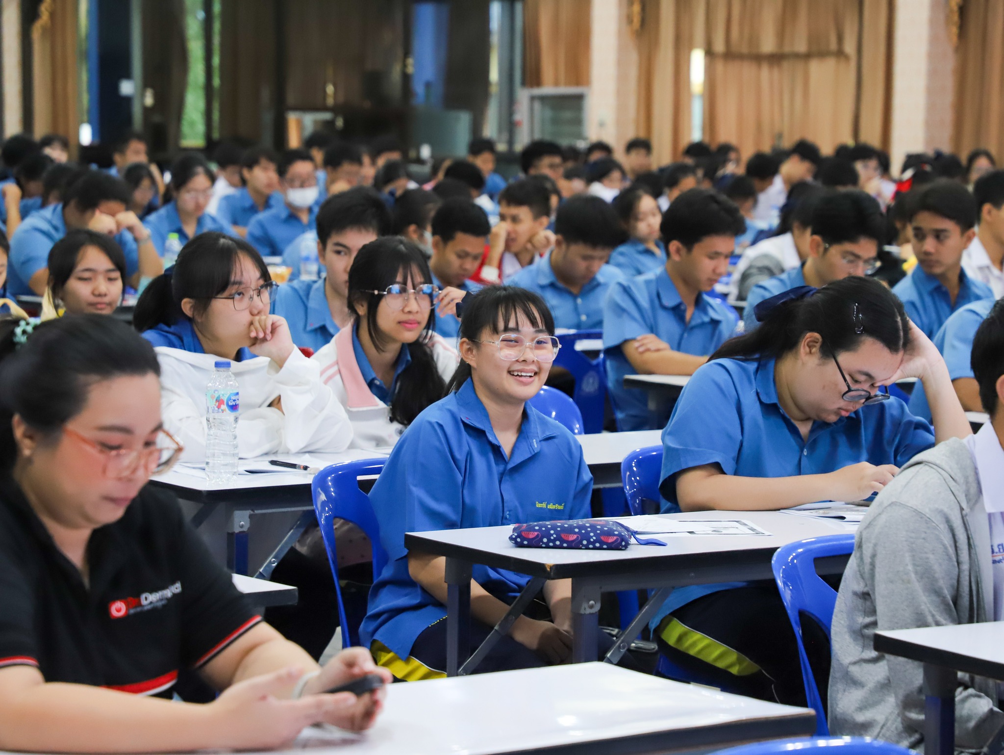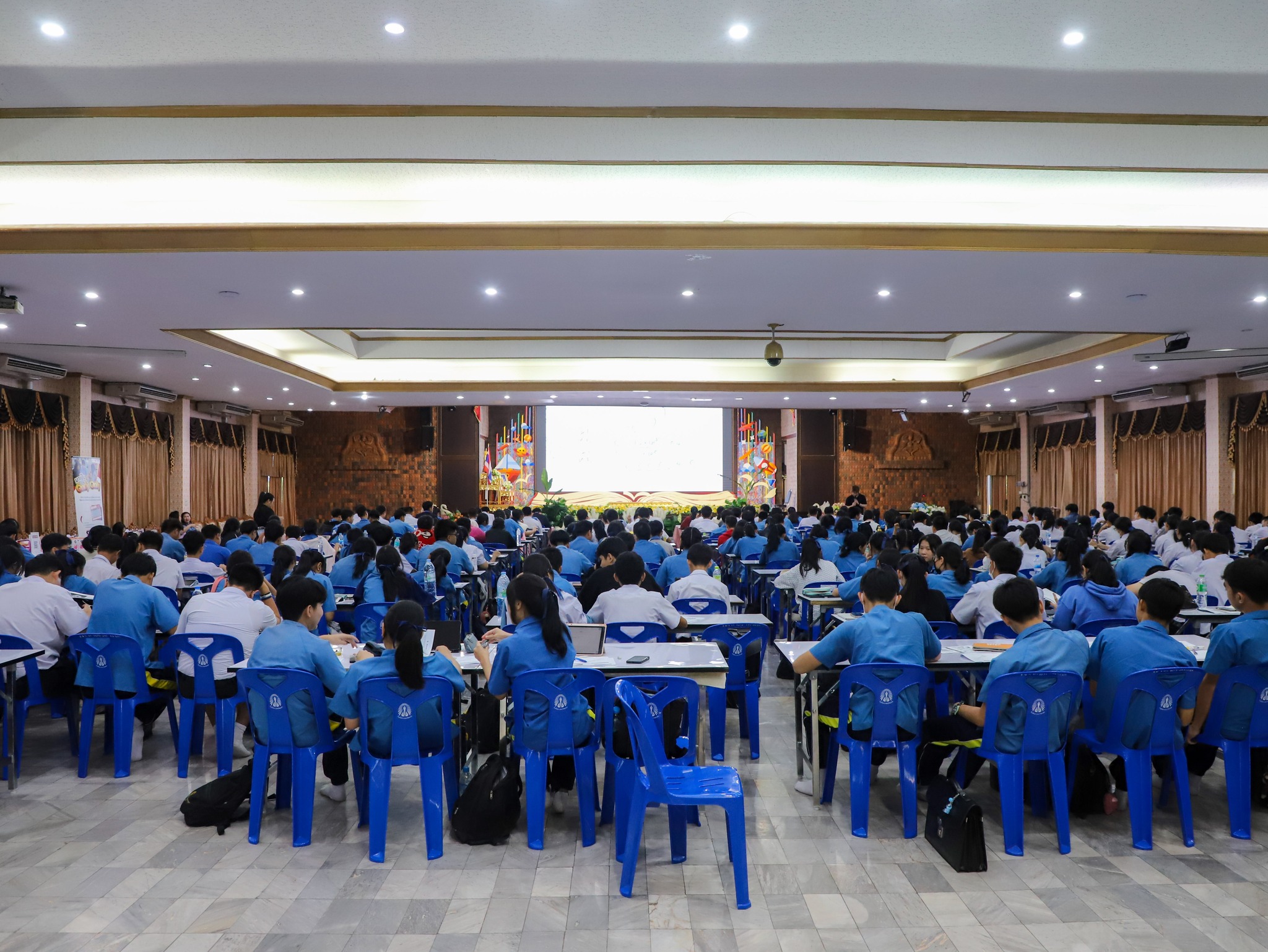 คณะครู บุคลากร และนักเรียนระดับชั้นมัธยมศึกษาปีที่ 6 โรงเรียนวิทยาคม ณ หอประชุมบุญศิริบำเพ็ญ โรงเรียนระยองวิทยาคม