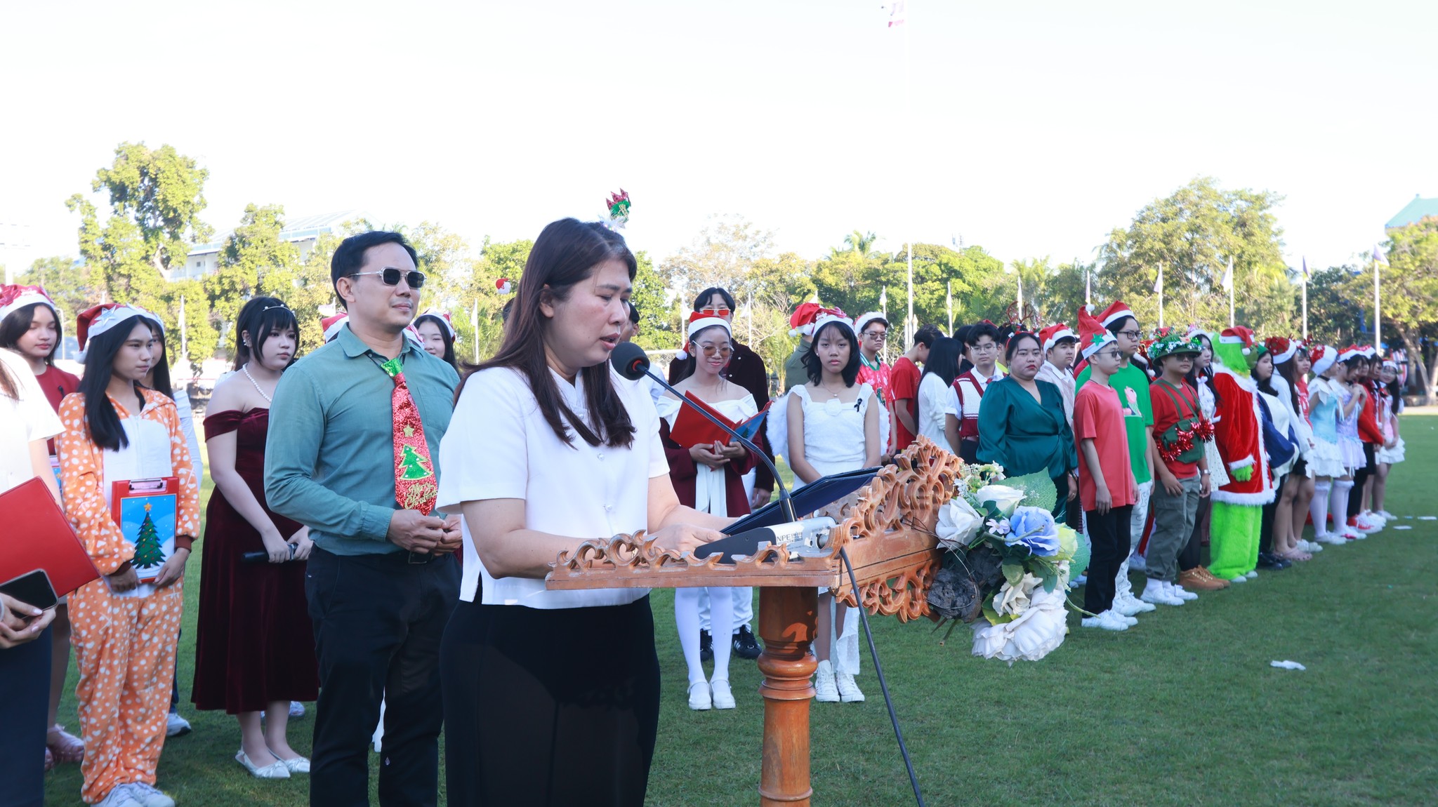 คณะครูและนักเรียนโรงเรียนระยองวิทยาคม ณ สนามกีฬา โรงเรียนระยองวิทยาคม