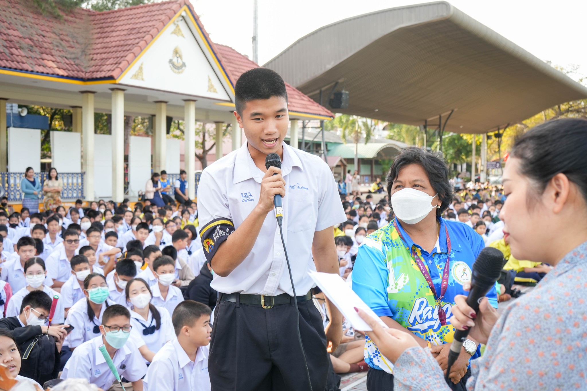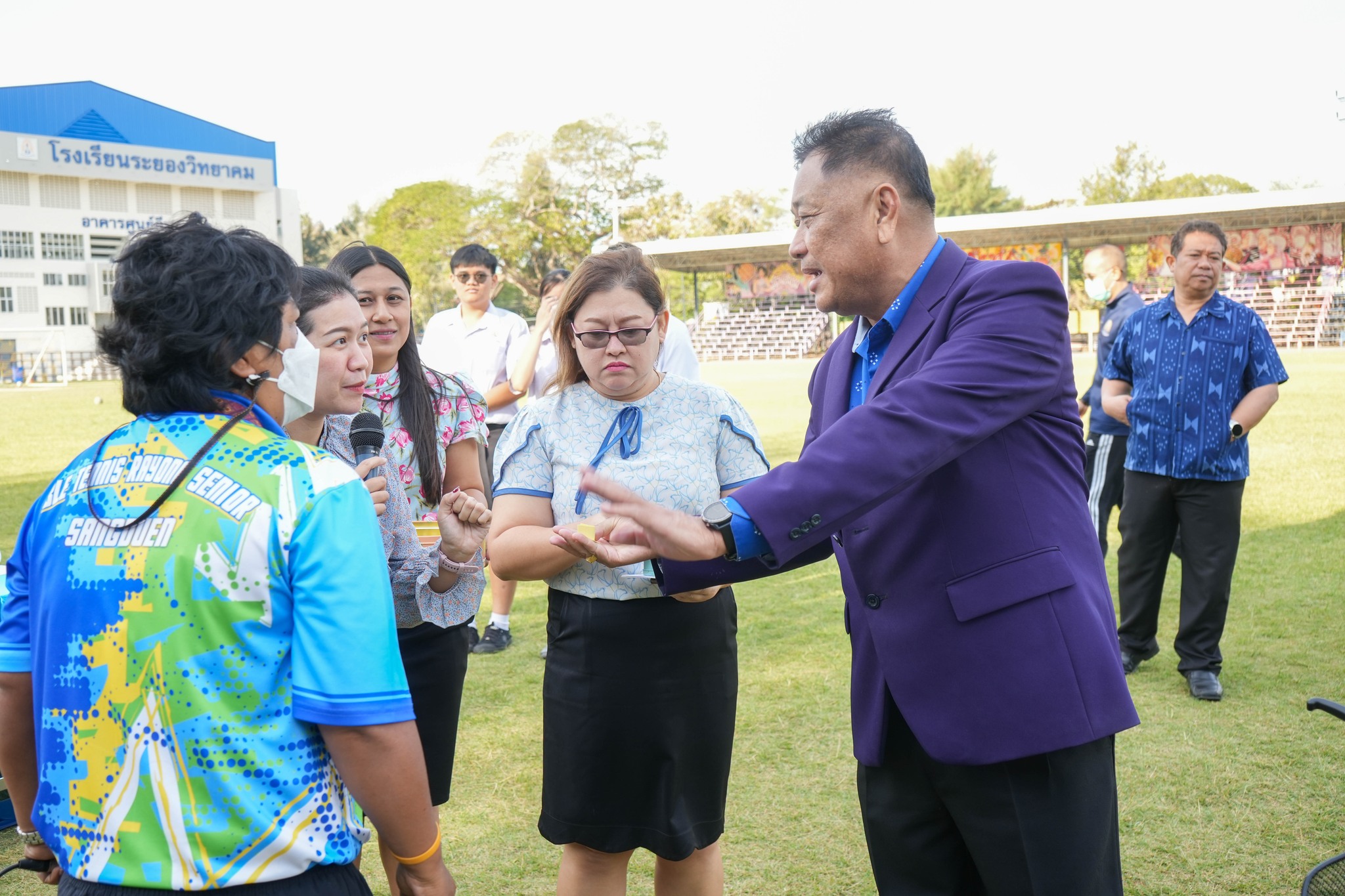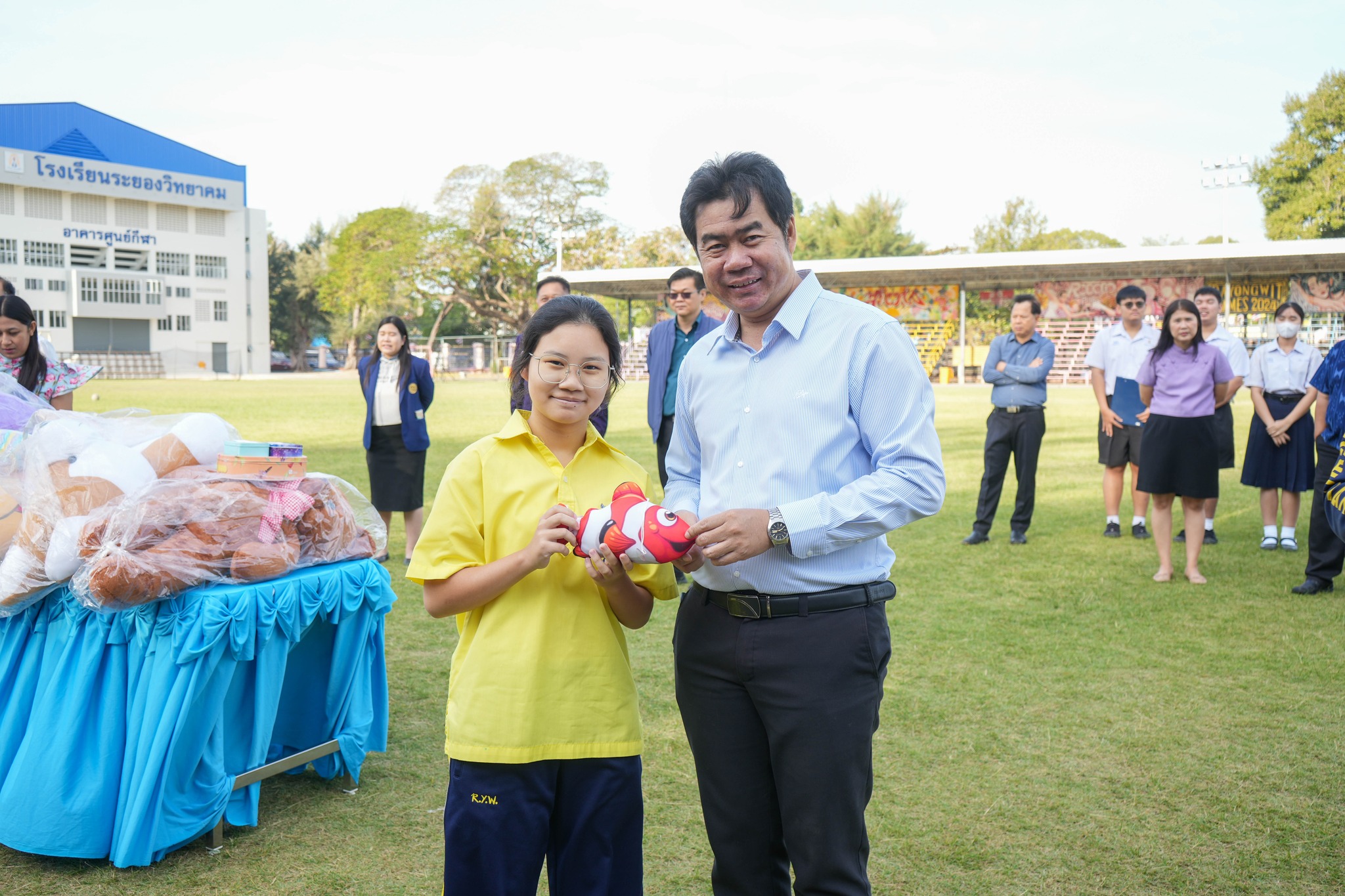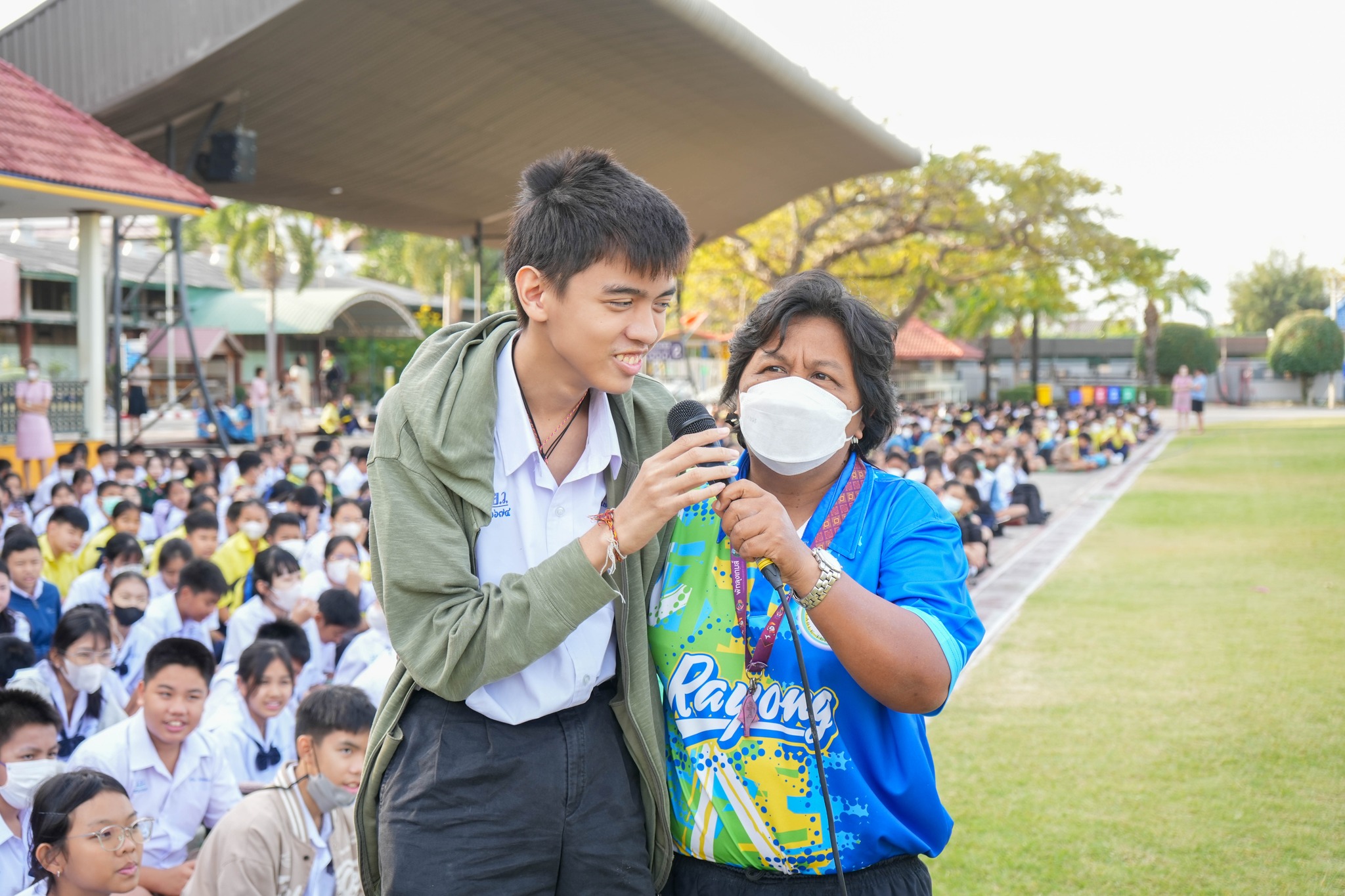 คณะครู บุคลากร และนักเรียนโรงเรียนระยองวิทยาคม ณ สนามกีฬาโรงเรียนระยองวิทยาคม
