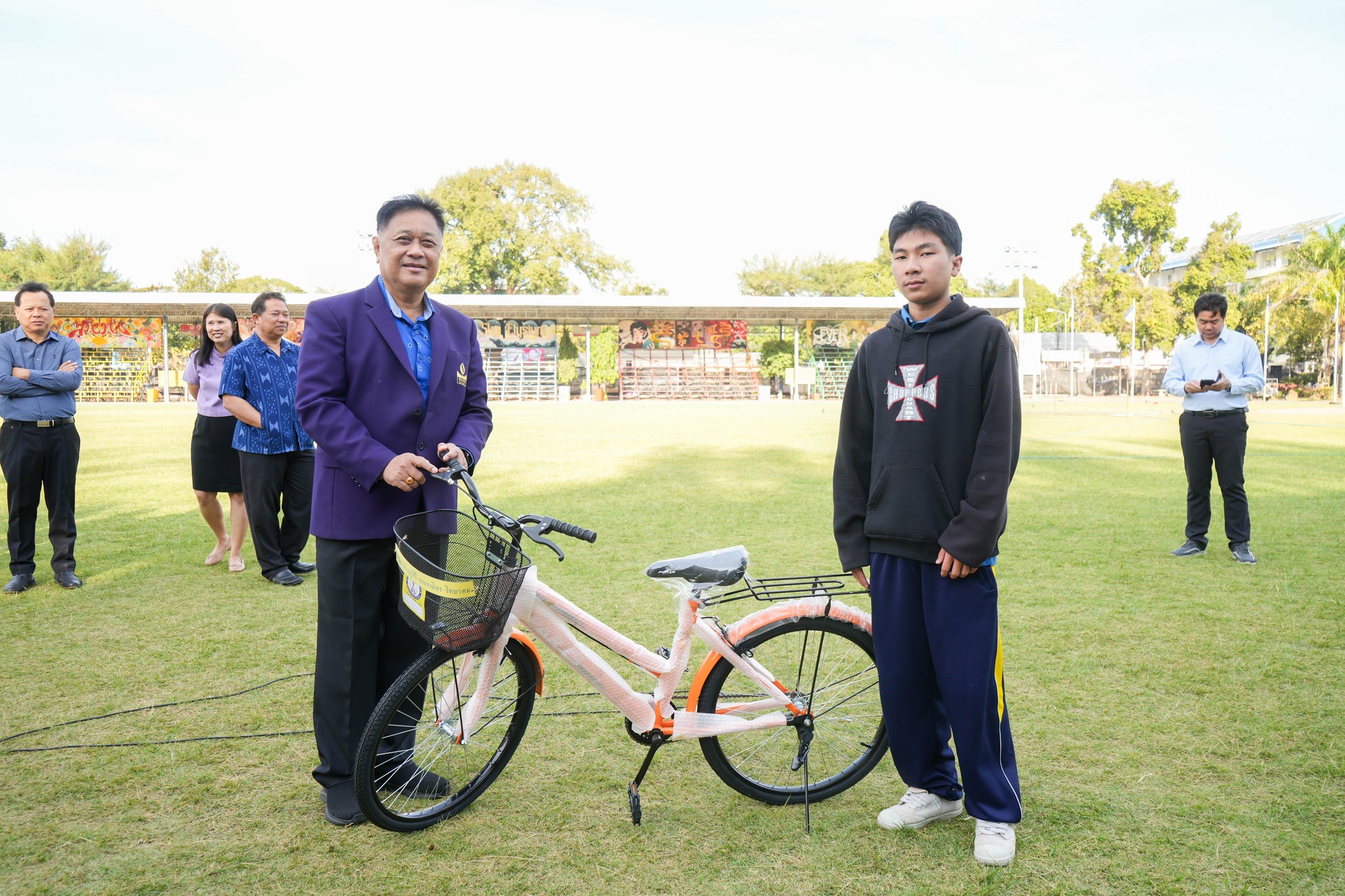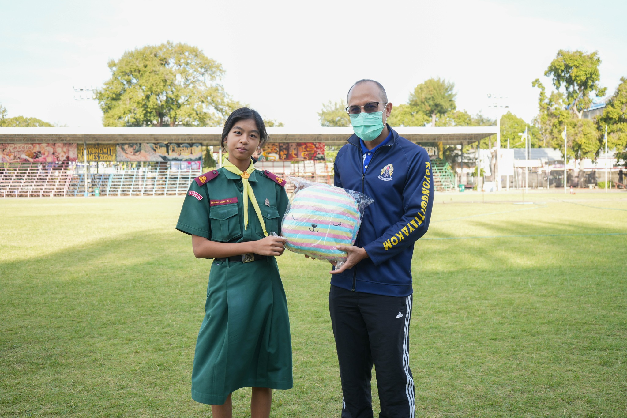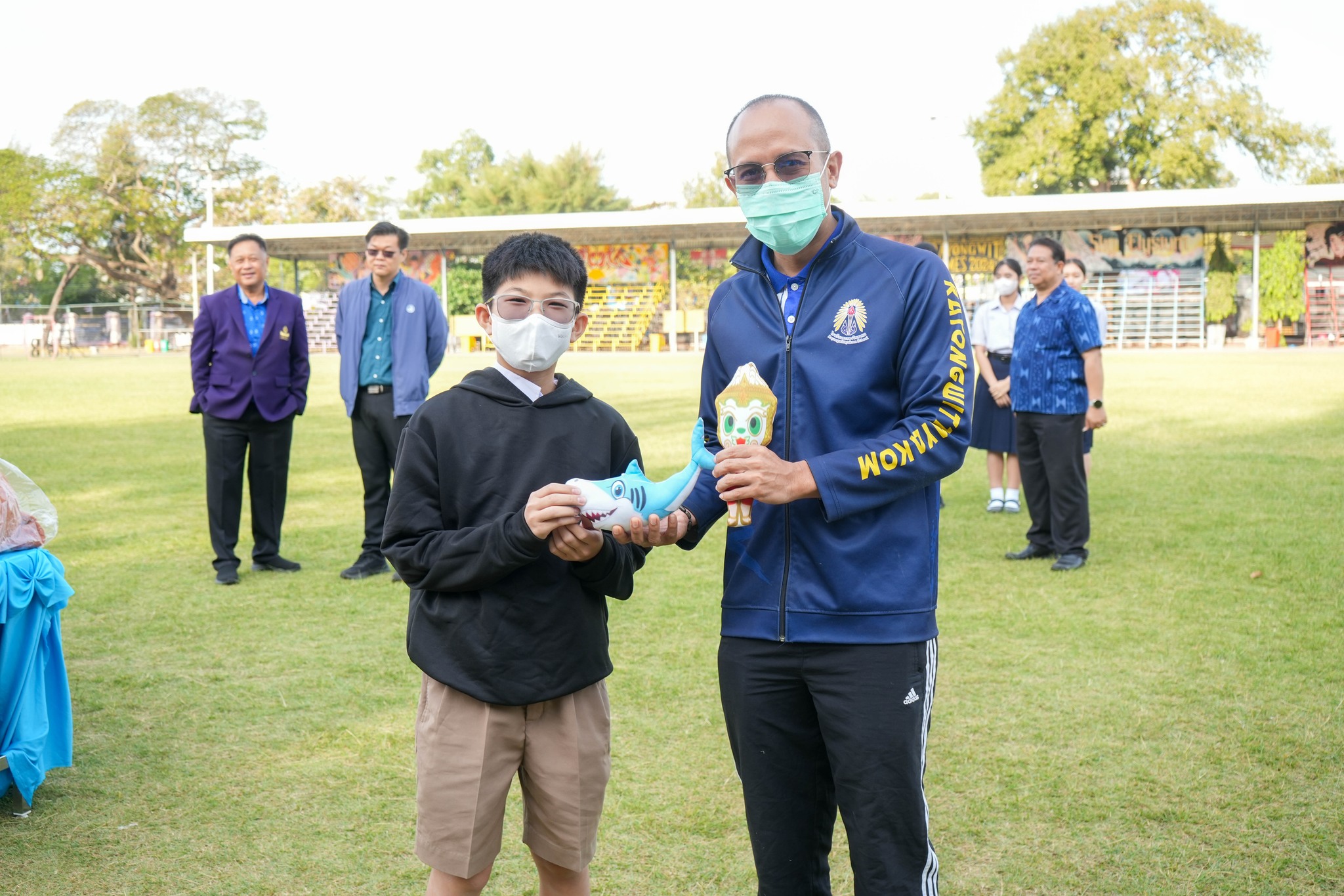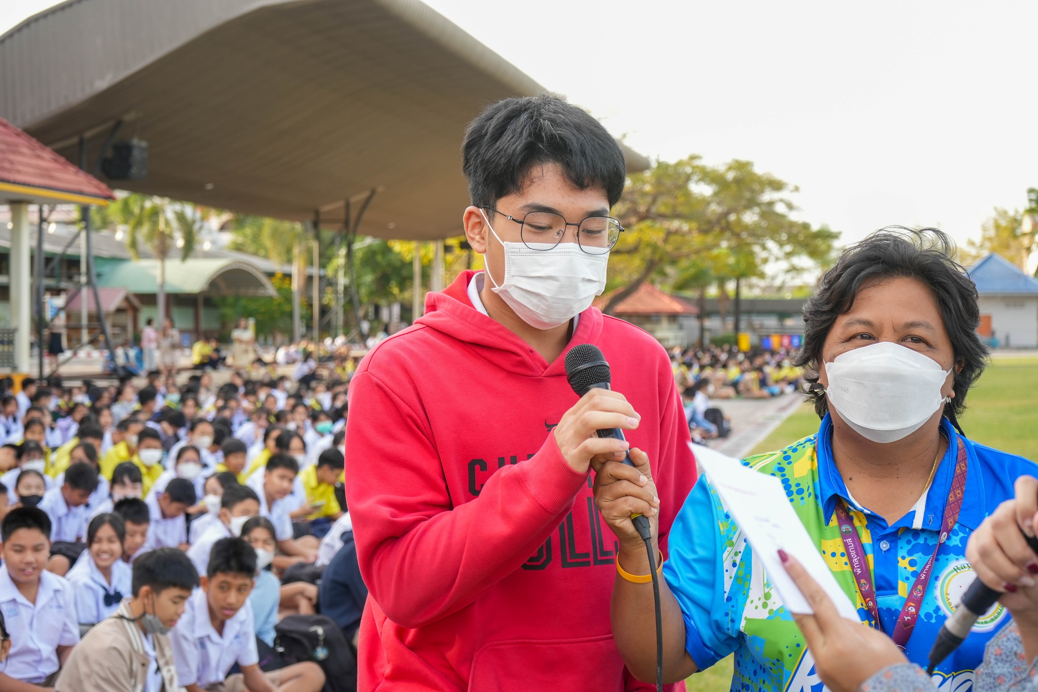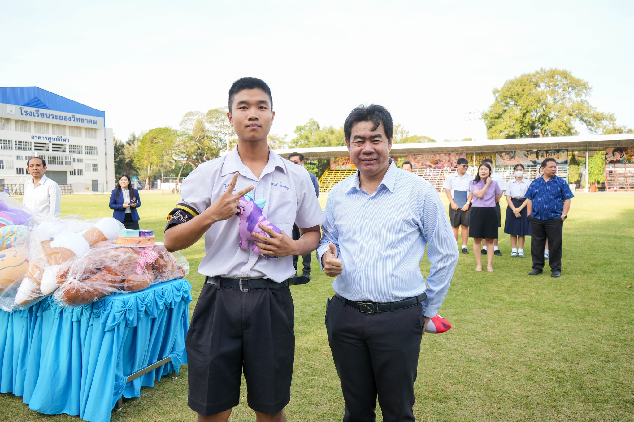 คณะครู บุคลากร และนักเรียนโรงเรียนระยองวิทยาคม ณ สนามกีฬาโรงเรียนระยองวิทยาคม