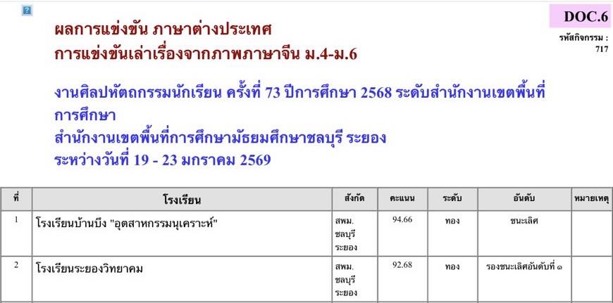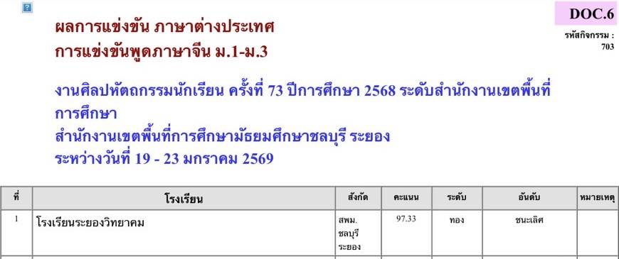“งานศิลปหัตถกรรมนักเรียน ครั้งที่ 73 ปีการศึกษา 2568 ”ระดับสำนักงานเขตพื้นที่การศึกษามัธยมศึกษา ชลบุรี ระยอง ในวันที่ 19 มกราคม 2569