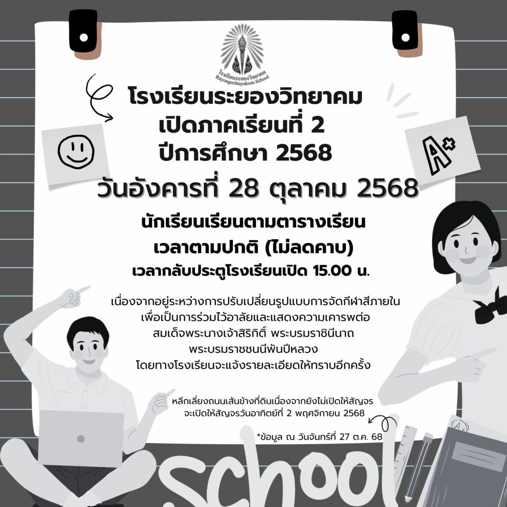 ประกาศเปิดภาคเรียนที่ 2 ปีการศึกษา 2568