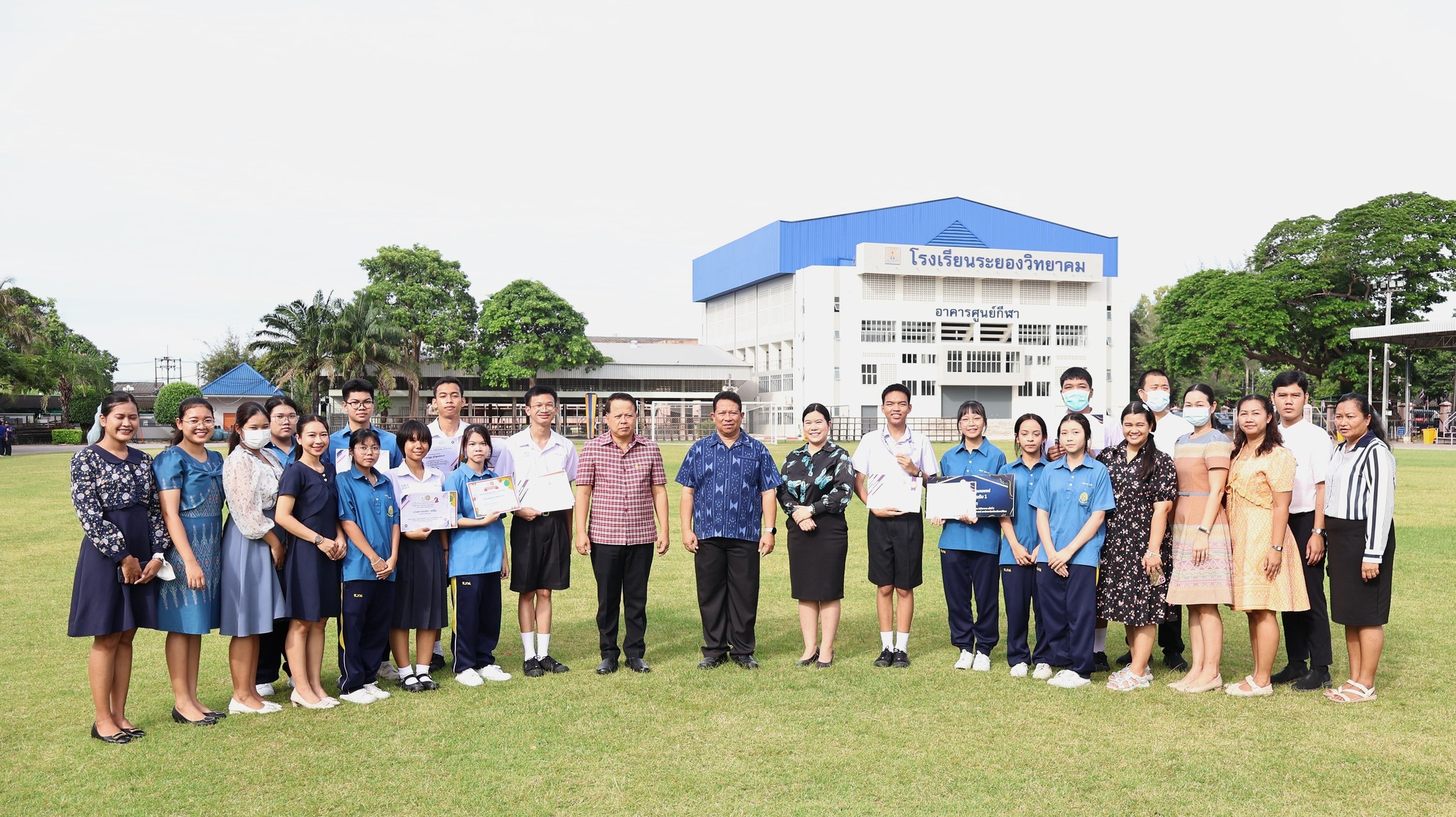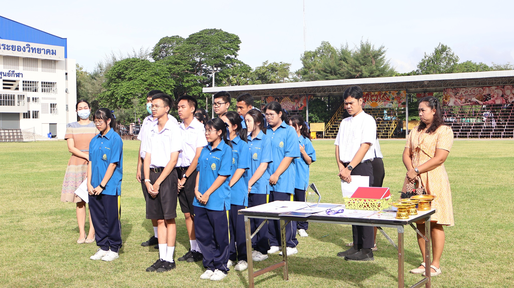 พร้อมด้วยคณะครูและนักเรียน เข้าร่วมพิธี ณ สนามกีฬา โรงเรียนระยองวิทยาคม