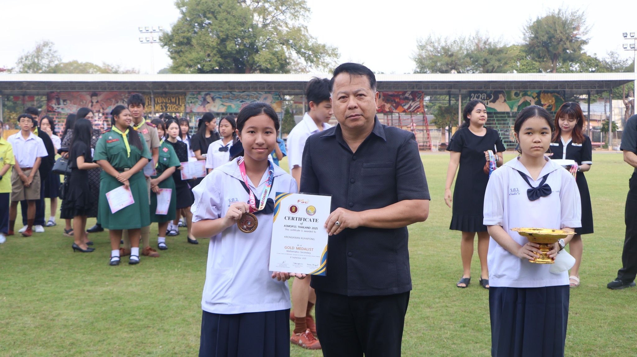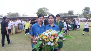 พร้อมด้วยคณะครูและนักเรียนเข้าร่วมพิธีอย่างพร้อมเพรียงกัน