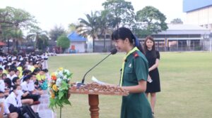 พร้อมด้วยคณะครูและนักเรียนเข้าร่วมพิธีอย่างพร้อมเพรียงกัน