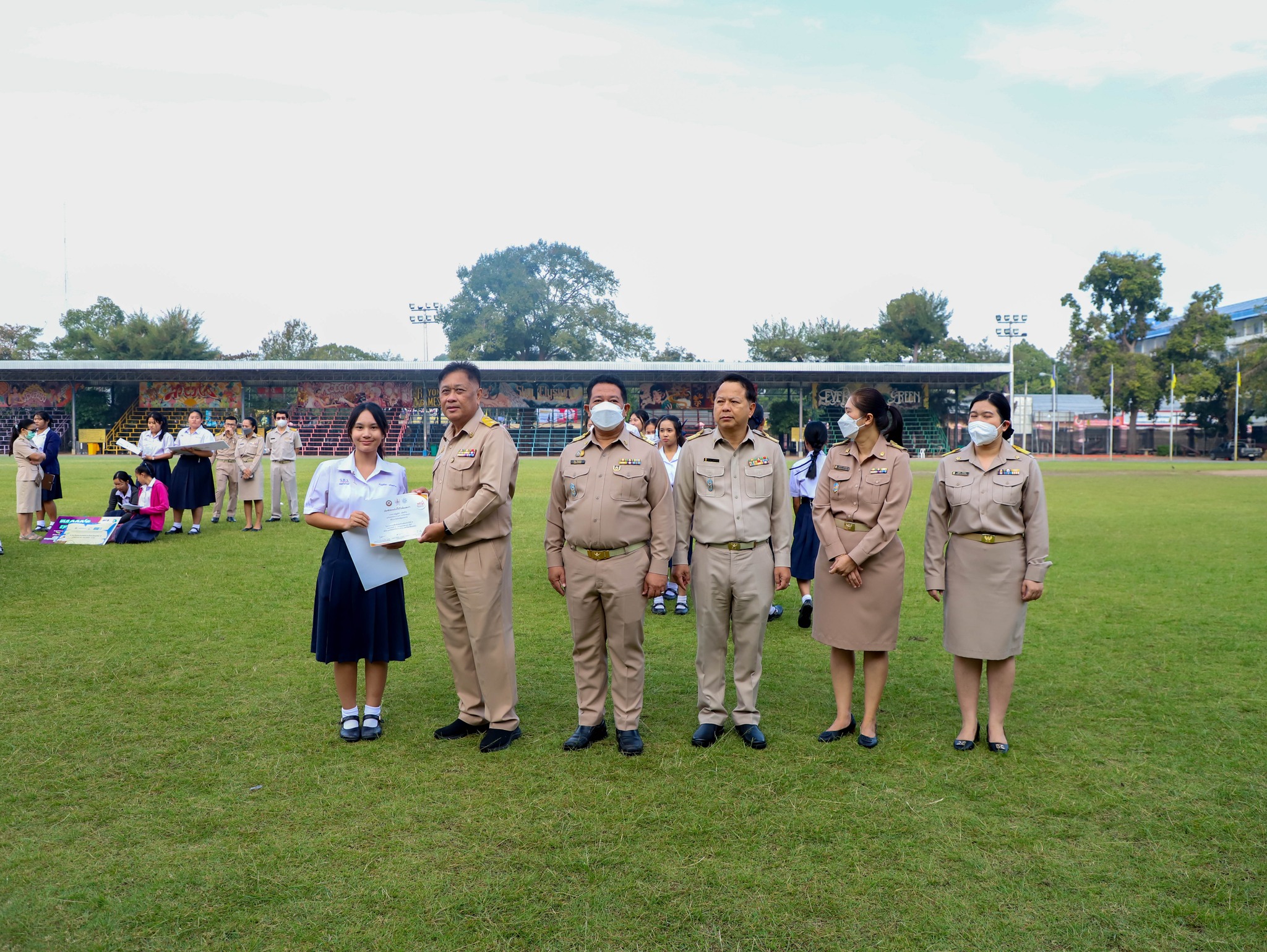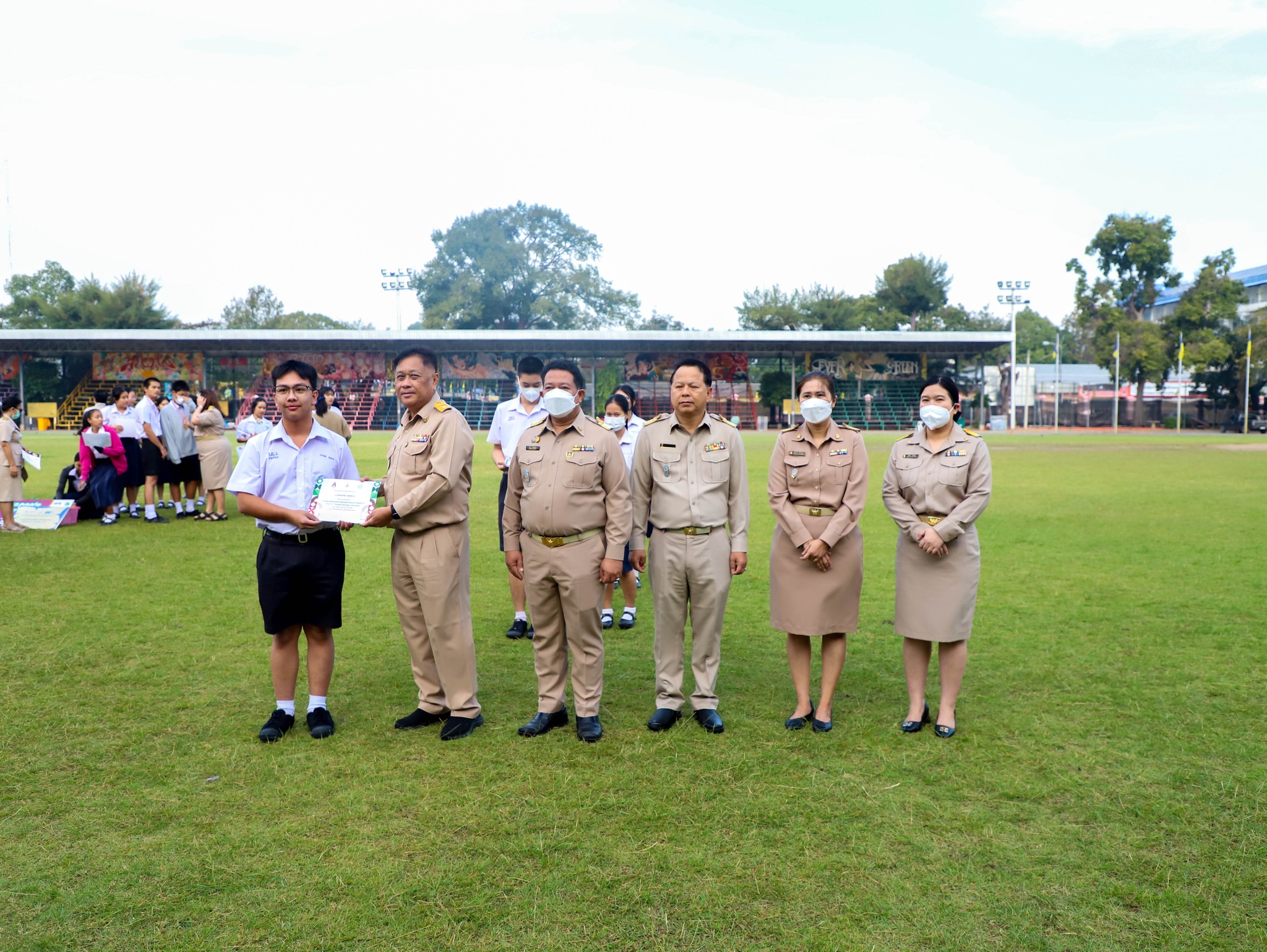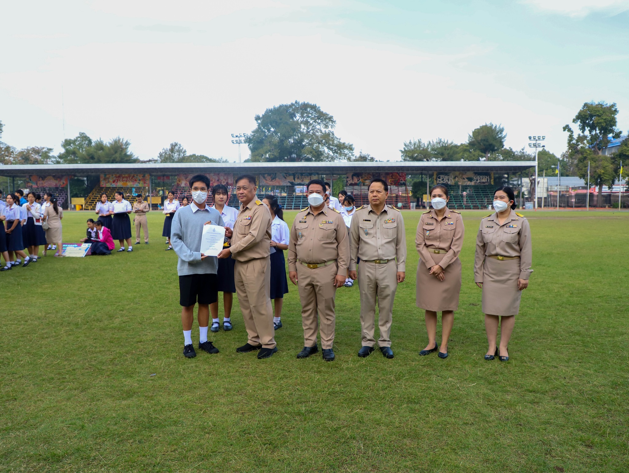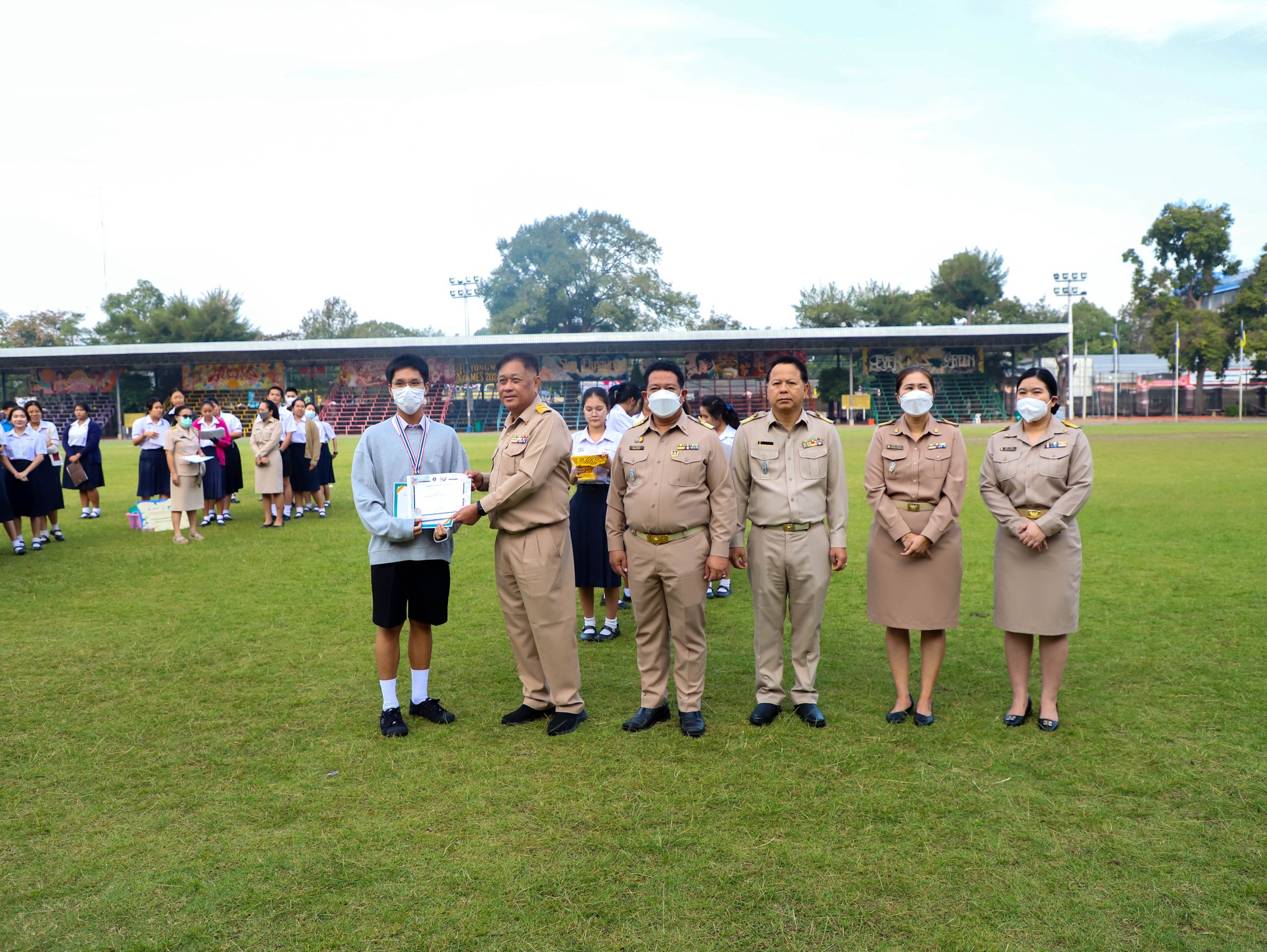 คณะครู บุคลากร และนักเรียนโรงเรียนระยองวิทยาคม ณ สนามกีฬา โรงเรียนระยองวิทยาคม