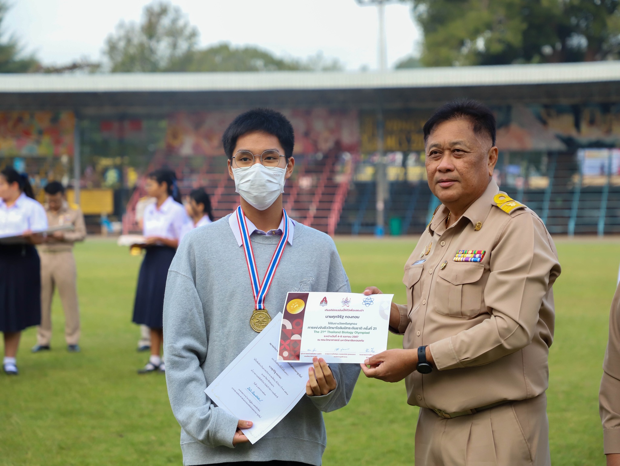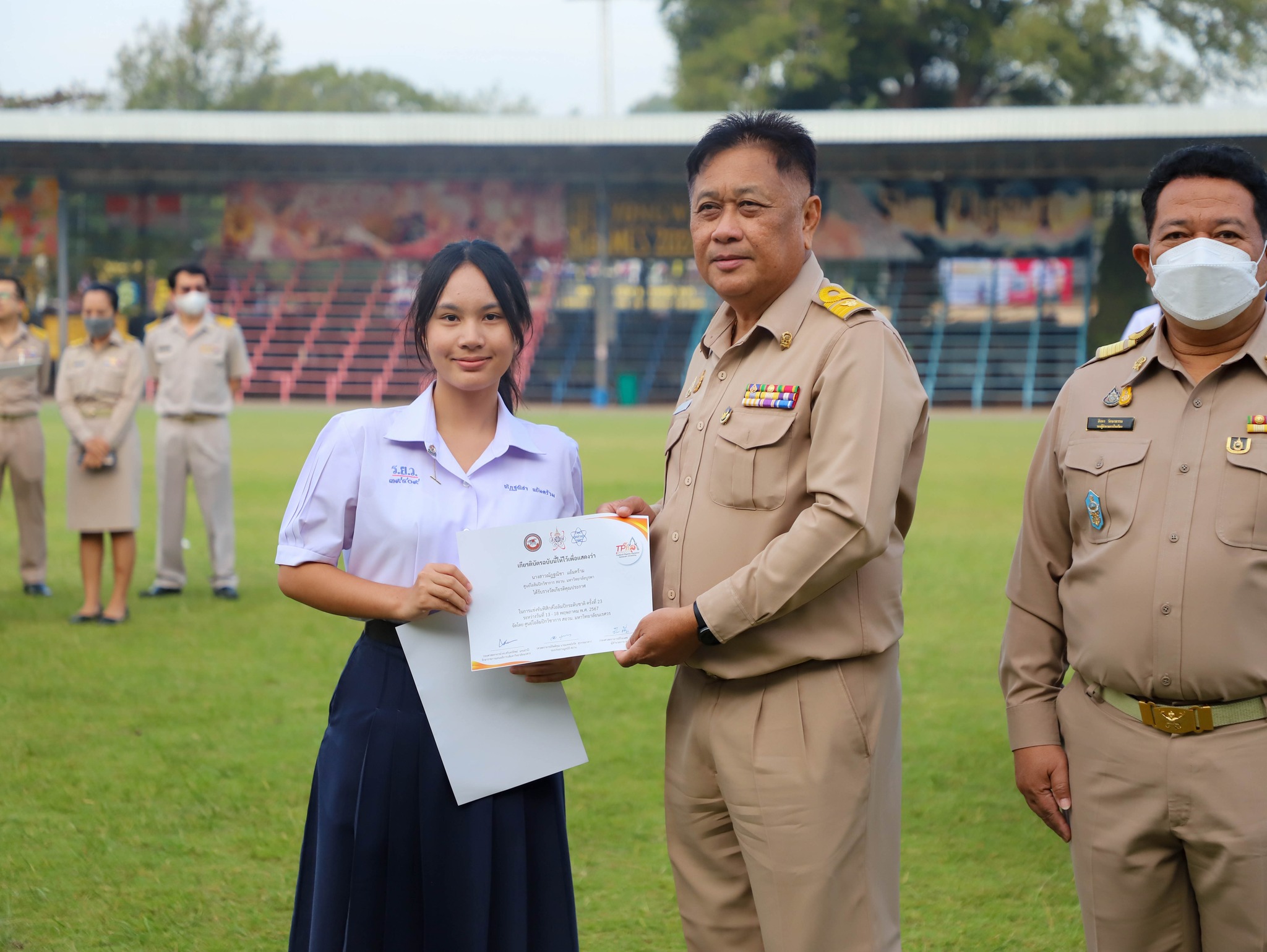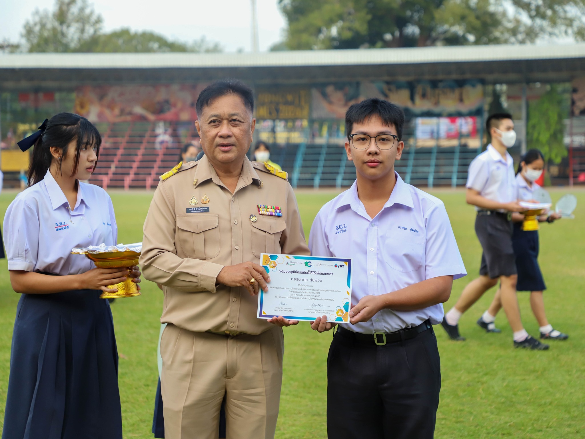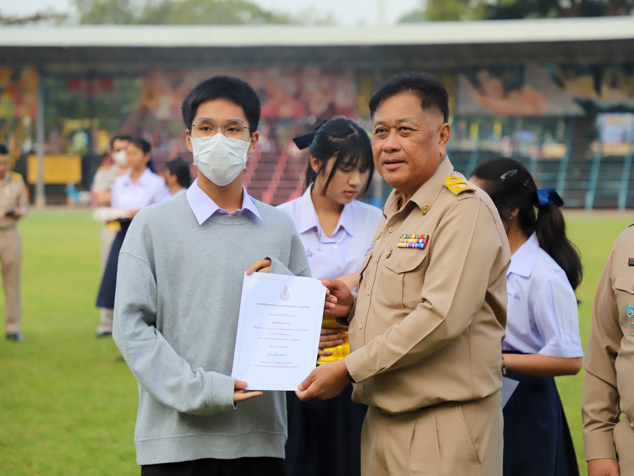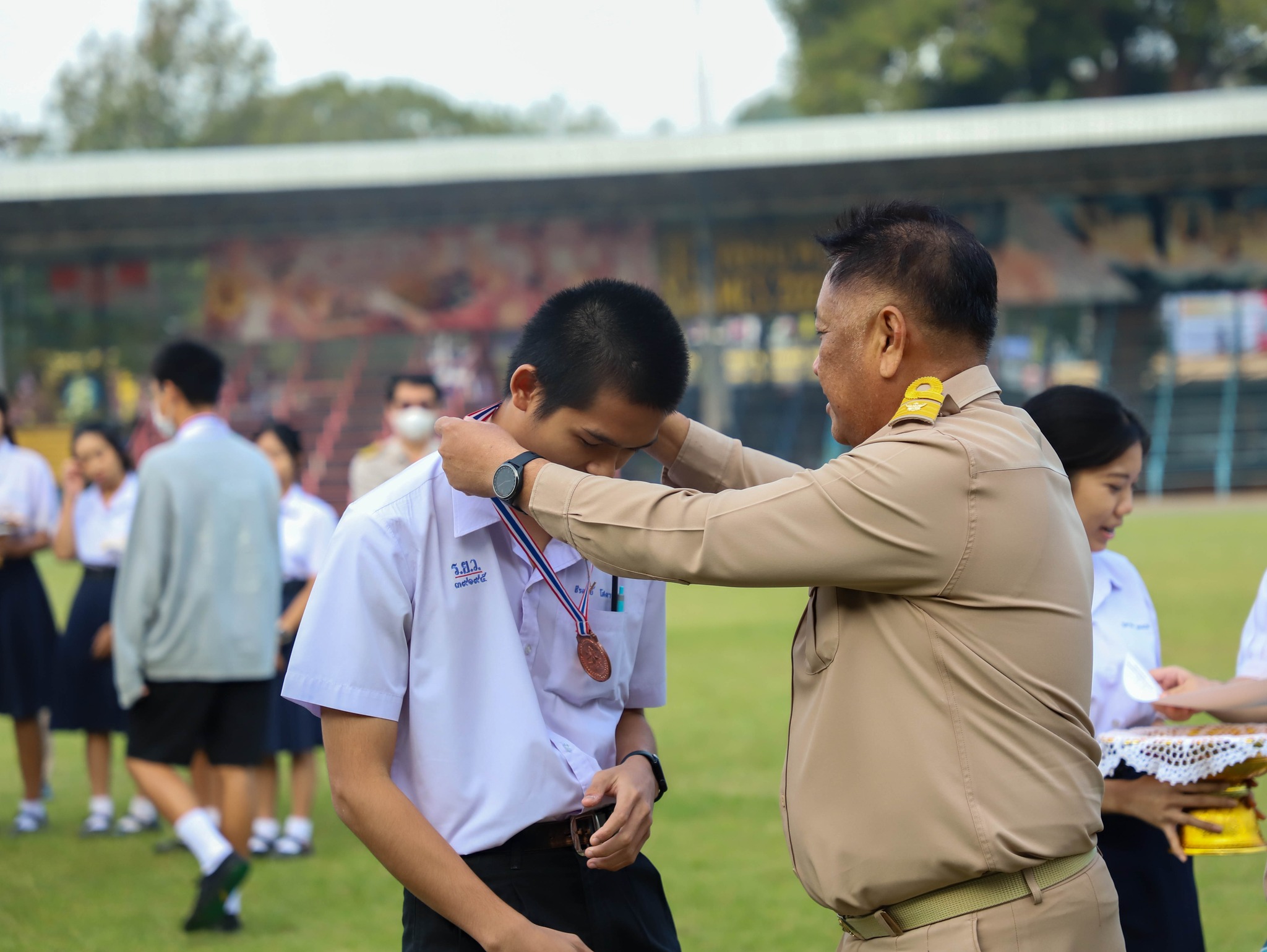 คณะครู บุคลากร และนักเรียนโรงเรียนระยองวิทยาคม ณ สนามกีฬา โรงเรียนระยองวิทยาคม