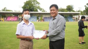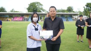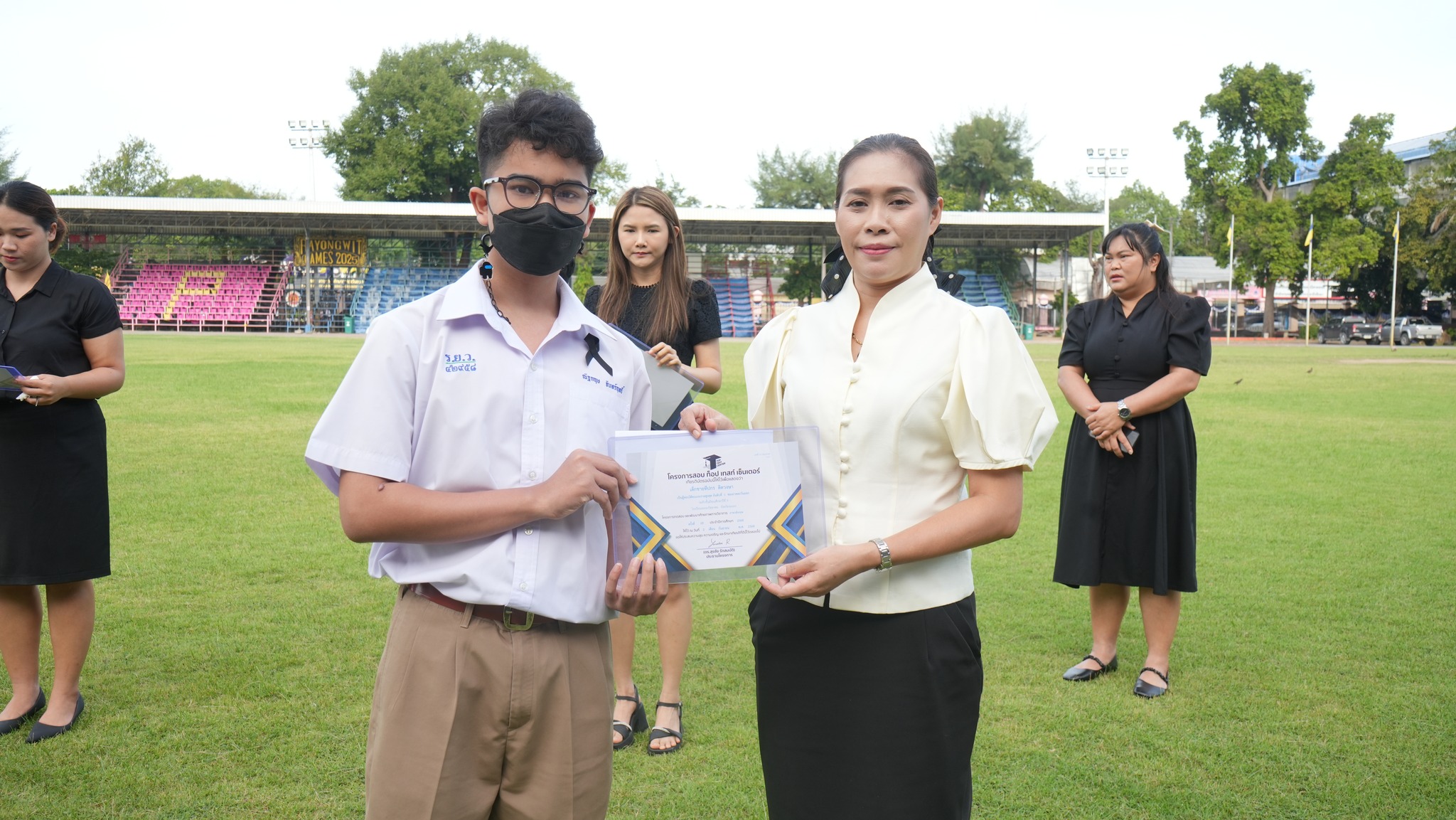 คณะครูและนักเรียน ณ สนามกีฬา โรงเรียนระยองวิทยาคม