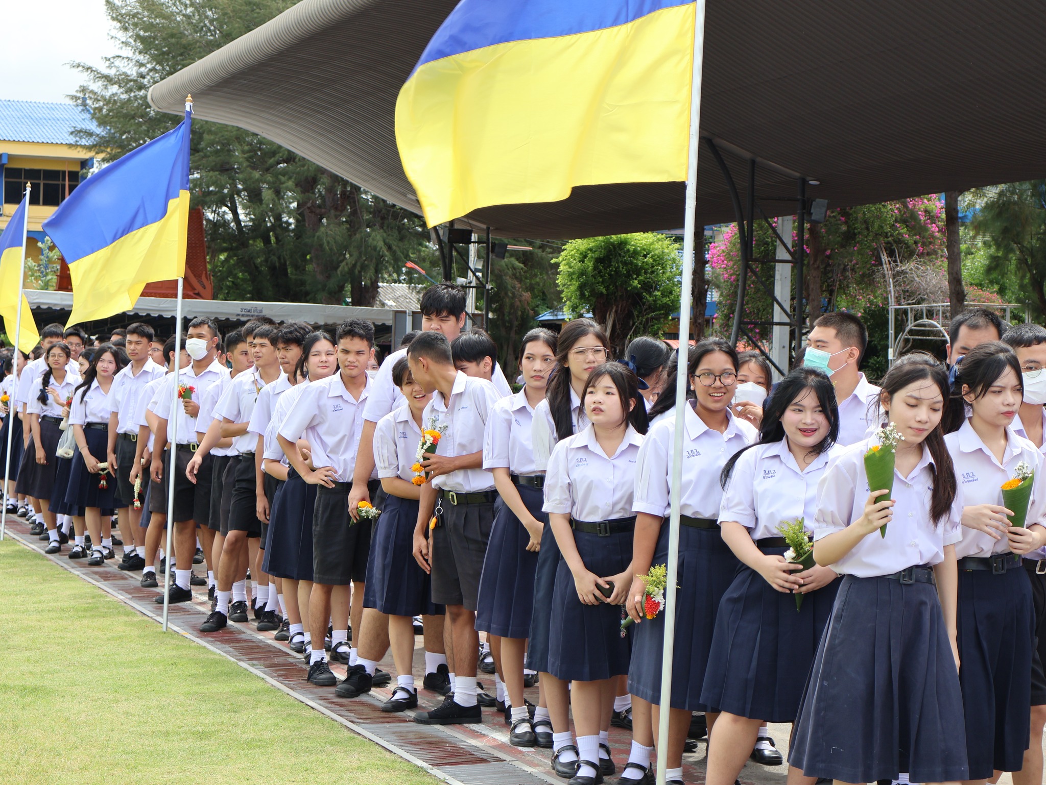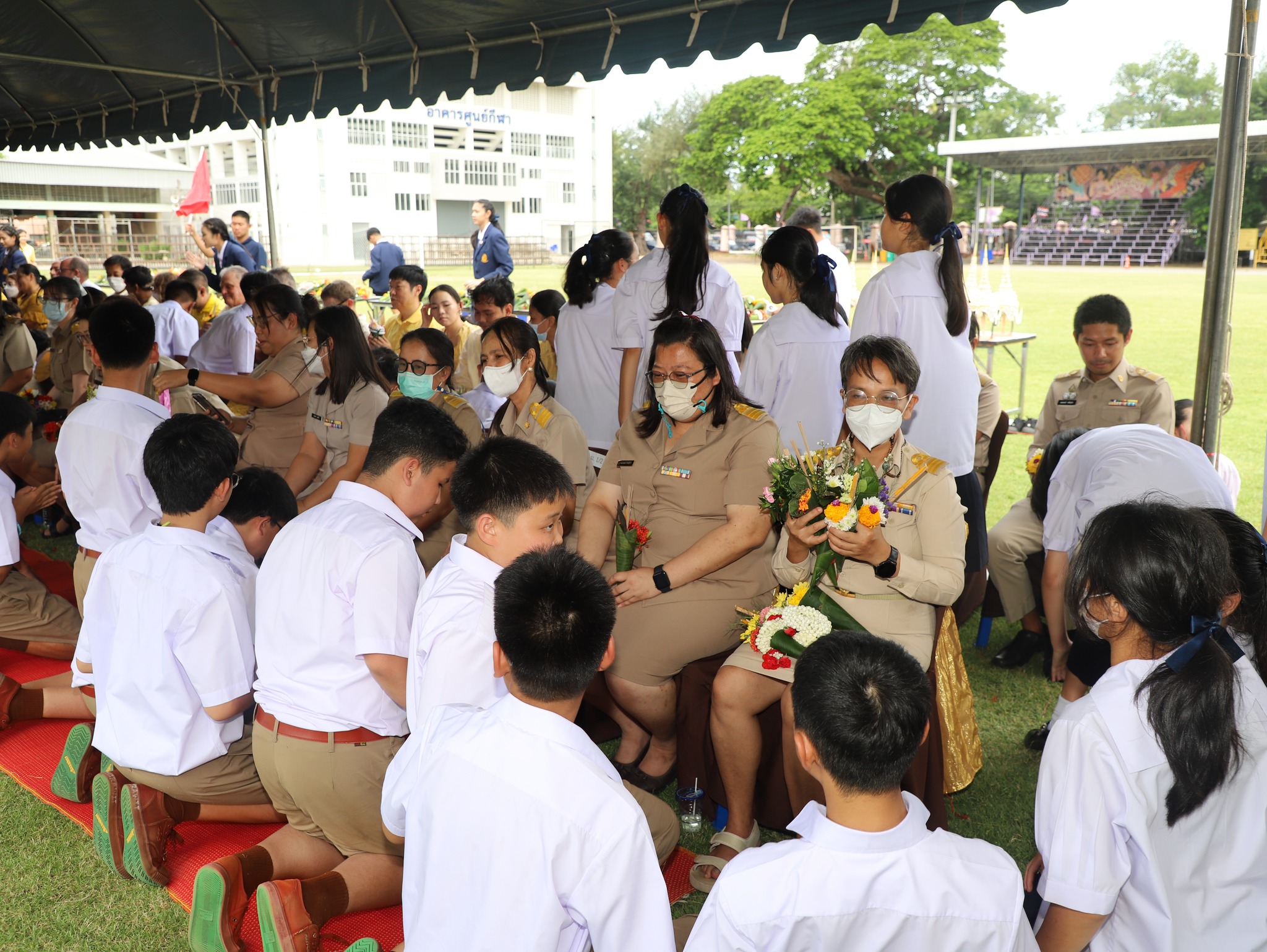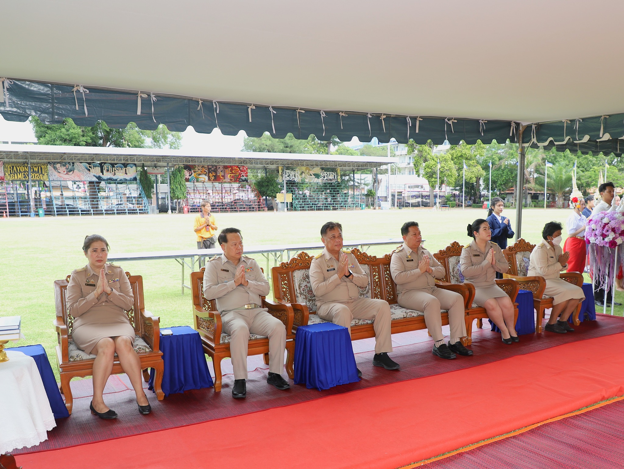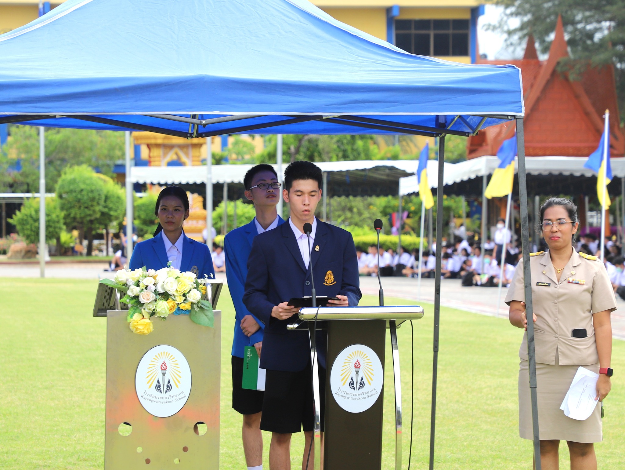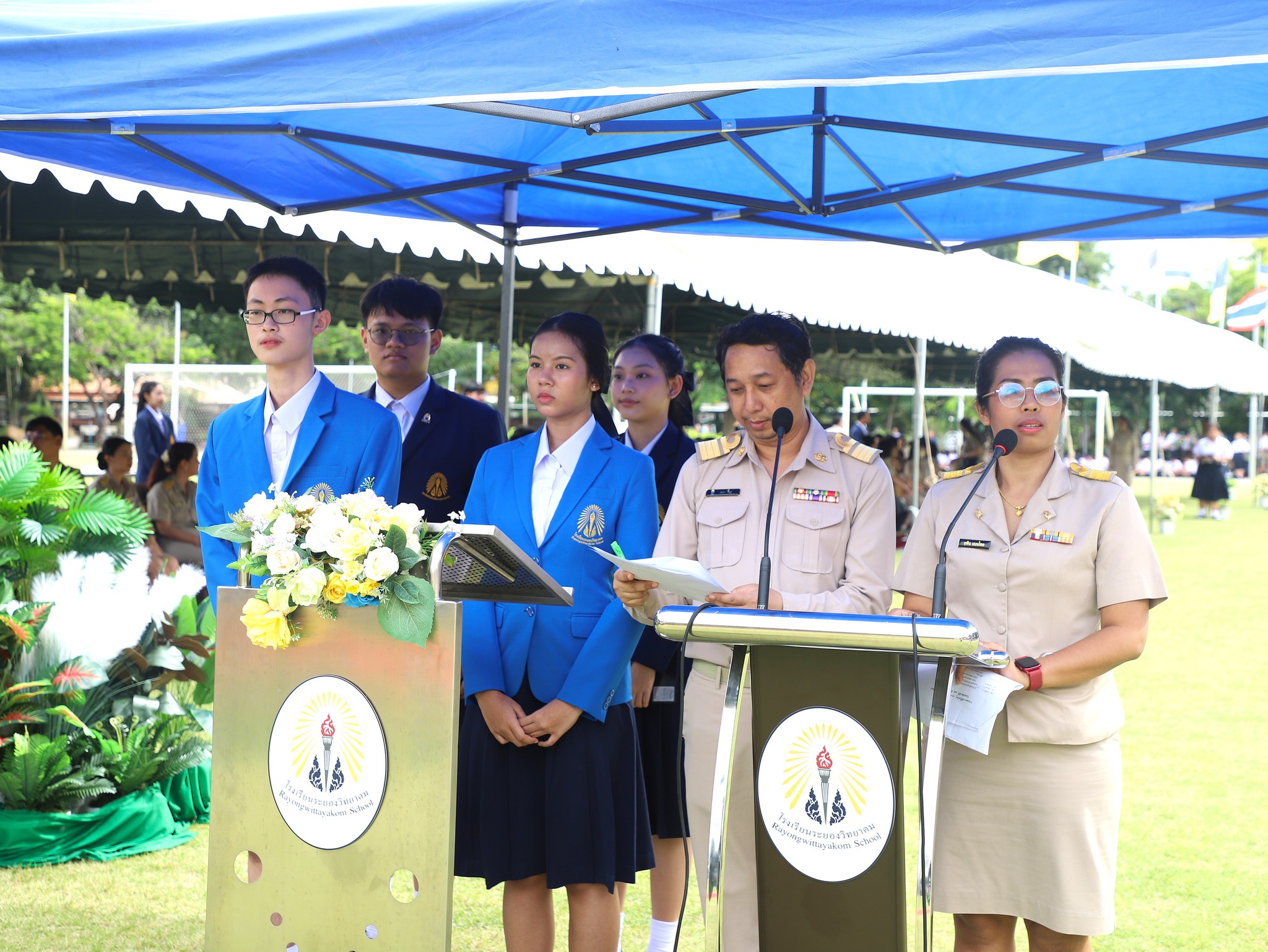 พร้อมด้วยคณะครูและนักเรียนโรงเรียนระยองวิทยาคม เข้าร่วมพิธีอย่างพร้อมเพรียงกัน ณ สนามกีฬาโรงเรียนระยองวิทยาคม