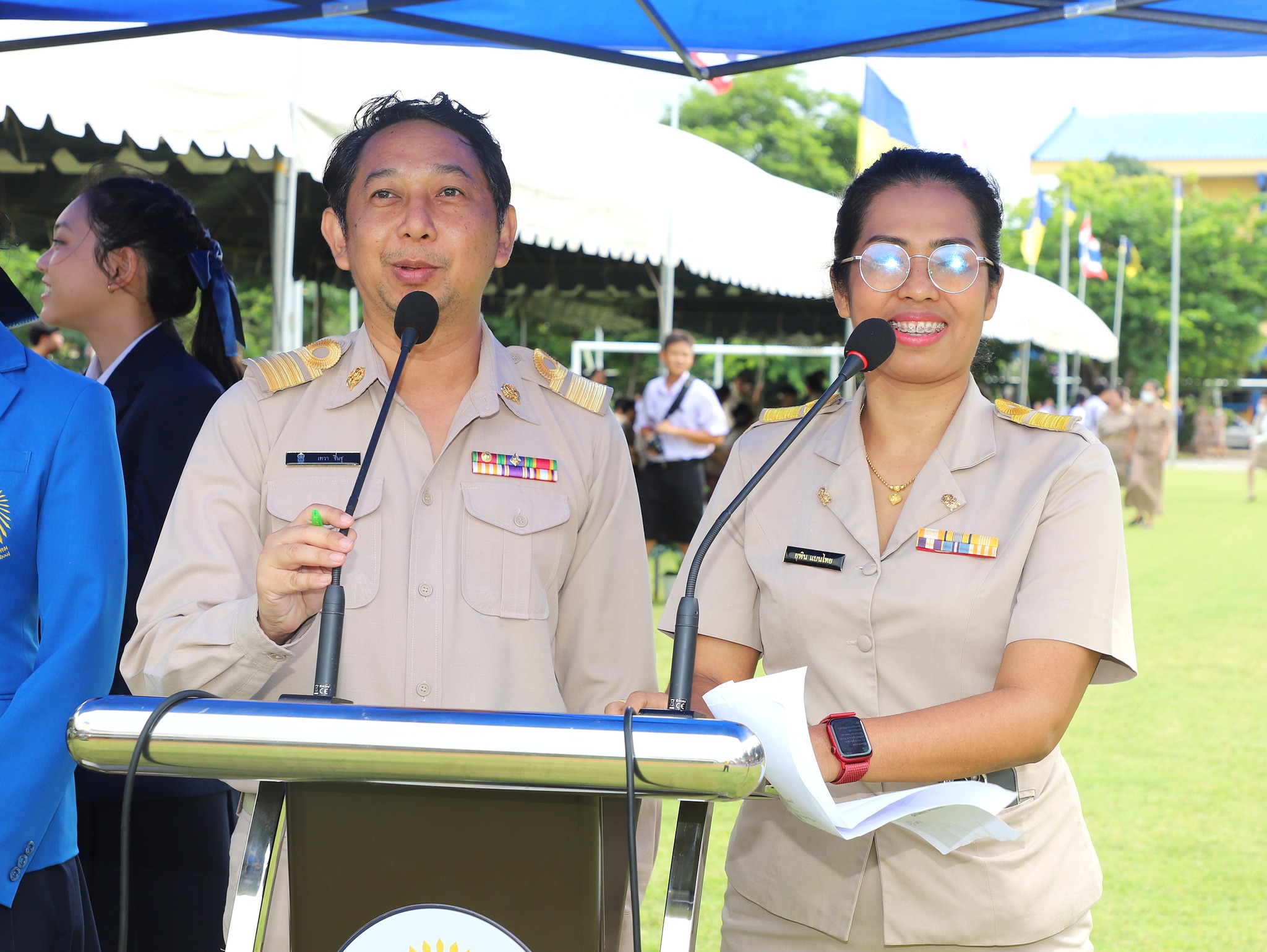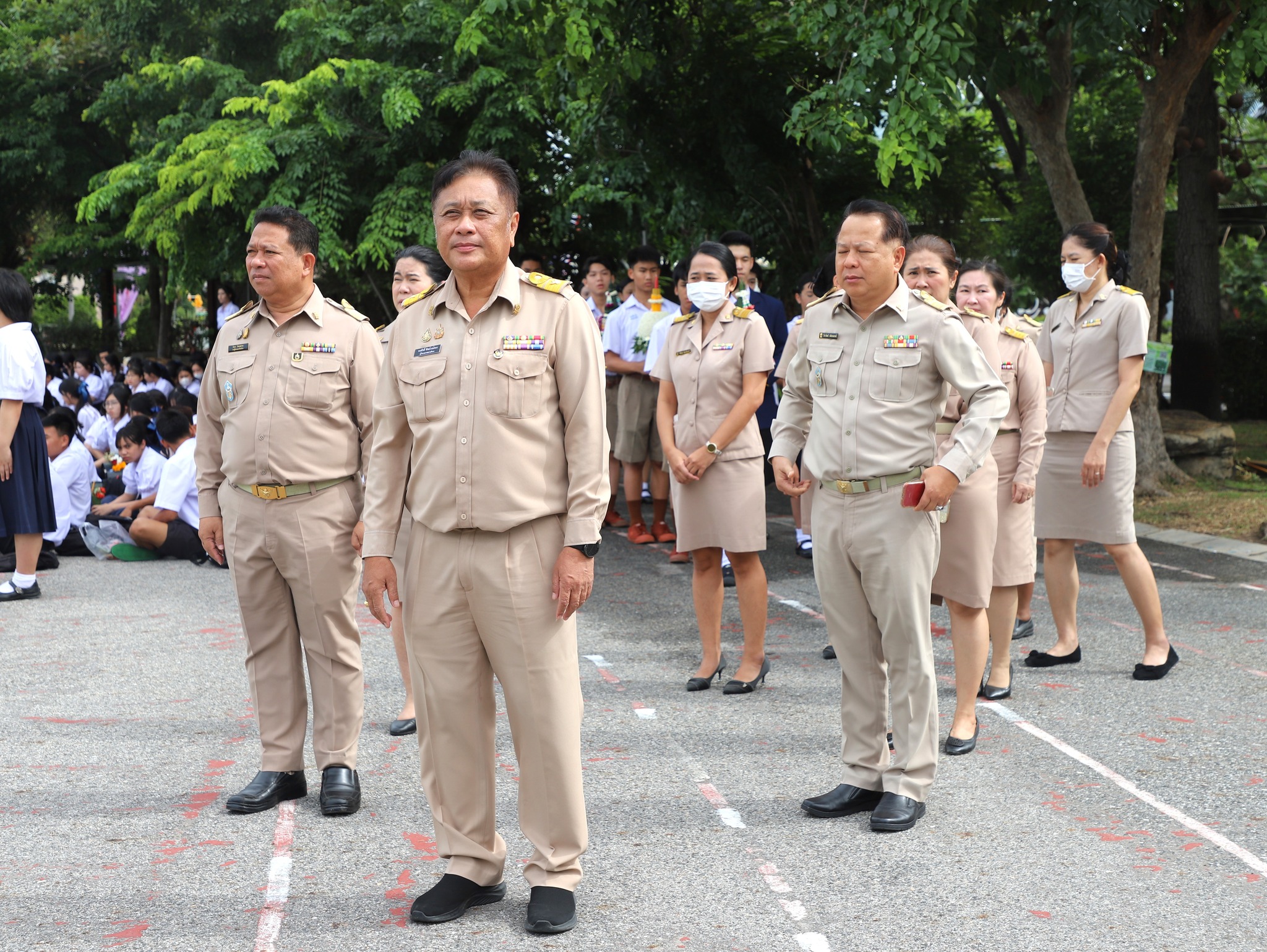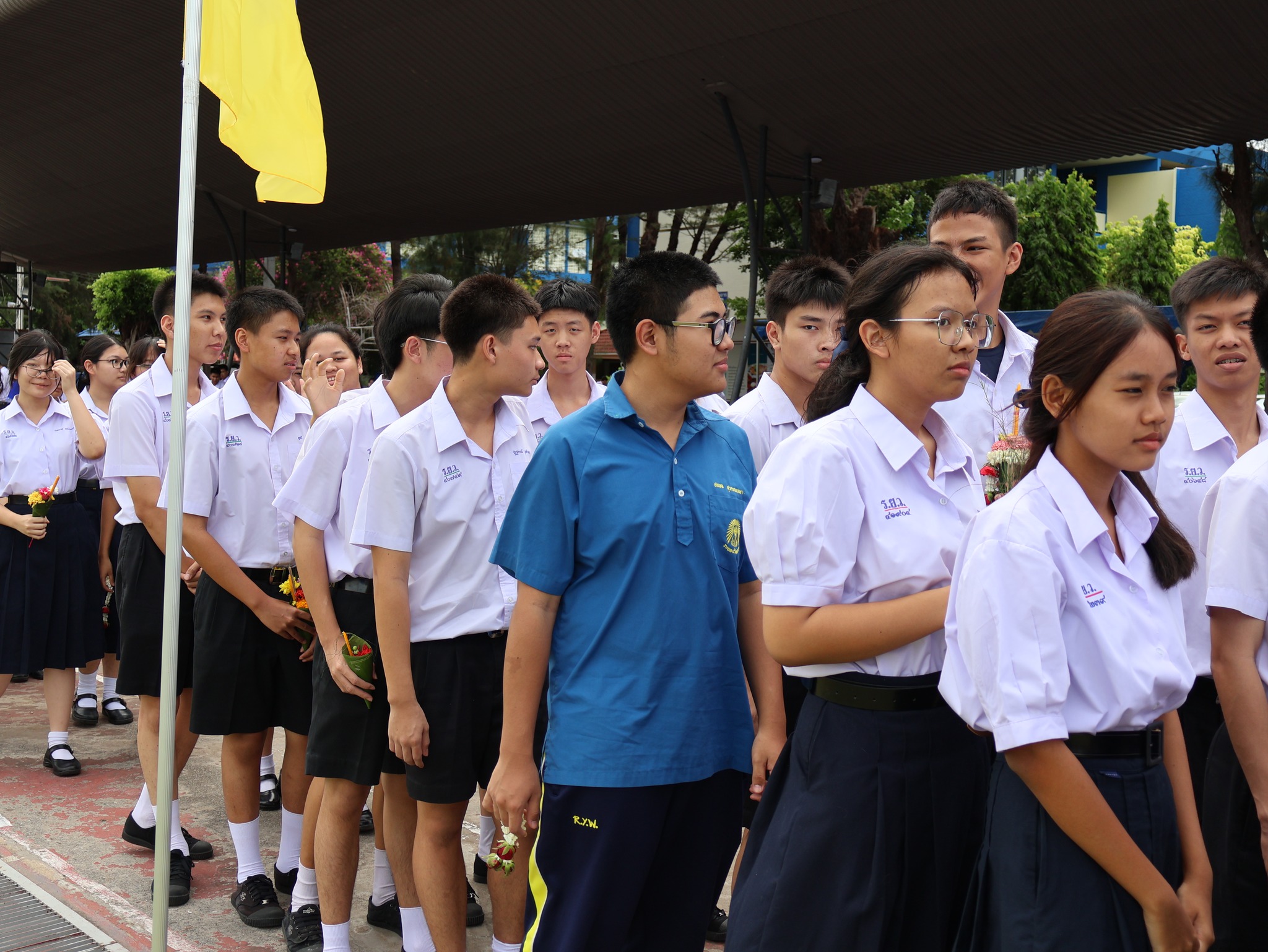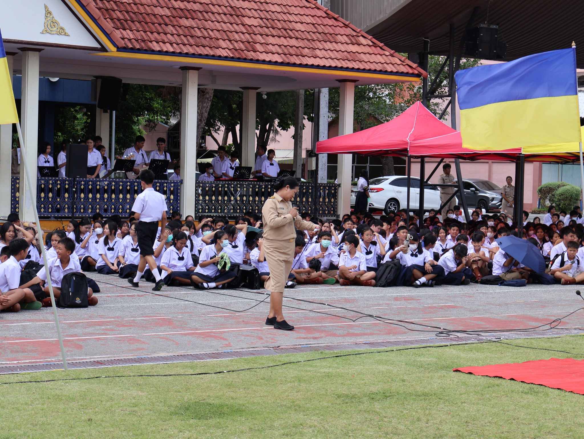 พร้อมด้วยคณะครูและนักเรียนโรงเรียนระยองวิทยาคม เข้าร่วมพิธีอย่างพร้อมเพรียงกัน ณ สนามกีฬาโรงเรียนระยองวิทยาคม