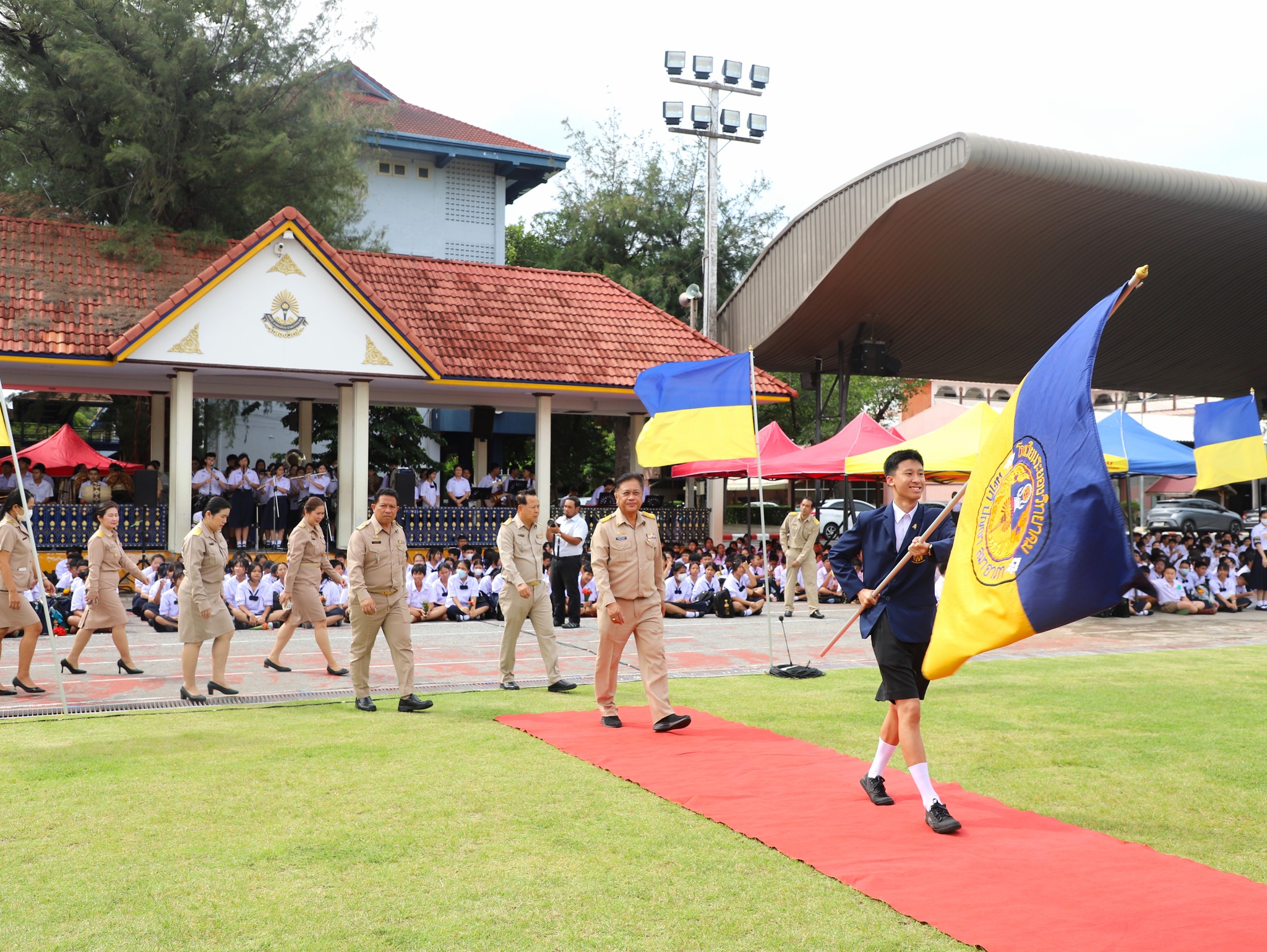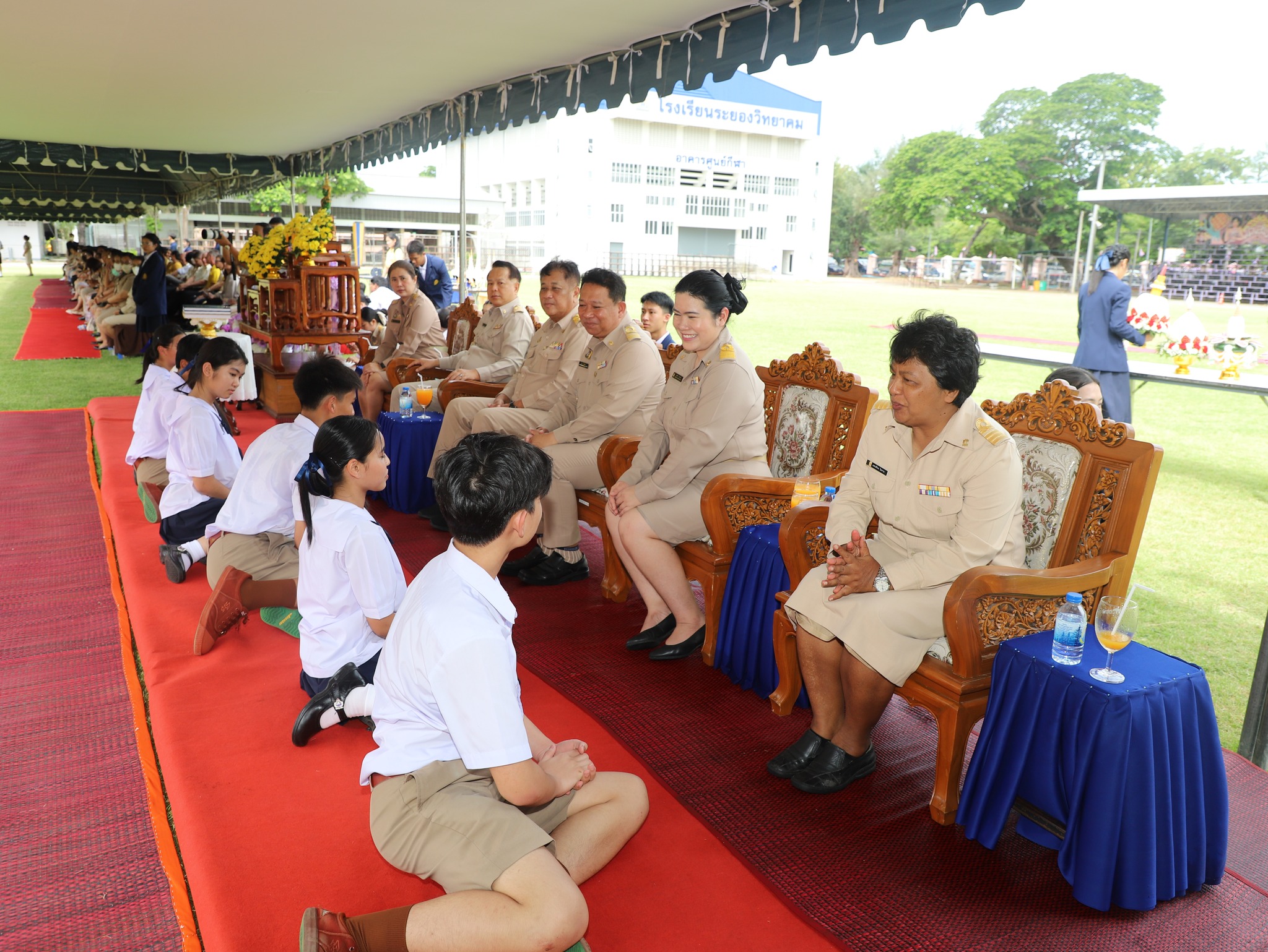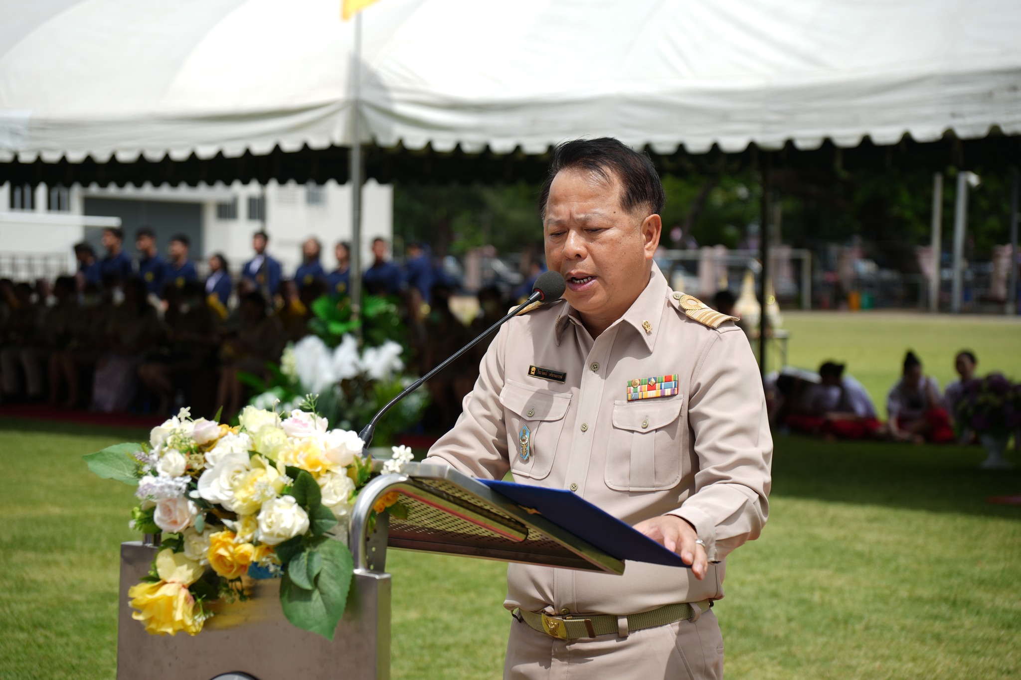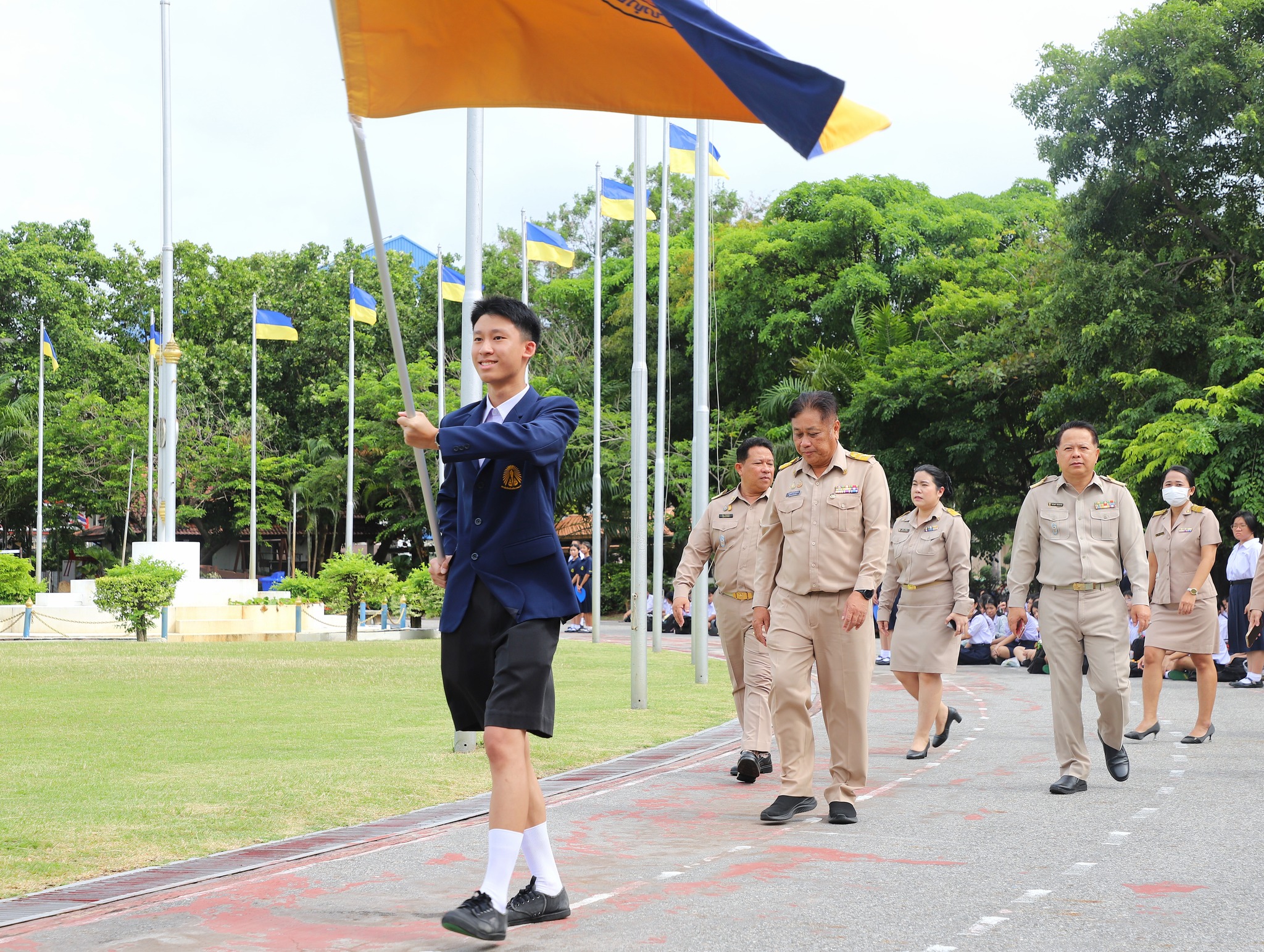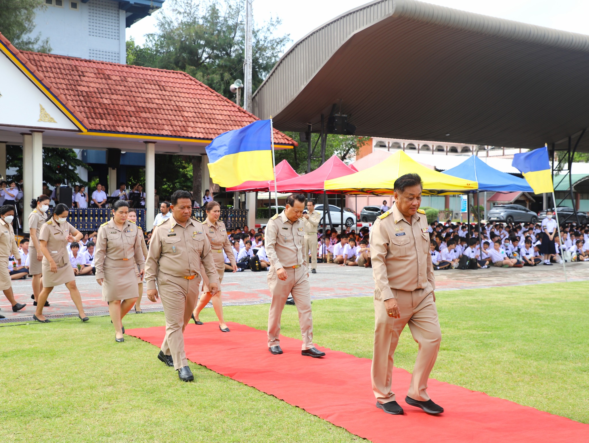 พร้อมด้วยคณะครูและนักเรียนโรงเรียนระยองวิทยาคม เข้าร่วมพิธีอย่างพร้อมเพรียงกัน ณ สนามกีฬาโรงเรียนระยองวิทยาคม