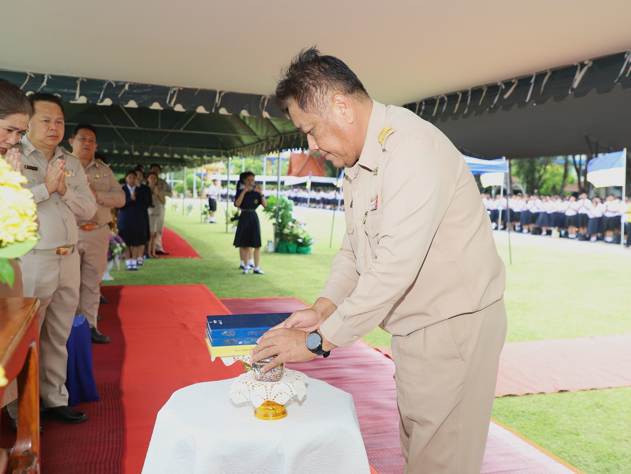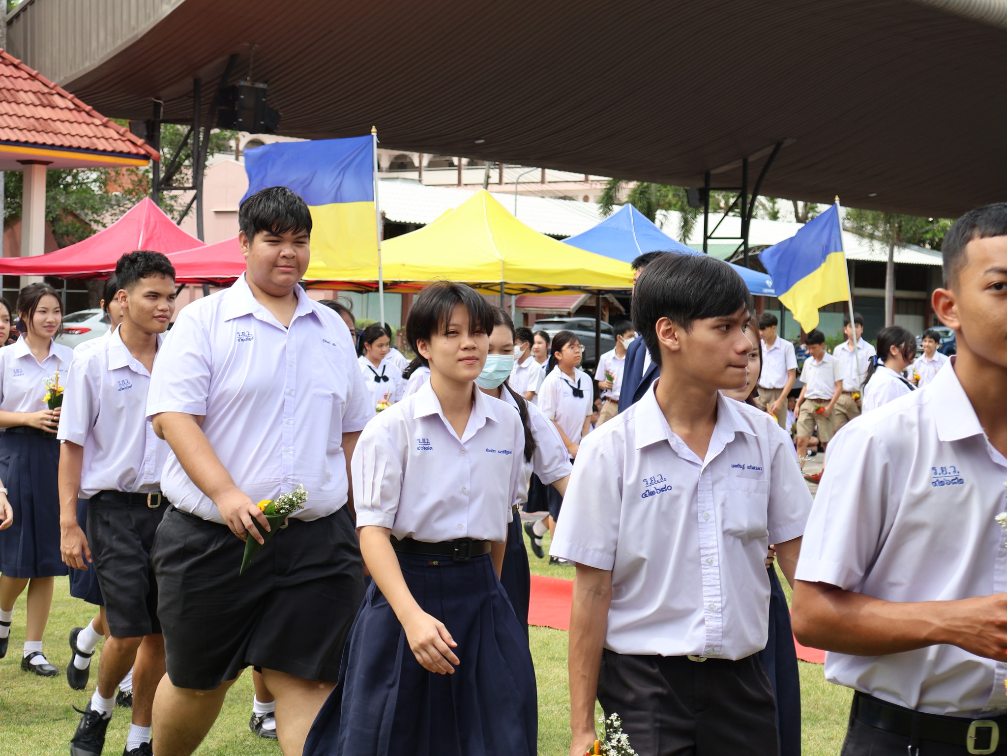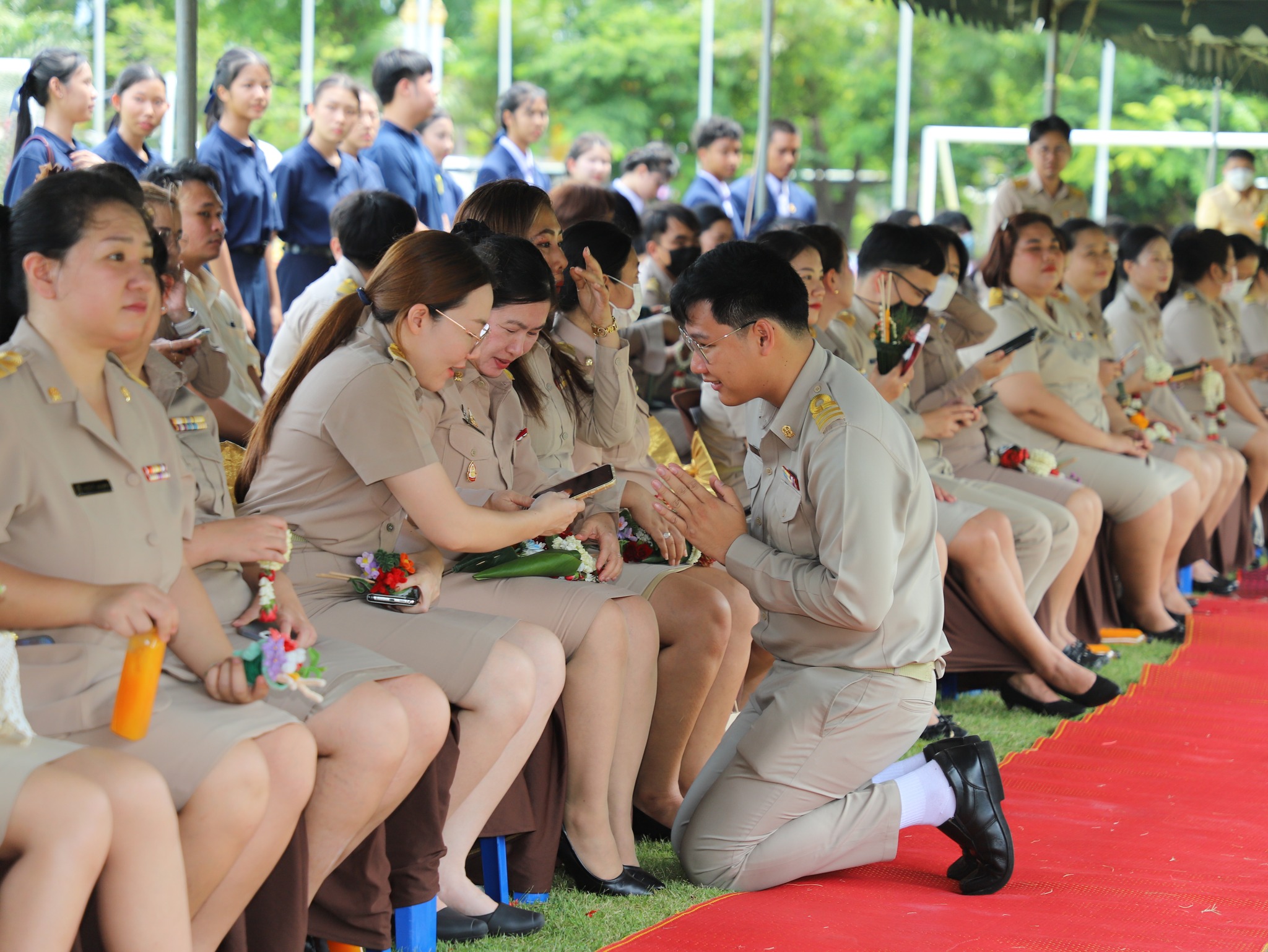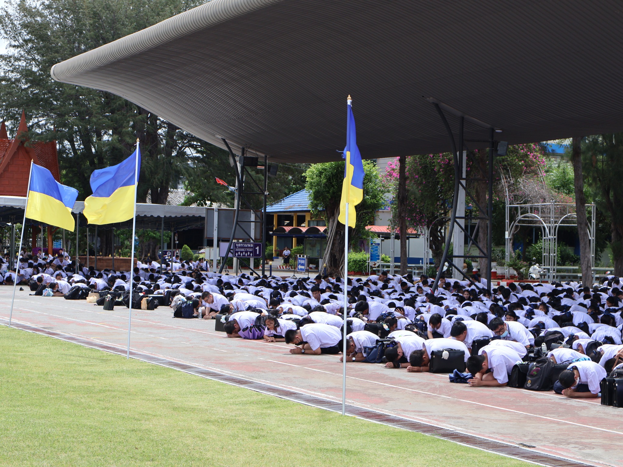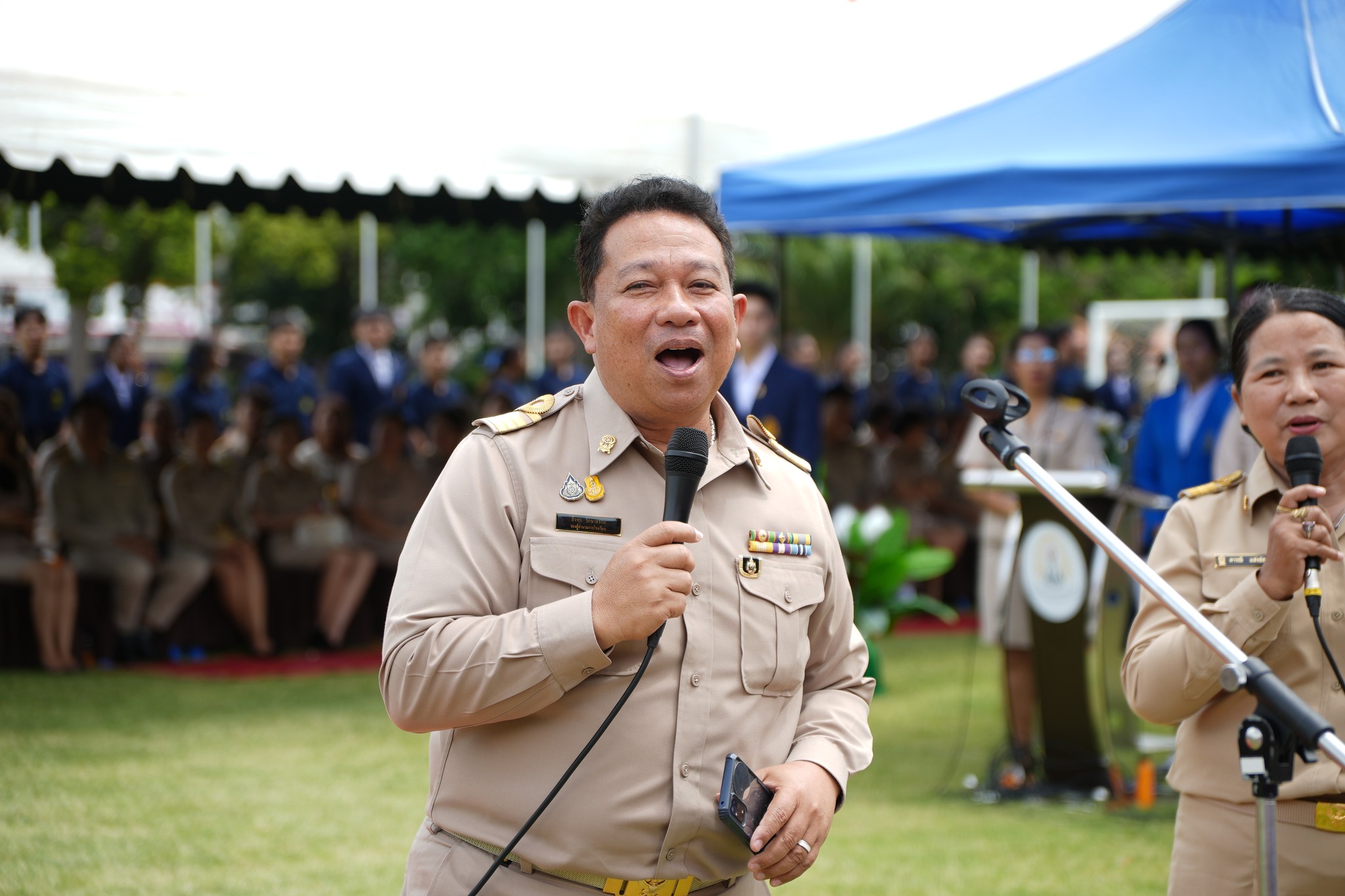 พร้อมด้วยคณะครูและนักเรียนโรงเรียนระยองวิทยาคม เข้าร่วมพิธีอย่างพร้อมเพรียงกัน ณ สนามกีฬาโรงเรียนระยองวิทยาคม