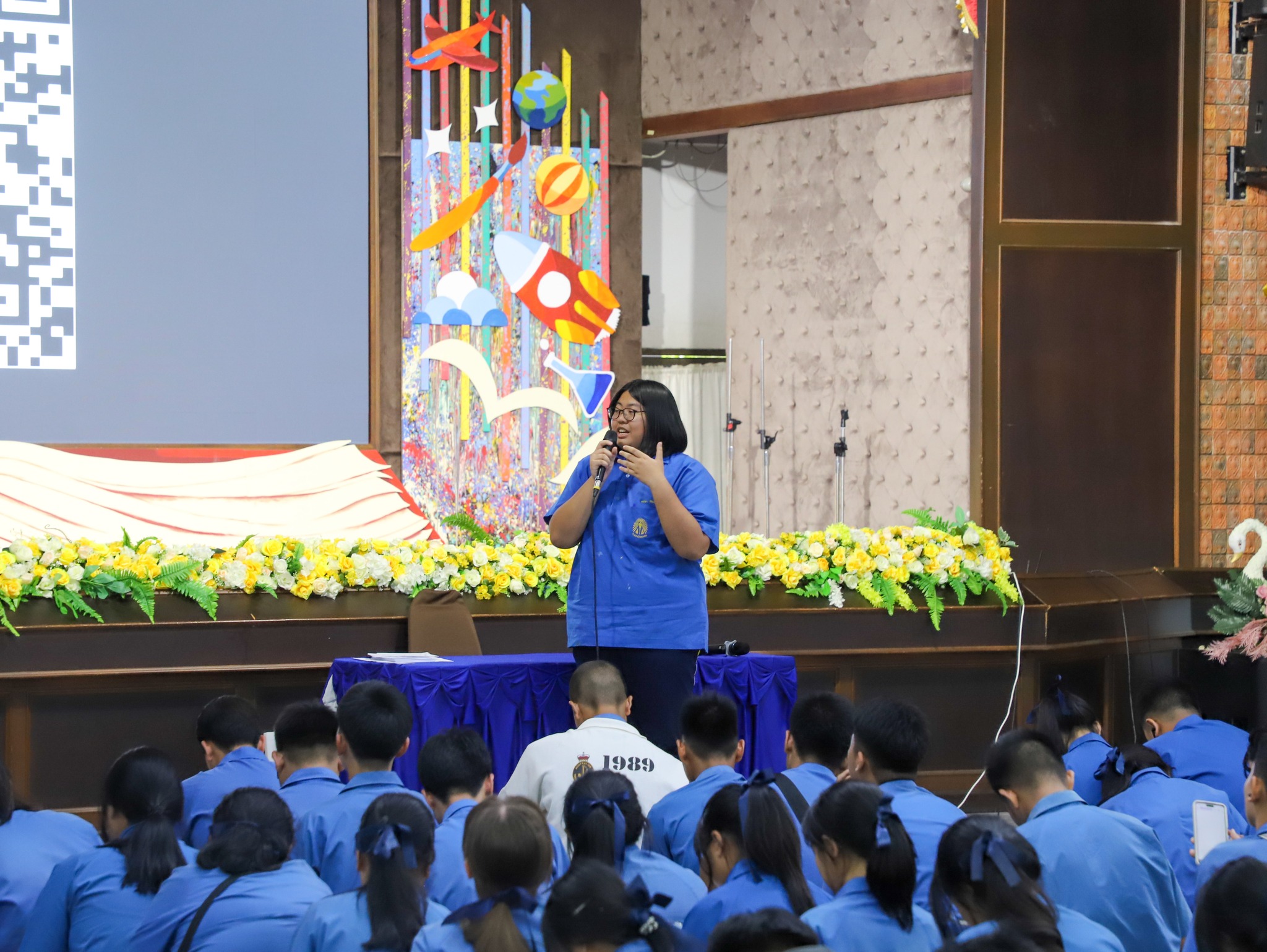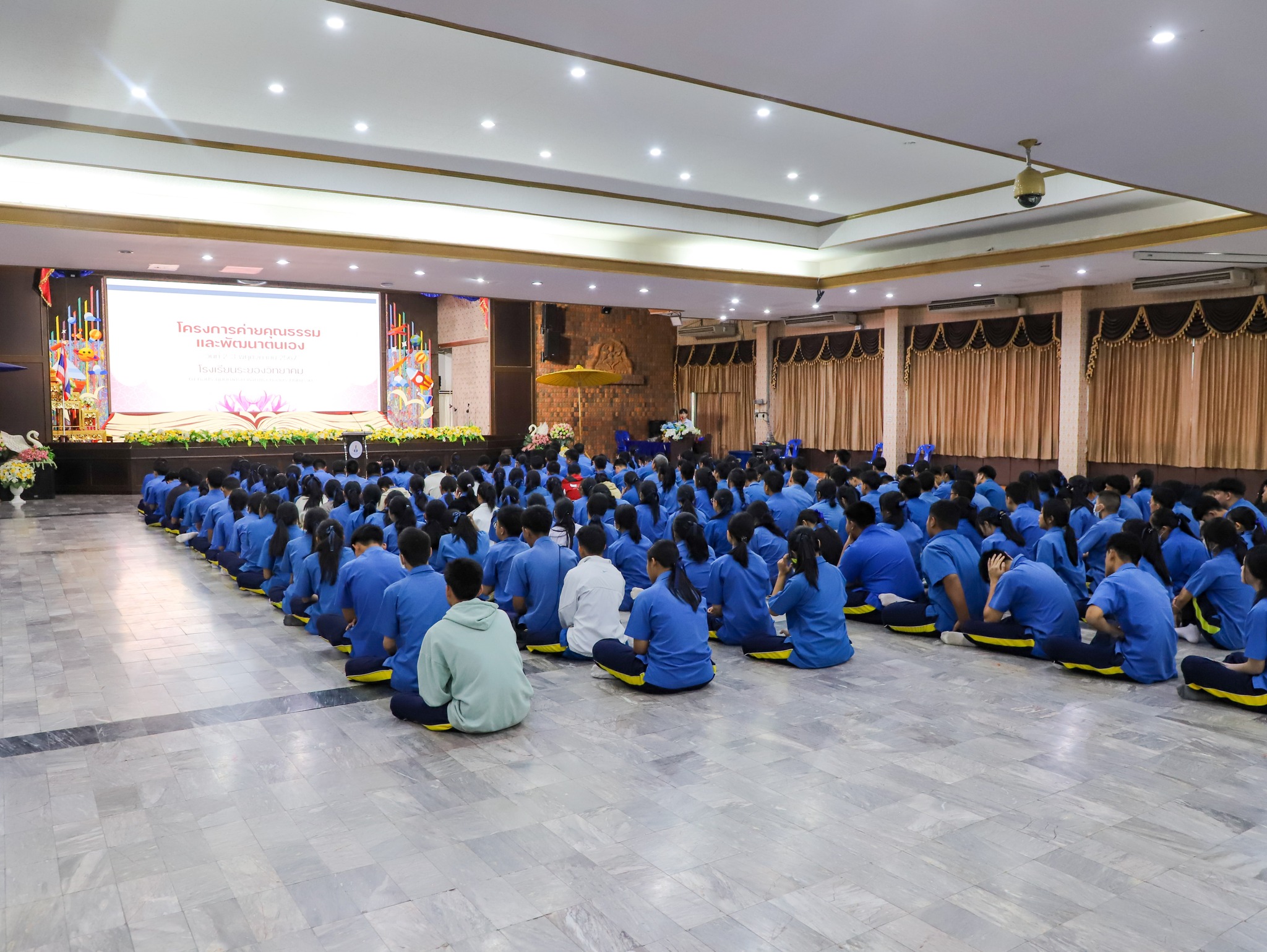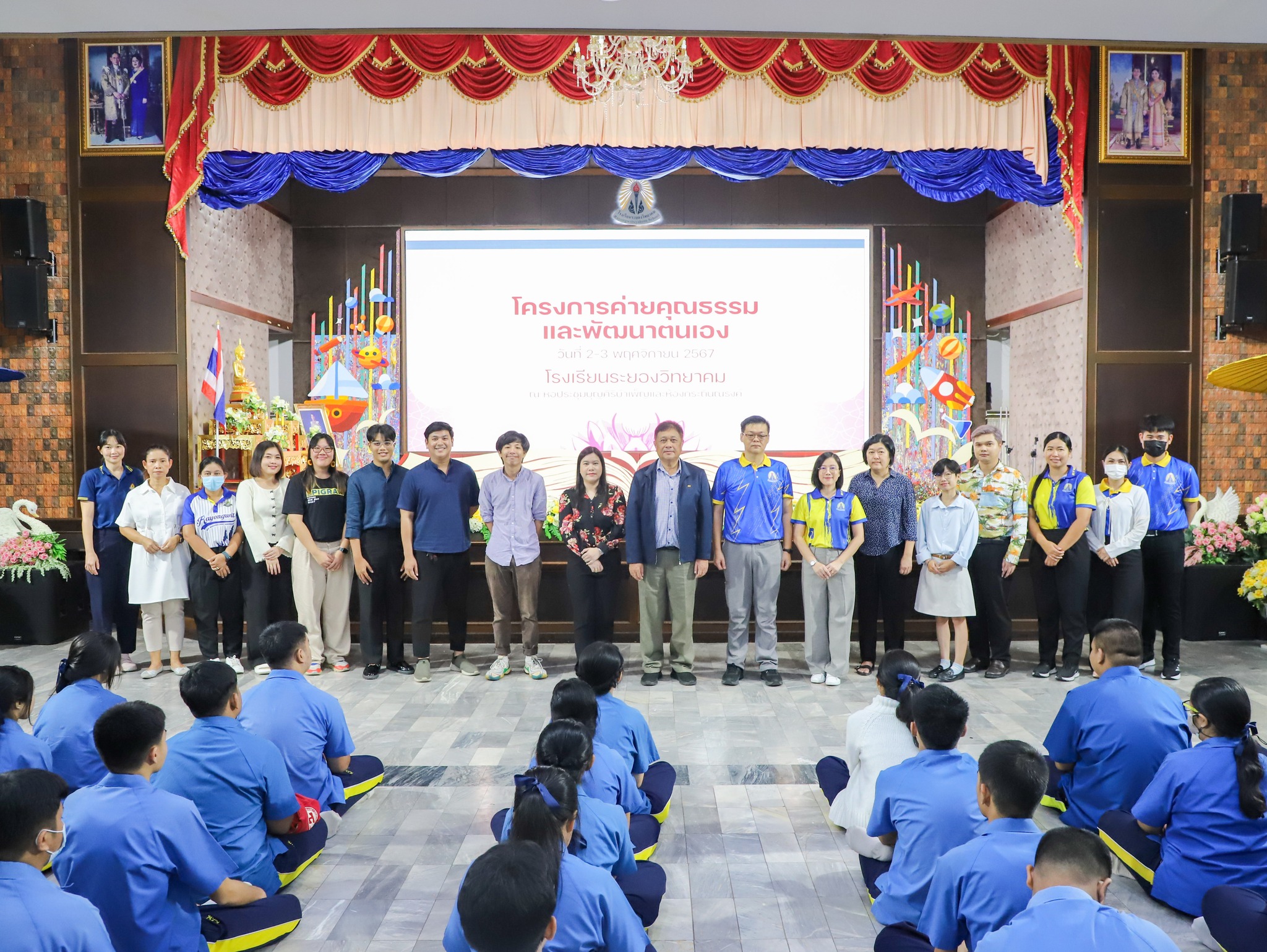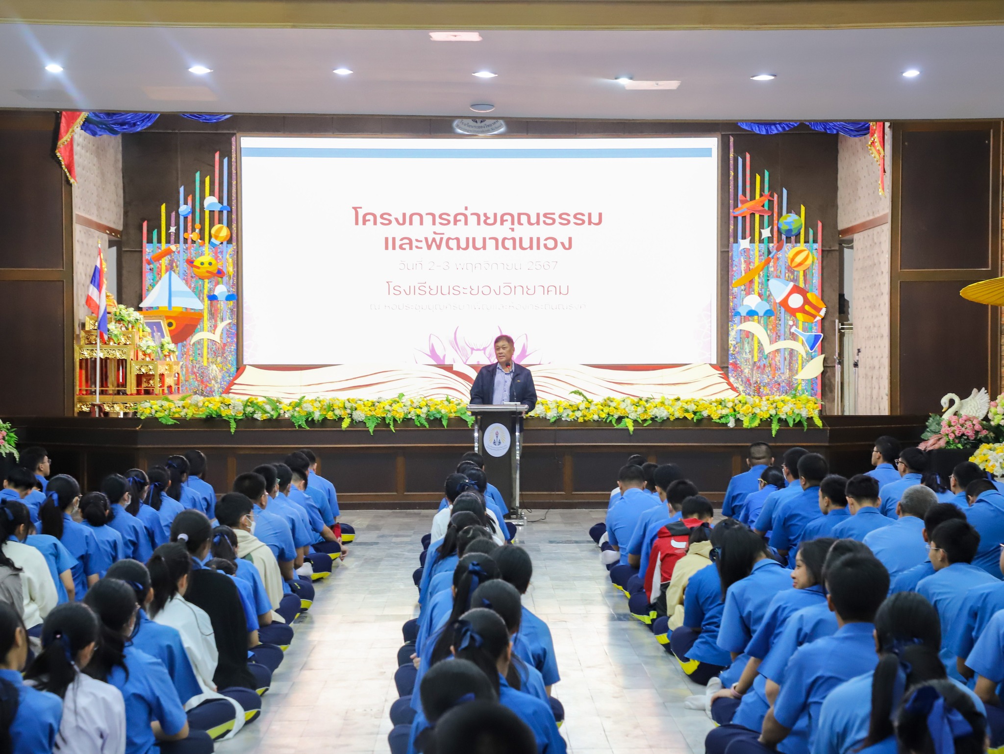 คณะครู บุคลากรทางการศึกษา และนักเรียนชั้นมัธยมศึกษาปีที่ 5 โรงเรียนระยองวิทยาคม ณ หอประชุมบุญศิริบำเพ็ญ โรงเรียนระยองวิทยาคม