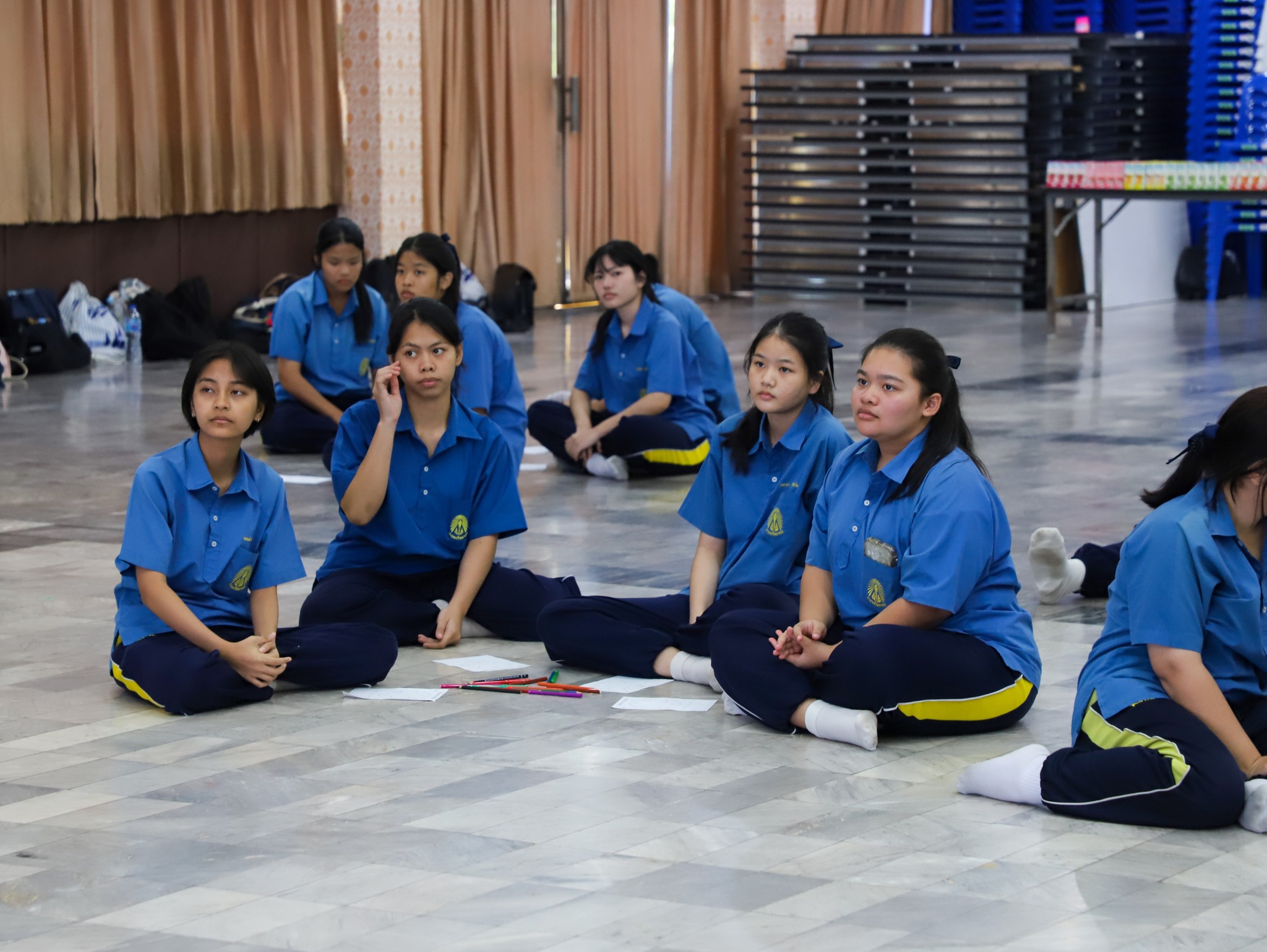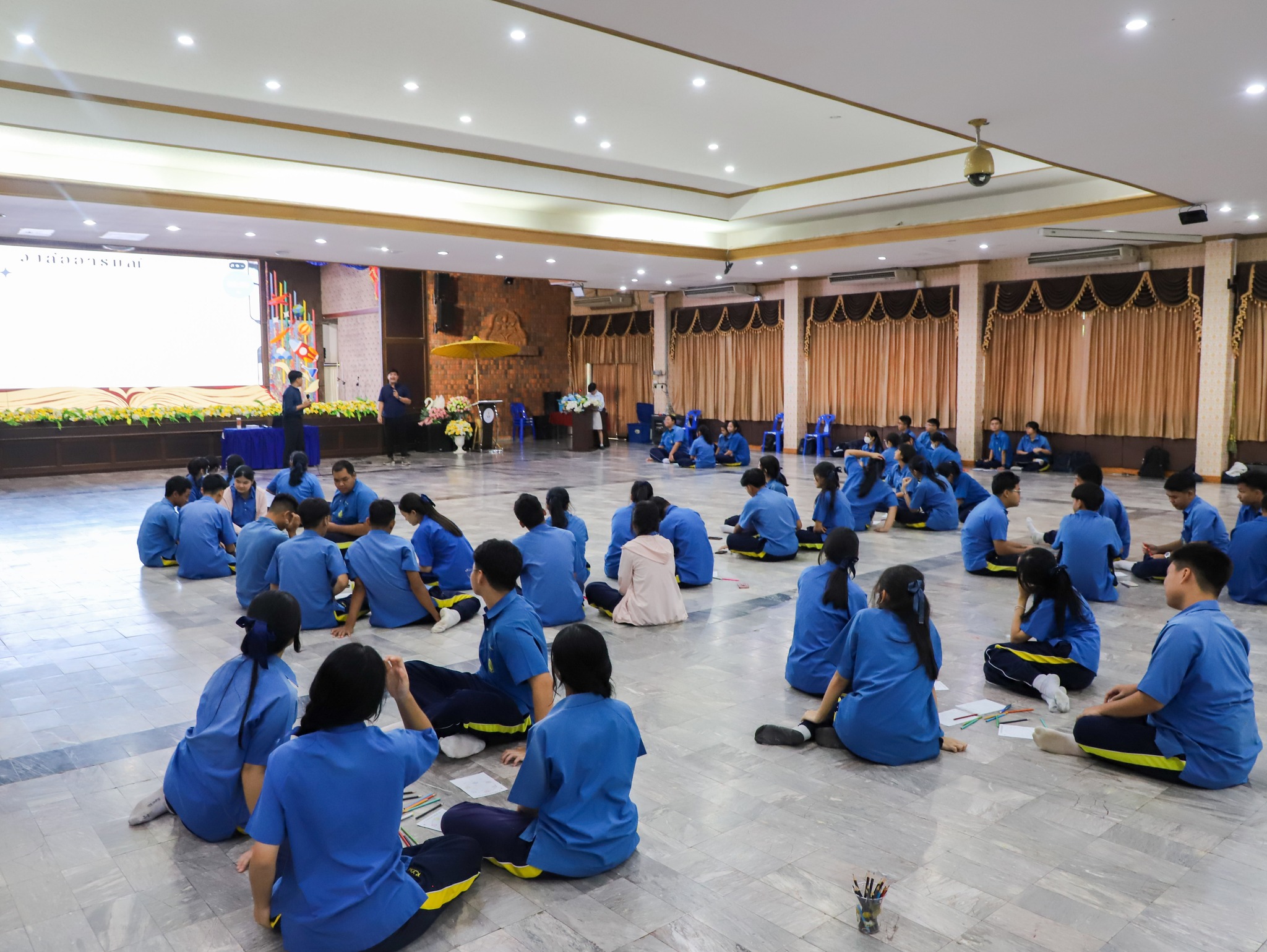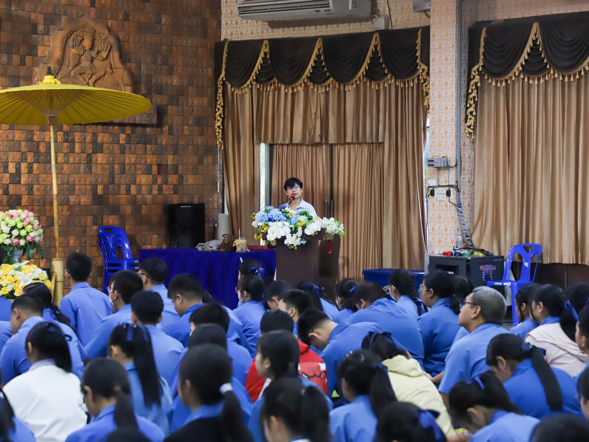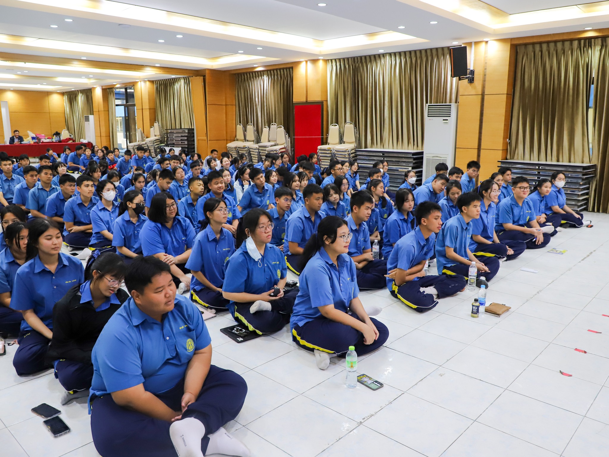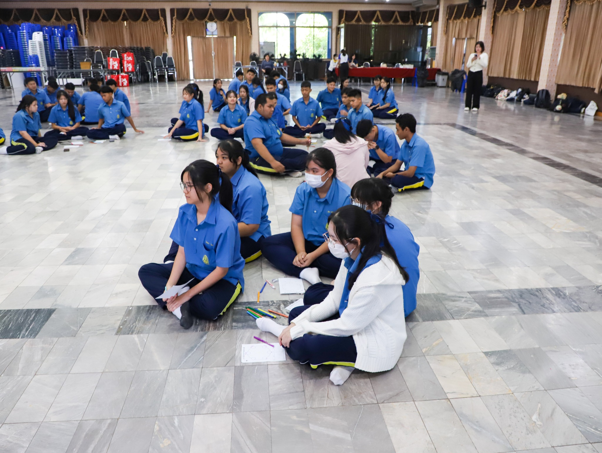 คณะครู บุคลากรทางการศึกษา และนักเรียนชั้นมัธยมศึกษาปีที่ 5 โรงเรียนระยองวิทยาคม ณ หอประชุมบุญศิริบำเพ็ญ โรงเรียนระยองวิทยาคม