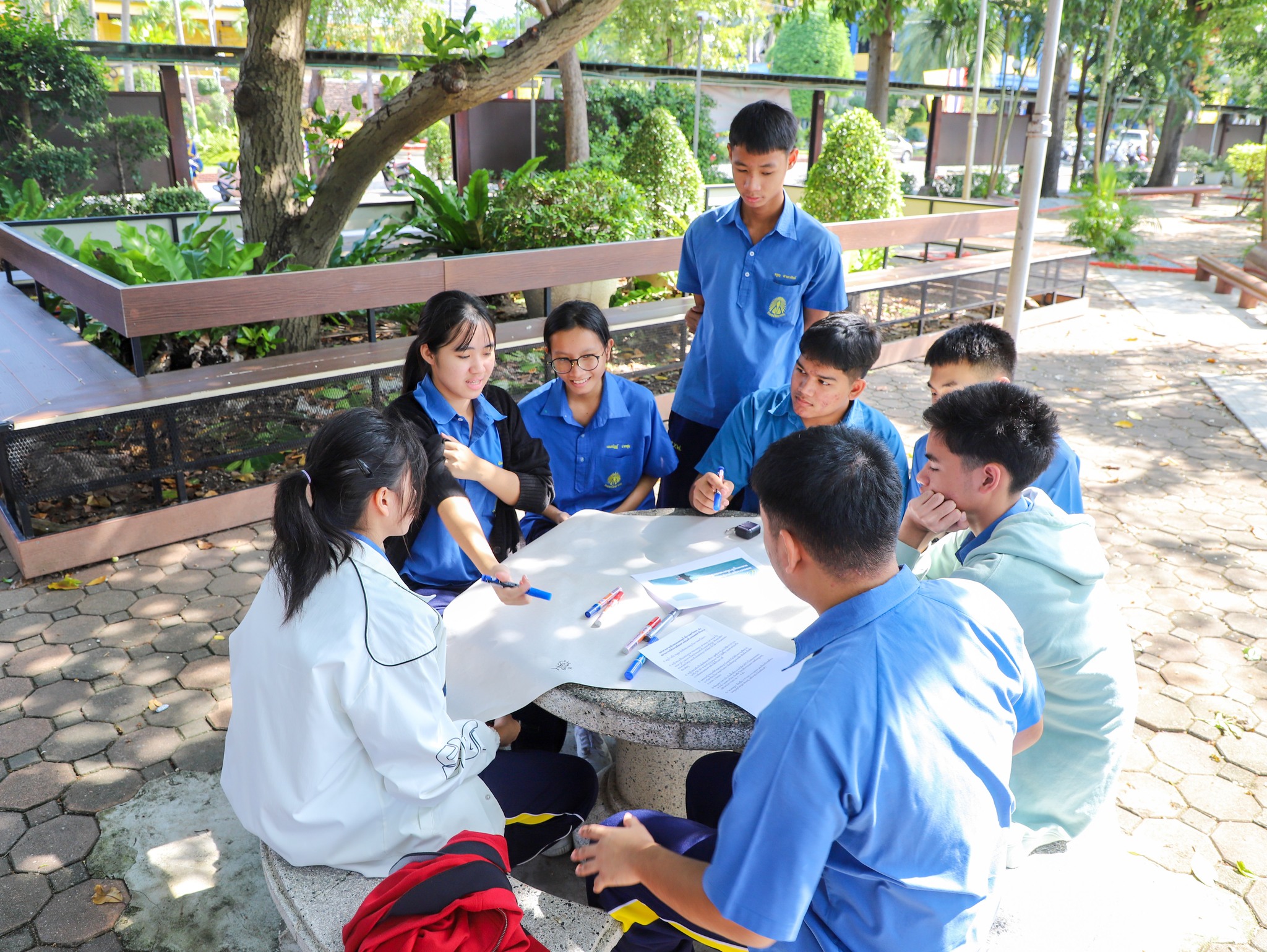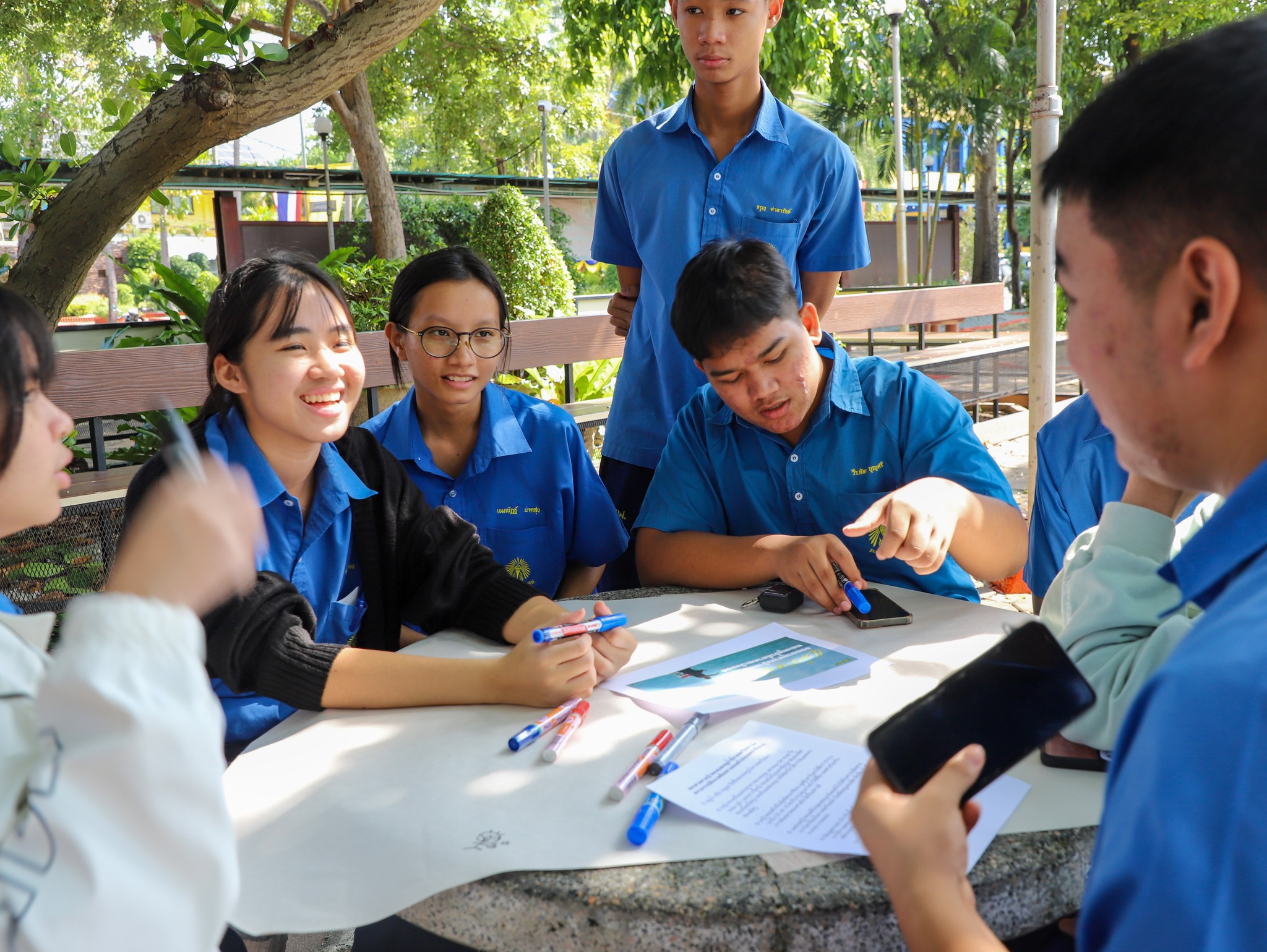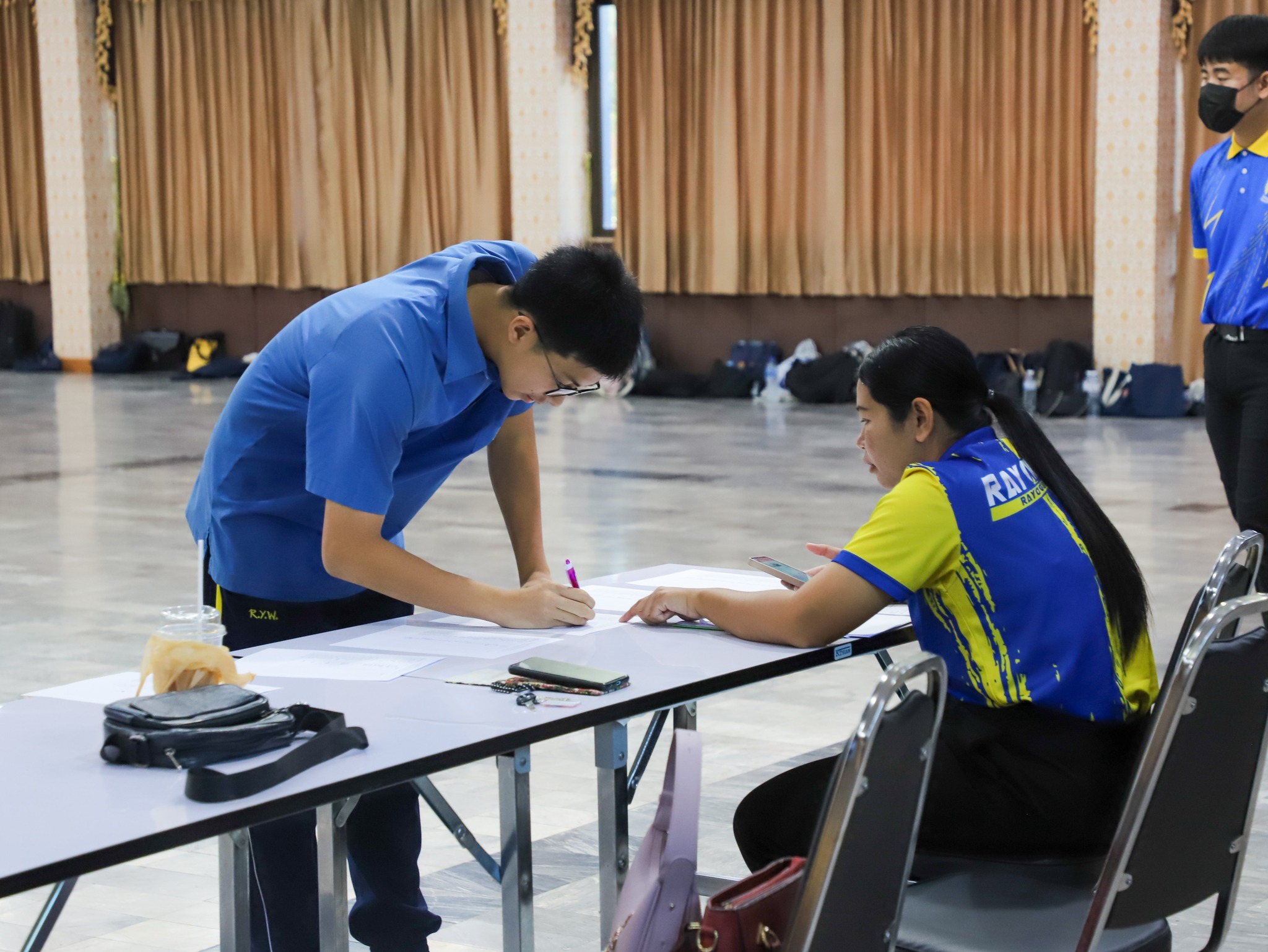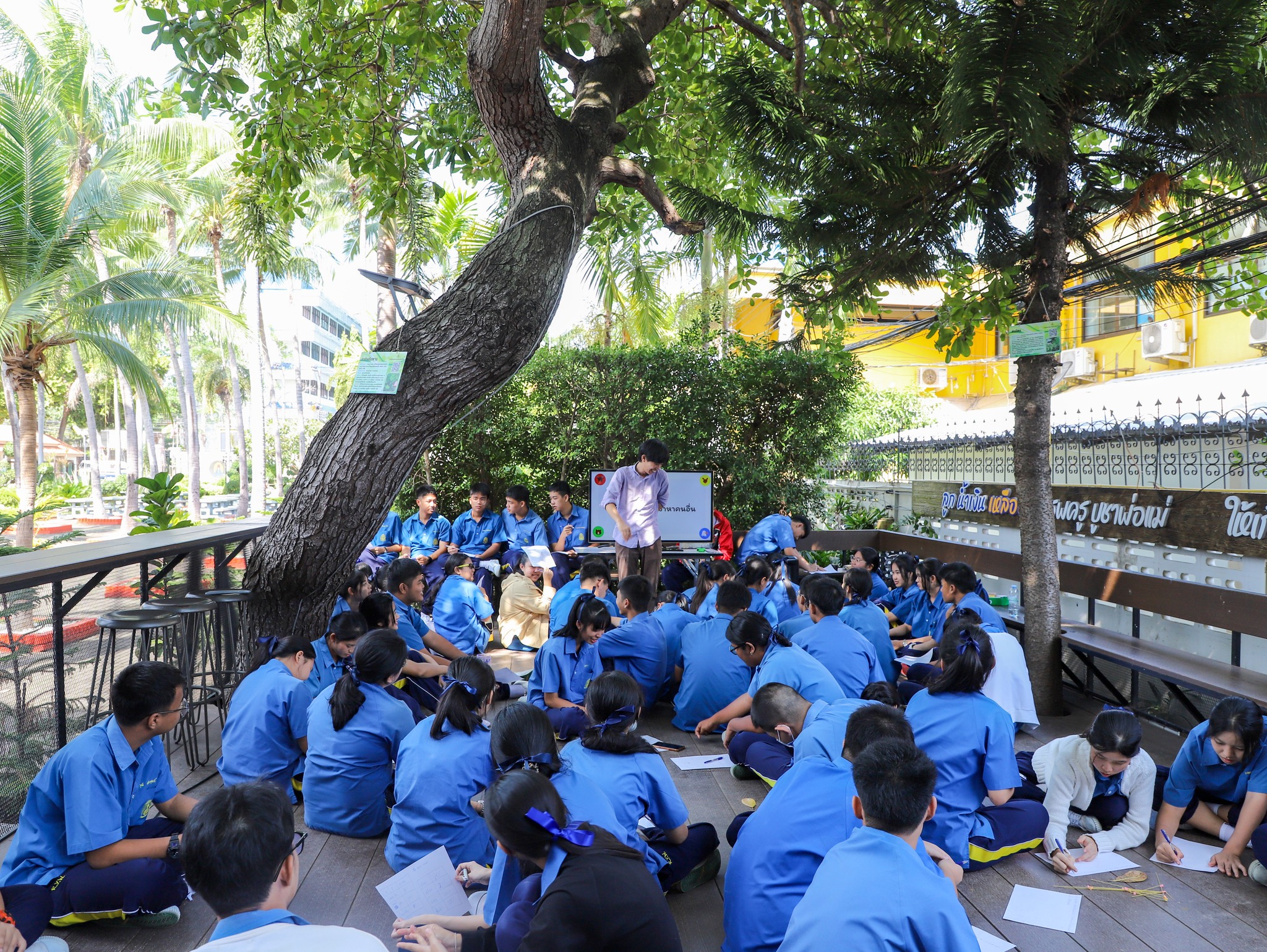 คณะครู บุคลากรทางการศึกษา และนักเรียนชั้นมัธยมศึกษาปีที่ 5 โรงเรียนระยองวิทยาคม ณ หอประชุมบุญศิริบำเพ็ญ โรงเรียนระยองวิทยาคม