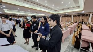 ร่วมด้วยคณะกรรมการการ คณะครู นักเรียน และบุคลากรทางการศึกษา ณ หอประชุมบุญศิริบำเพ็ญ โรงเรียนระยองวิทยาคม