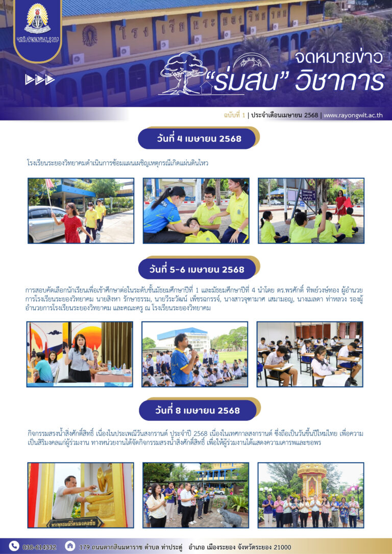 ประกาศโรงเรียนระยองวิทยาคม เรื่อง การจัดห้องเรียนและกําหนดเลขประจําตัวนักเรียนชั้นมัธยมศึกษาปีที่ 1 ปีการศึกษา 2568