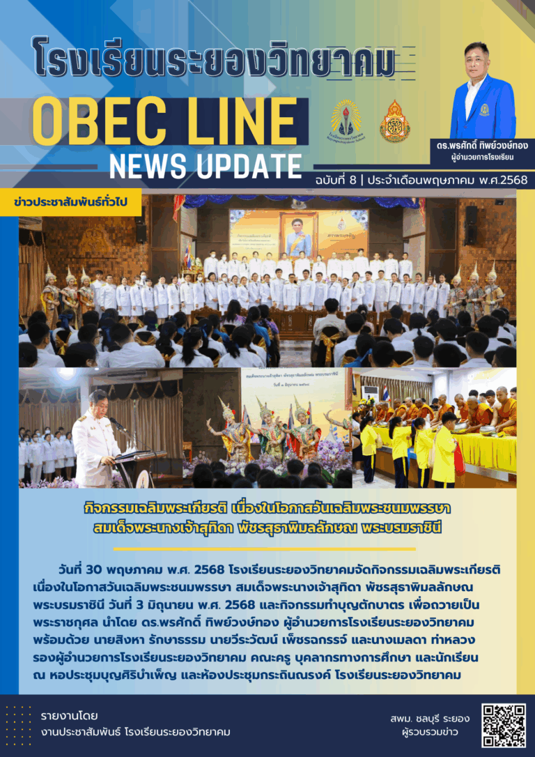 โรงเรียนระยองวิทยาคมจัดกิจกรรมเฉลิมพระเกียรติ เนื่องในโอกาสวันเฉลิมพระชนมพรรษา สมเด็จพระนางเจ้าสุทิดา พัชรสุธาพิมลวักษณ พระบรมราชินี
