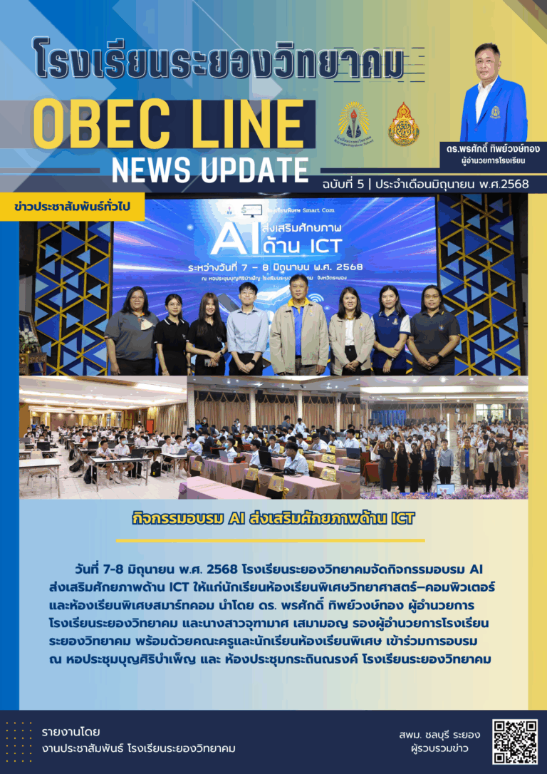โรงเรียนระยองวิทยาคมจัดกิจกรรม อบรมส่งเสริมศักยภาพด้าน ICT ให้แก่นักเรียนห้องเรียนพิเศษวิทยาศาสตร์–คอมพิวเตอร์ และห้องเรียนพิเศษสมาร์ทคอม