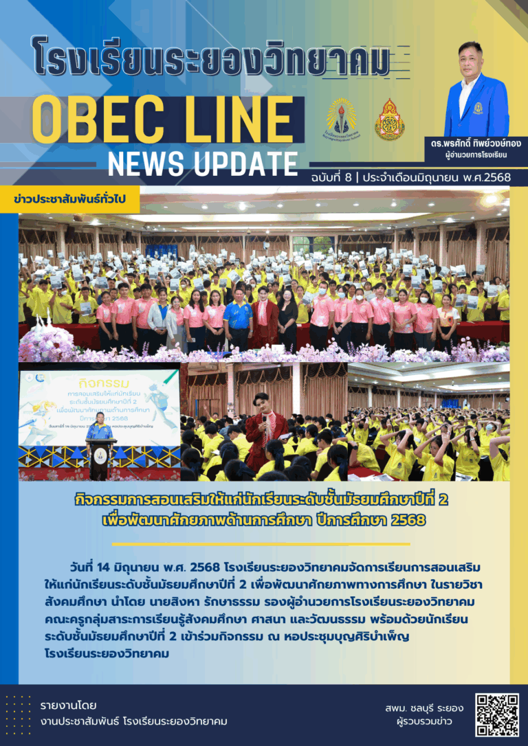 โรงเรียนระยองวิทยาคมจัดการเรียนการสอนเสริมให้แก่นักเรียนระดับชั้นมัธยมศึกษาปีที่ 2 เพื่อพัฒนาศักยภาพทางการศึกษา ในรายวิชาสังคมศึกษา