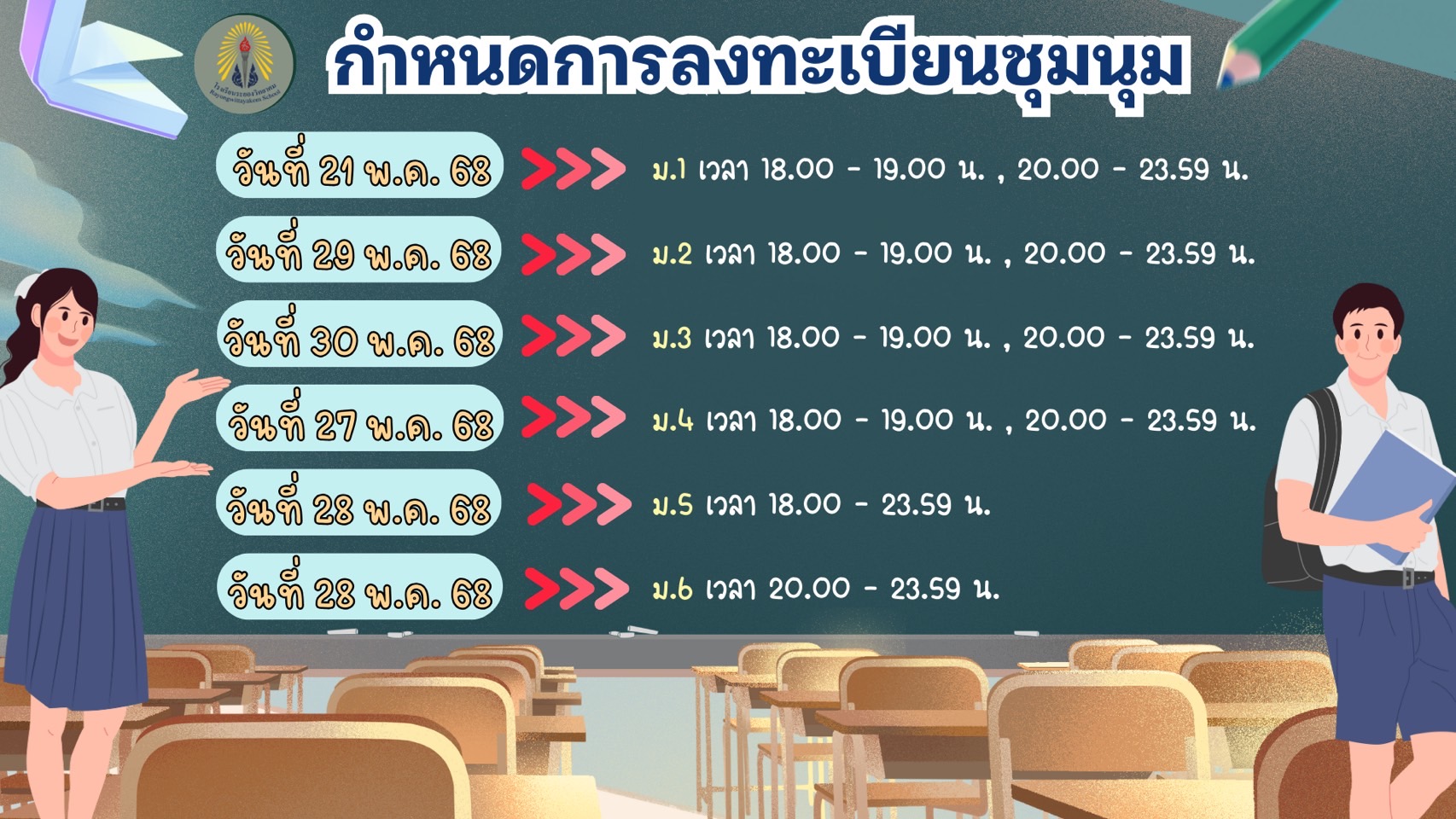 รายชื่อนักเรียนที่ลงทะเบียน