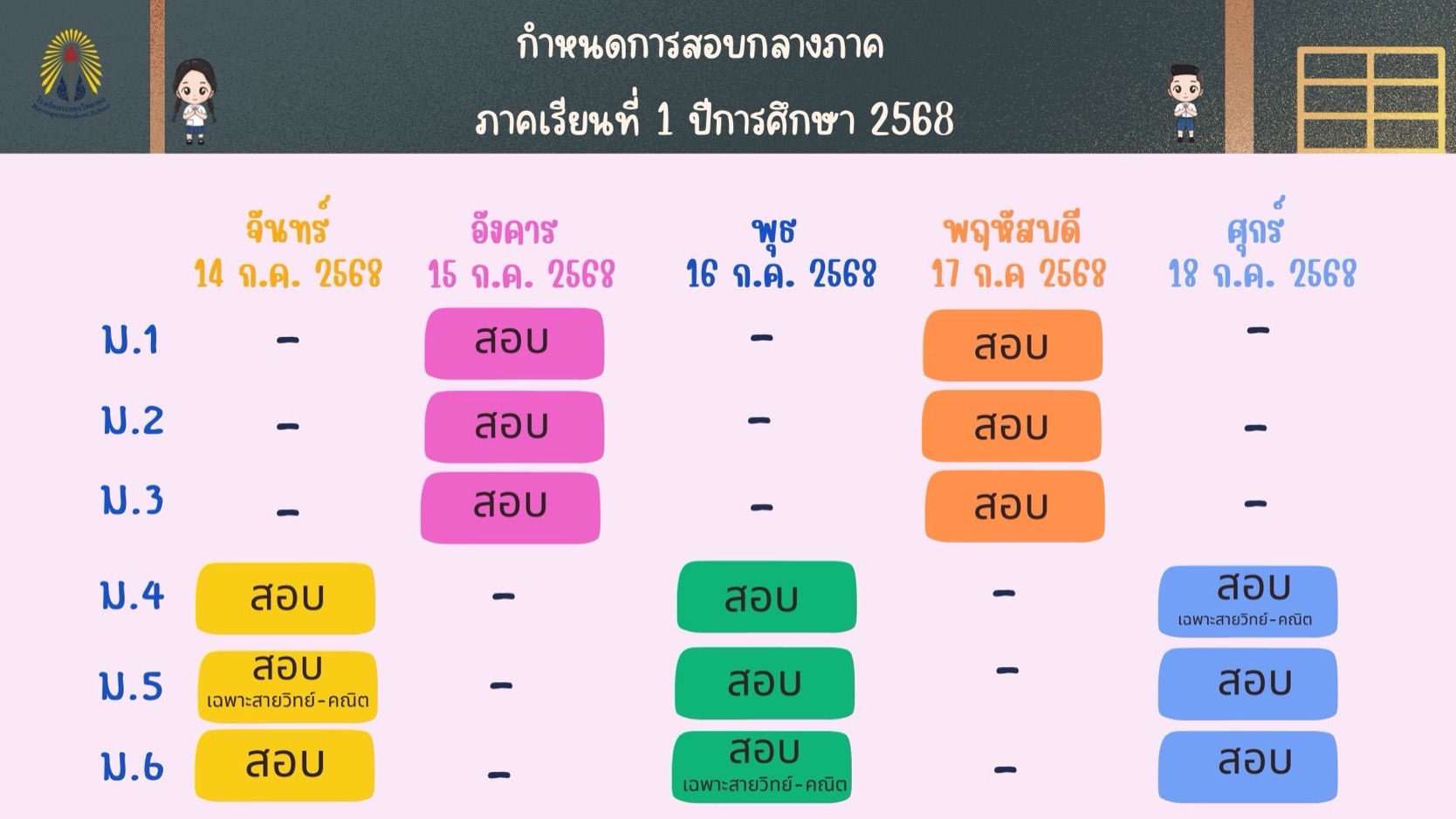 ตารางเรียน O-net 68