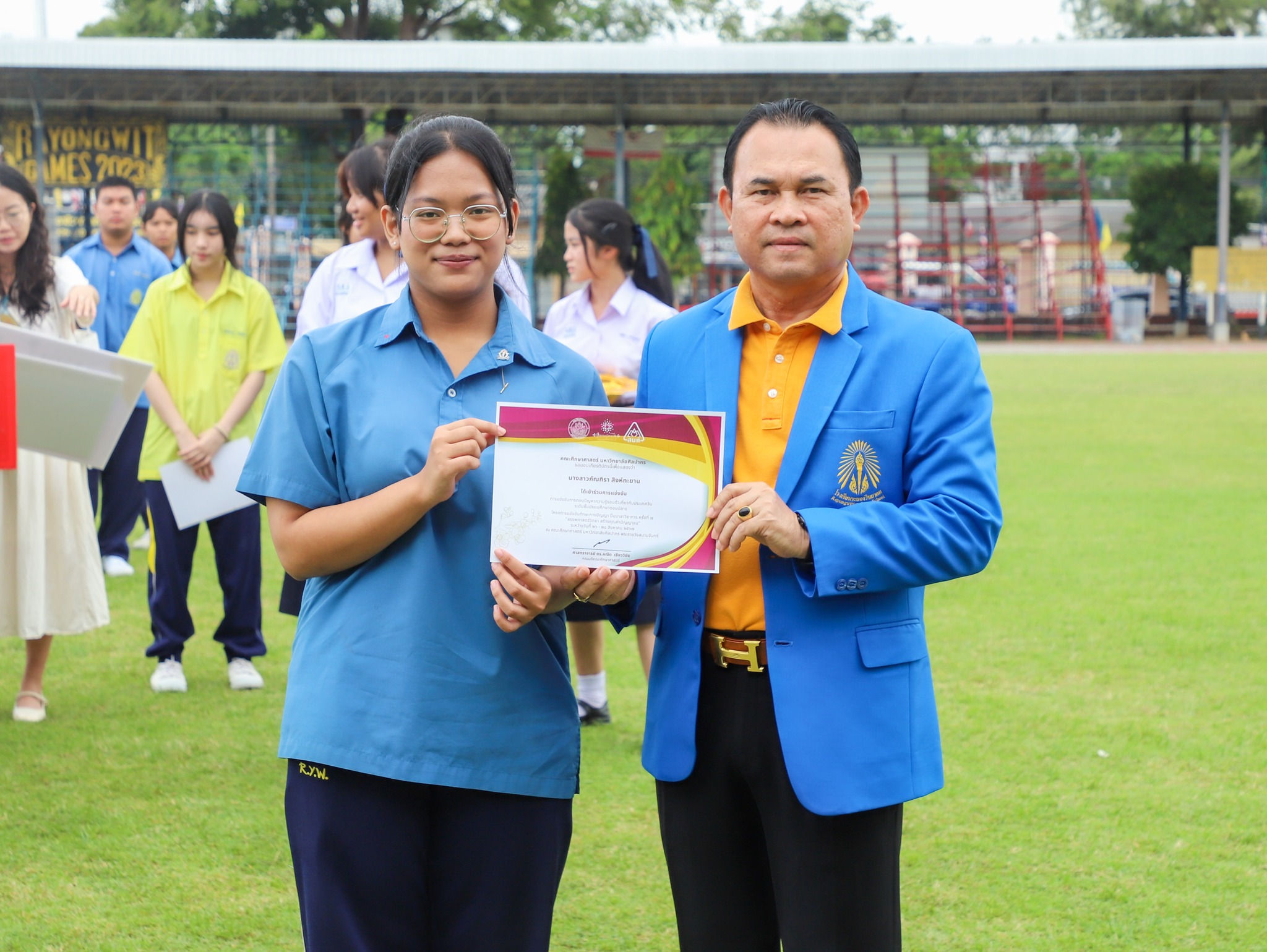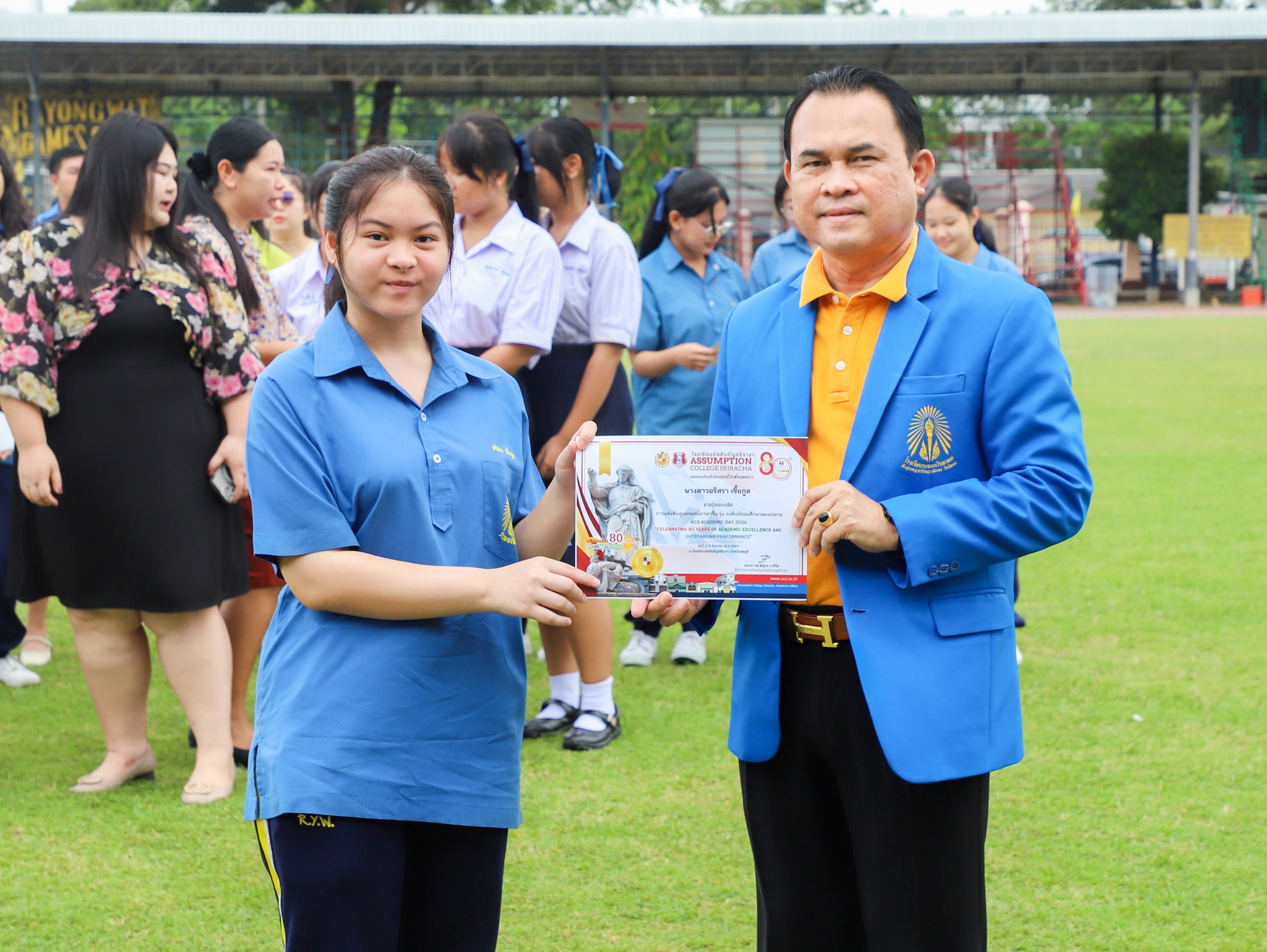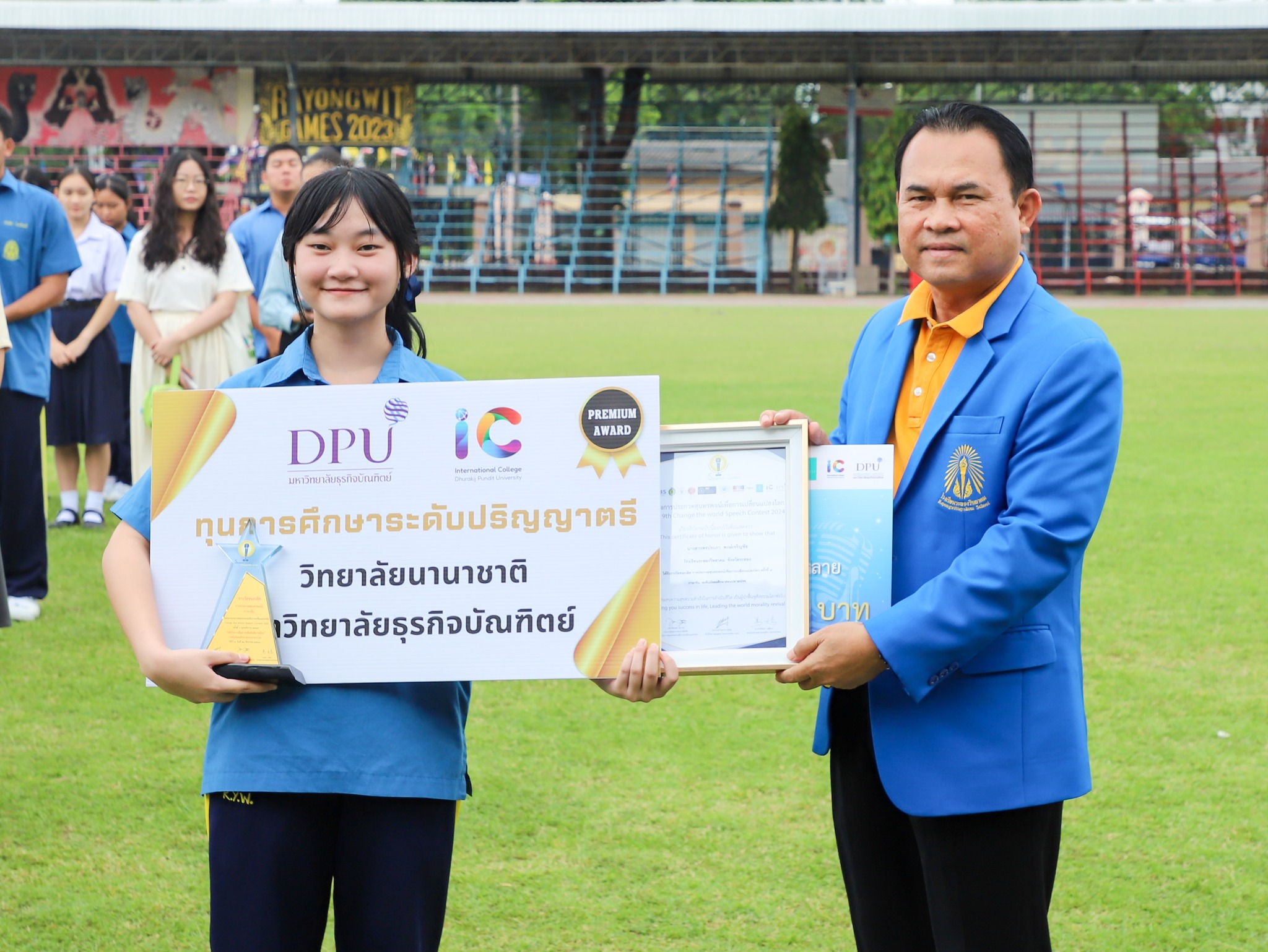คณะครู และนักเรียนโรงเรียนระยองวิทยาคม ณ สนามกีฬา โรงเรียนระยองวิทยาคม