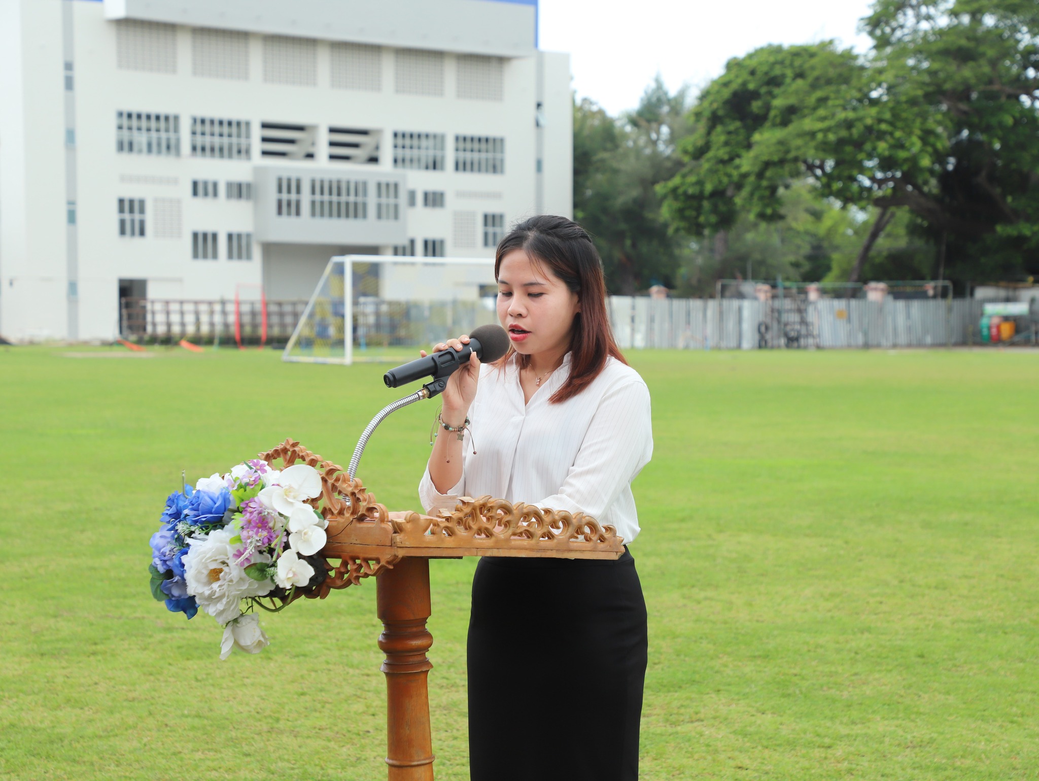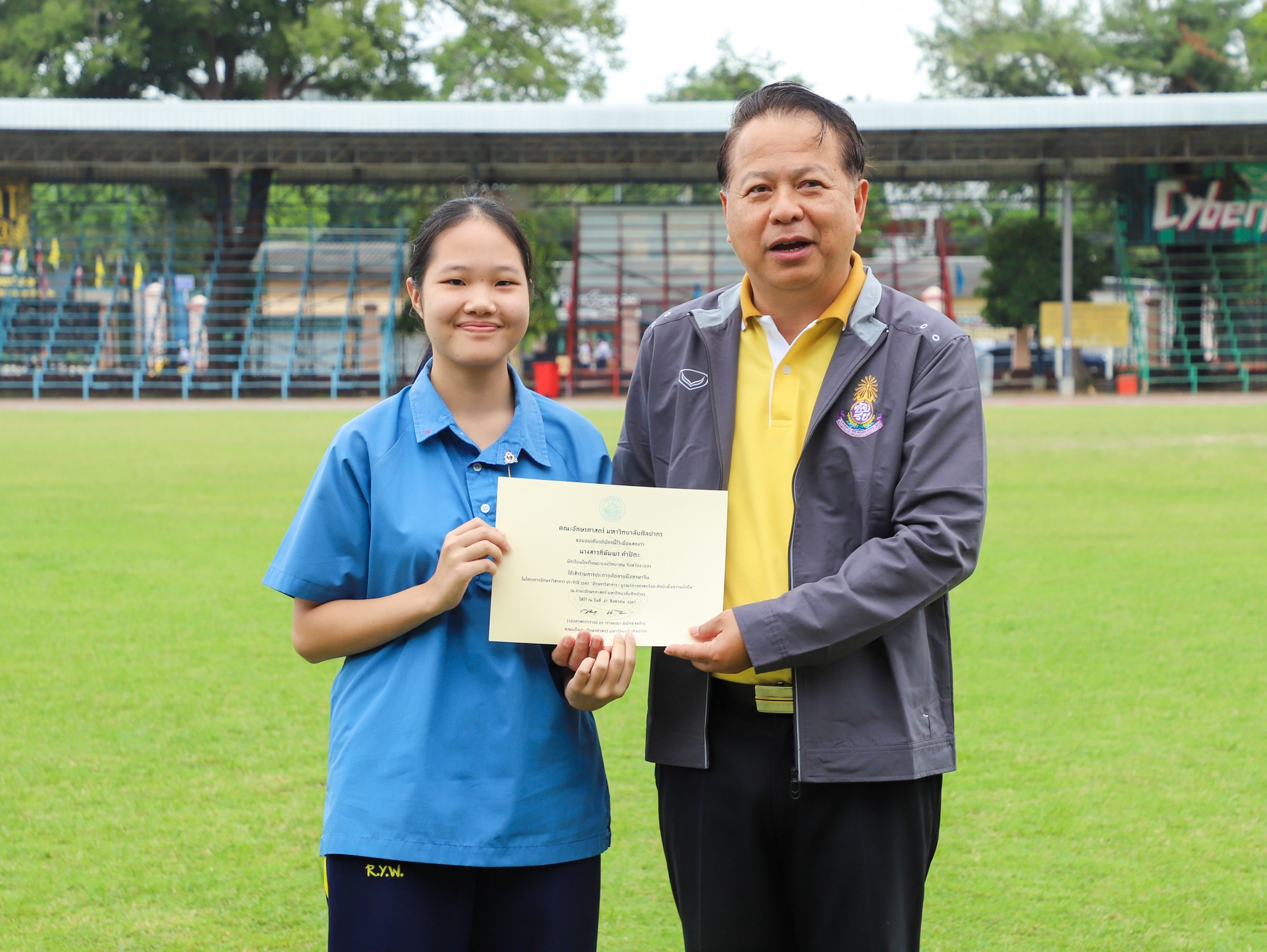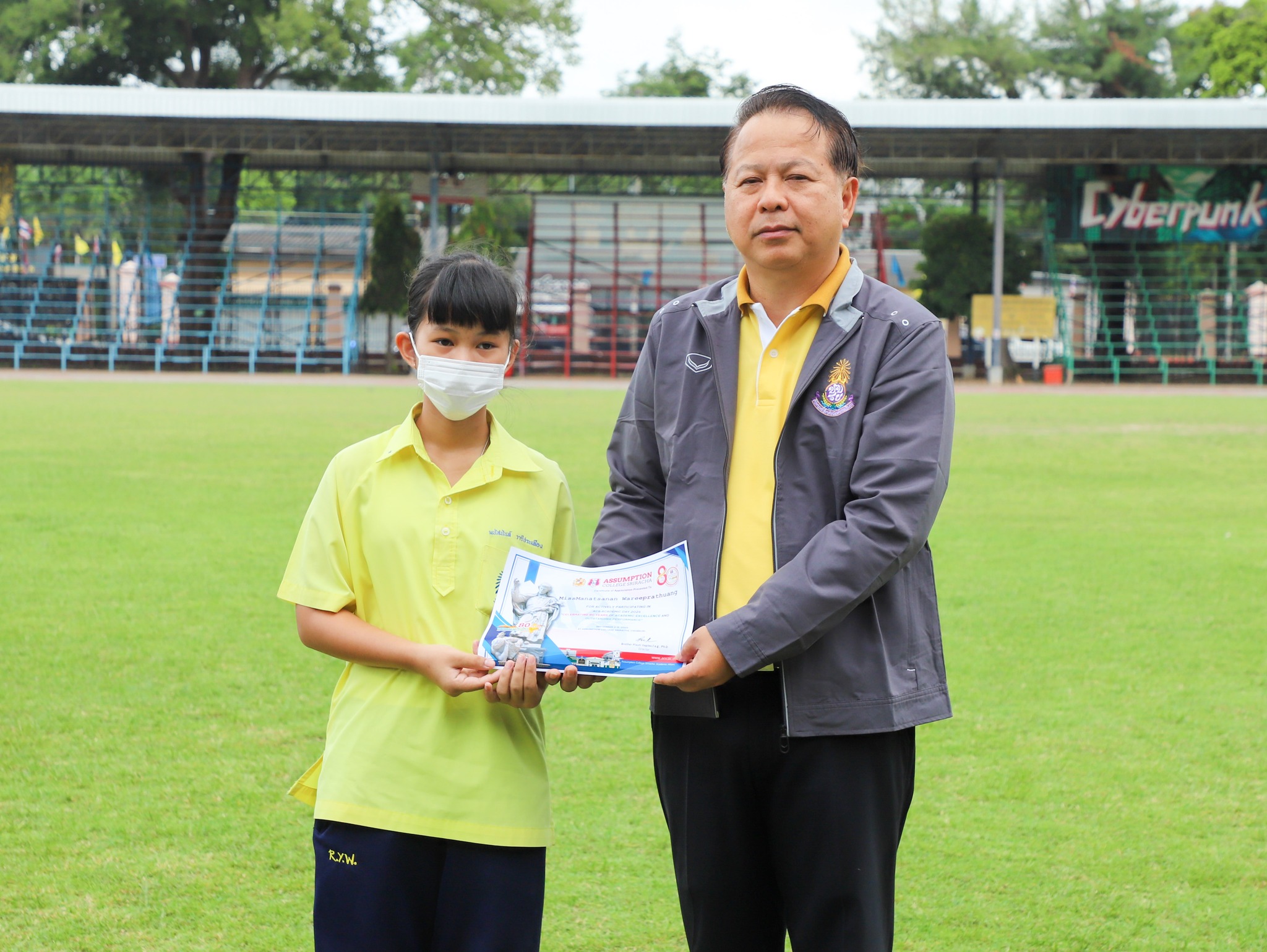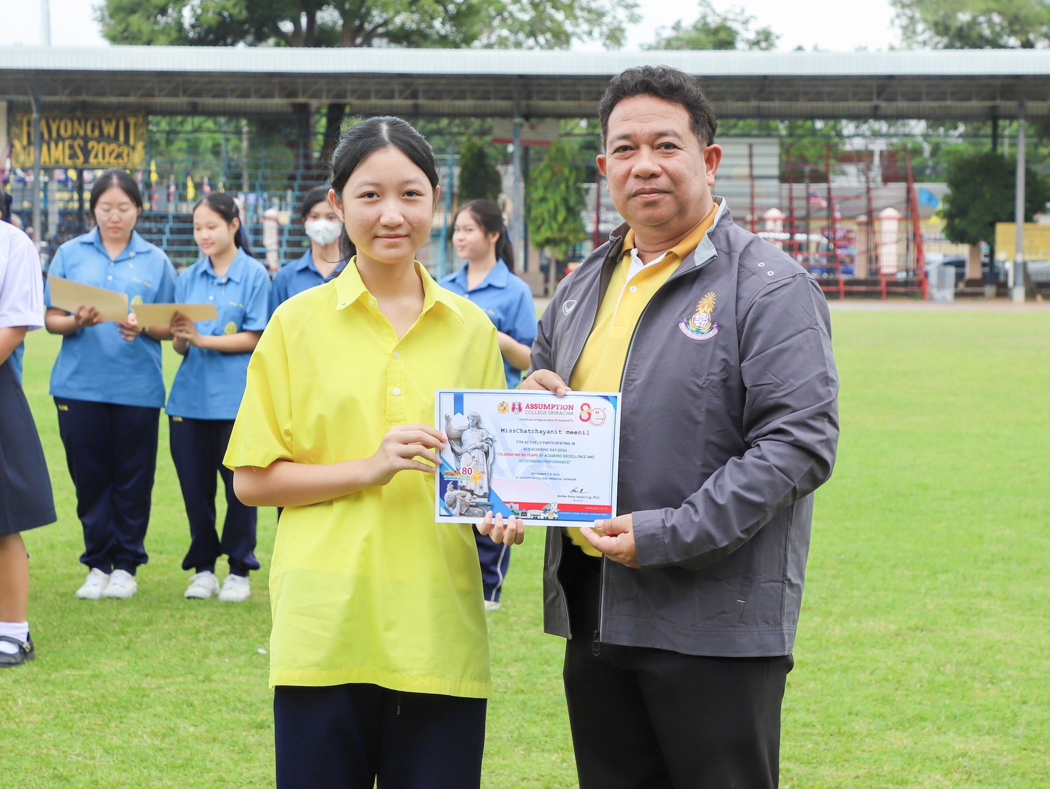 คณะครู และนักเรียนโรงเรียนระยองวิทยาคม ณ สนามกีฬา โรงเรียนระยองวิทยาคม