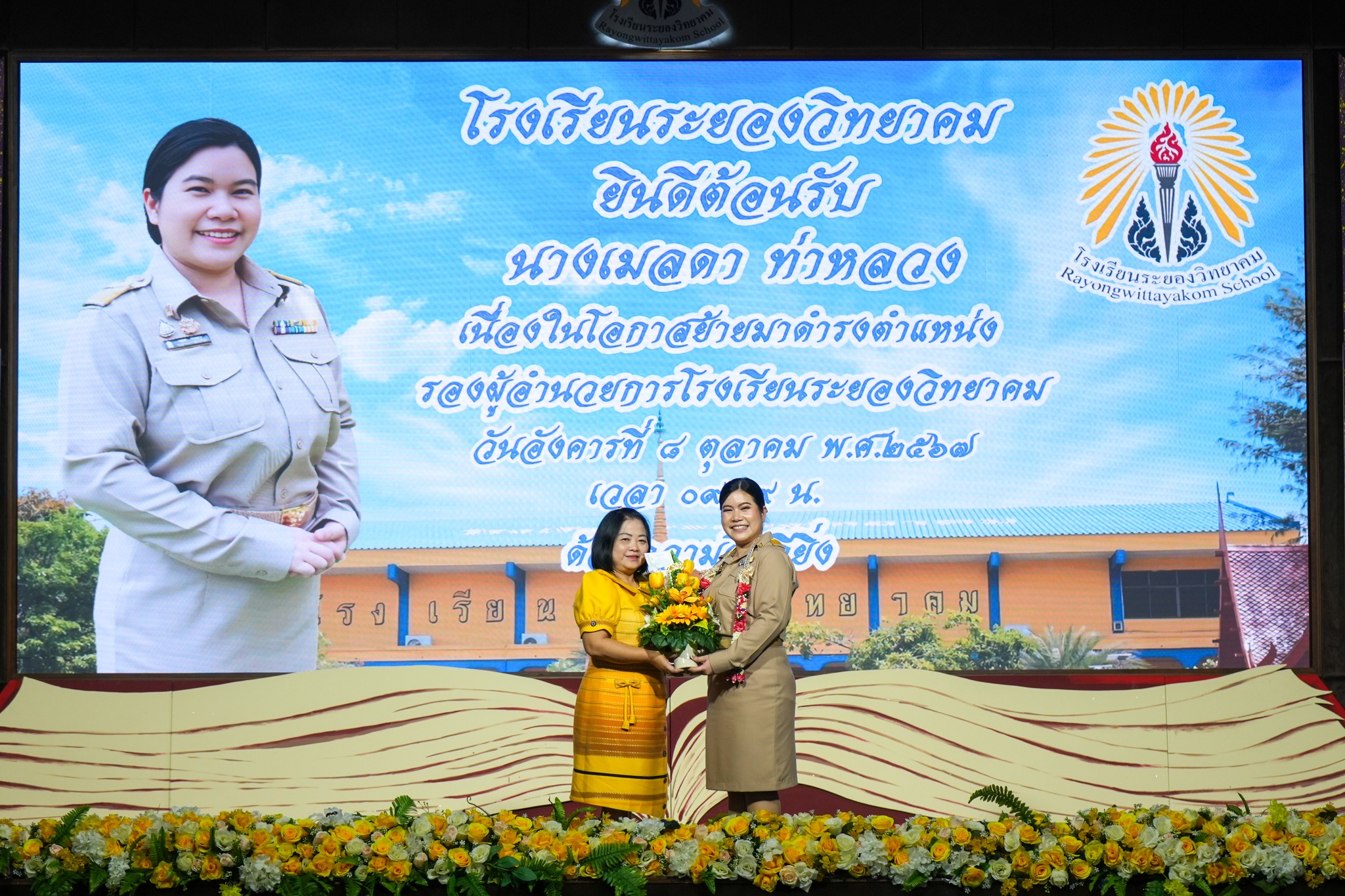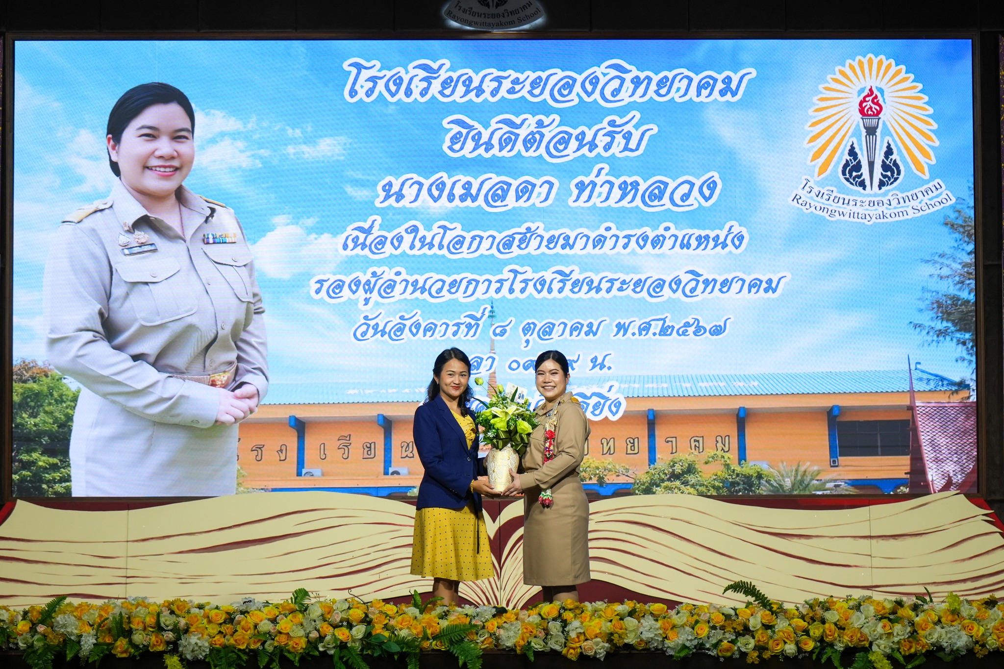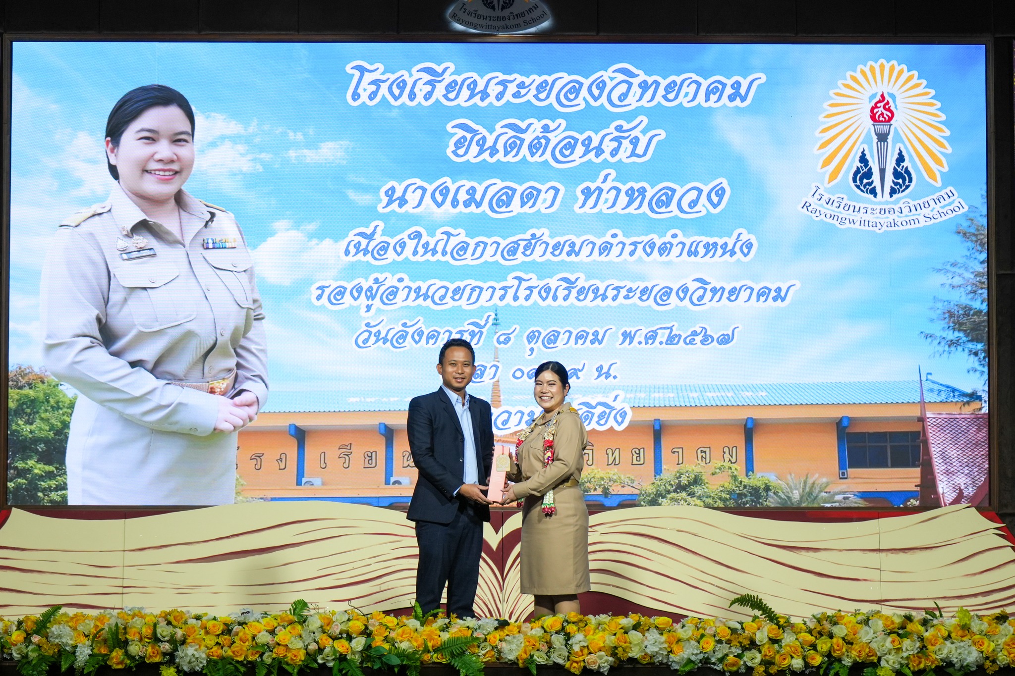 โรงเรียนระยองวิทยาคม ยินดีต้อนรับ นางเมลดา ท่าหลวง เนื่องในโอกาสย้ายมาดำรงตำแหน่ง รองผู้อำนวยการโรงเรียนระยองวิทยาคม